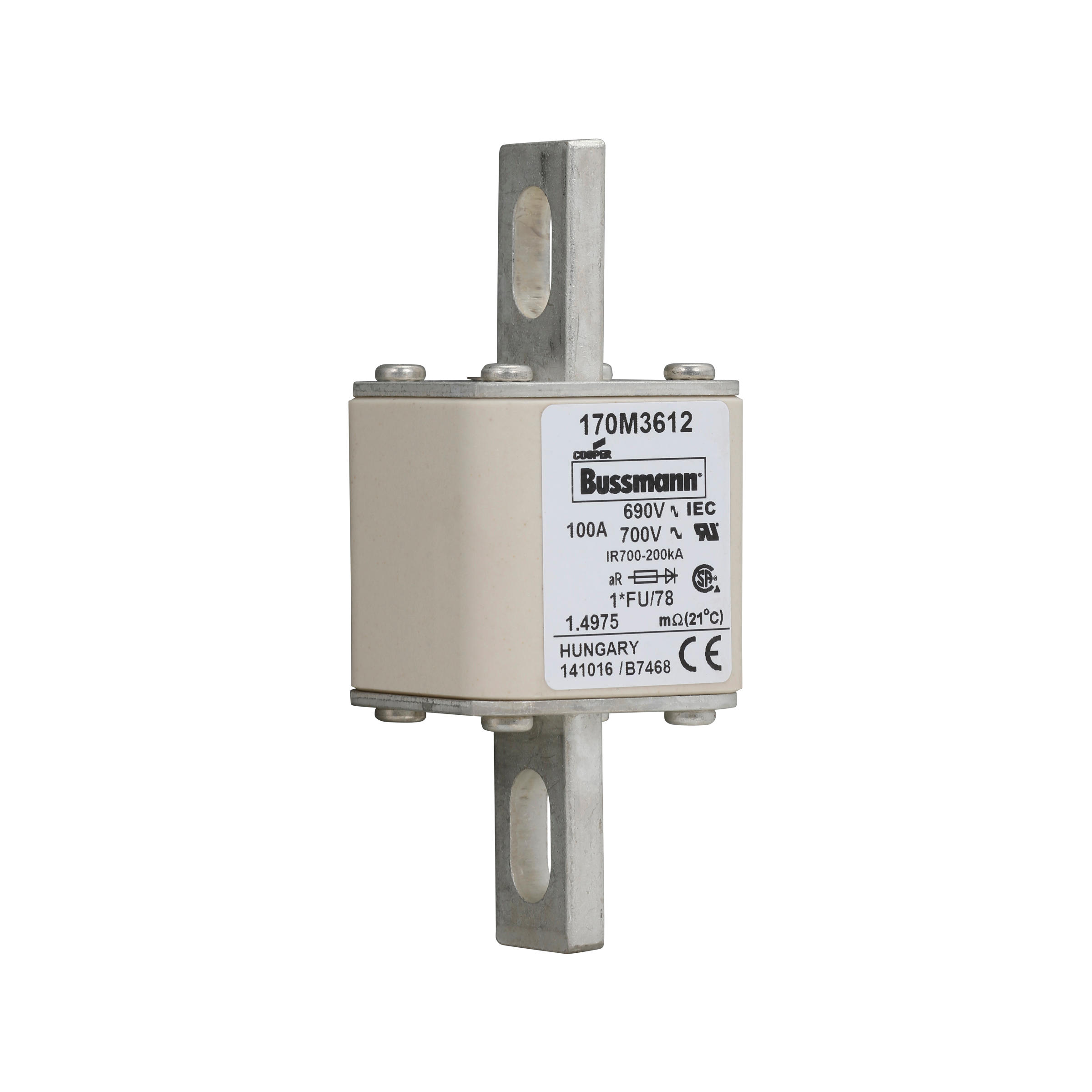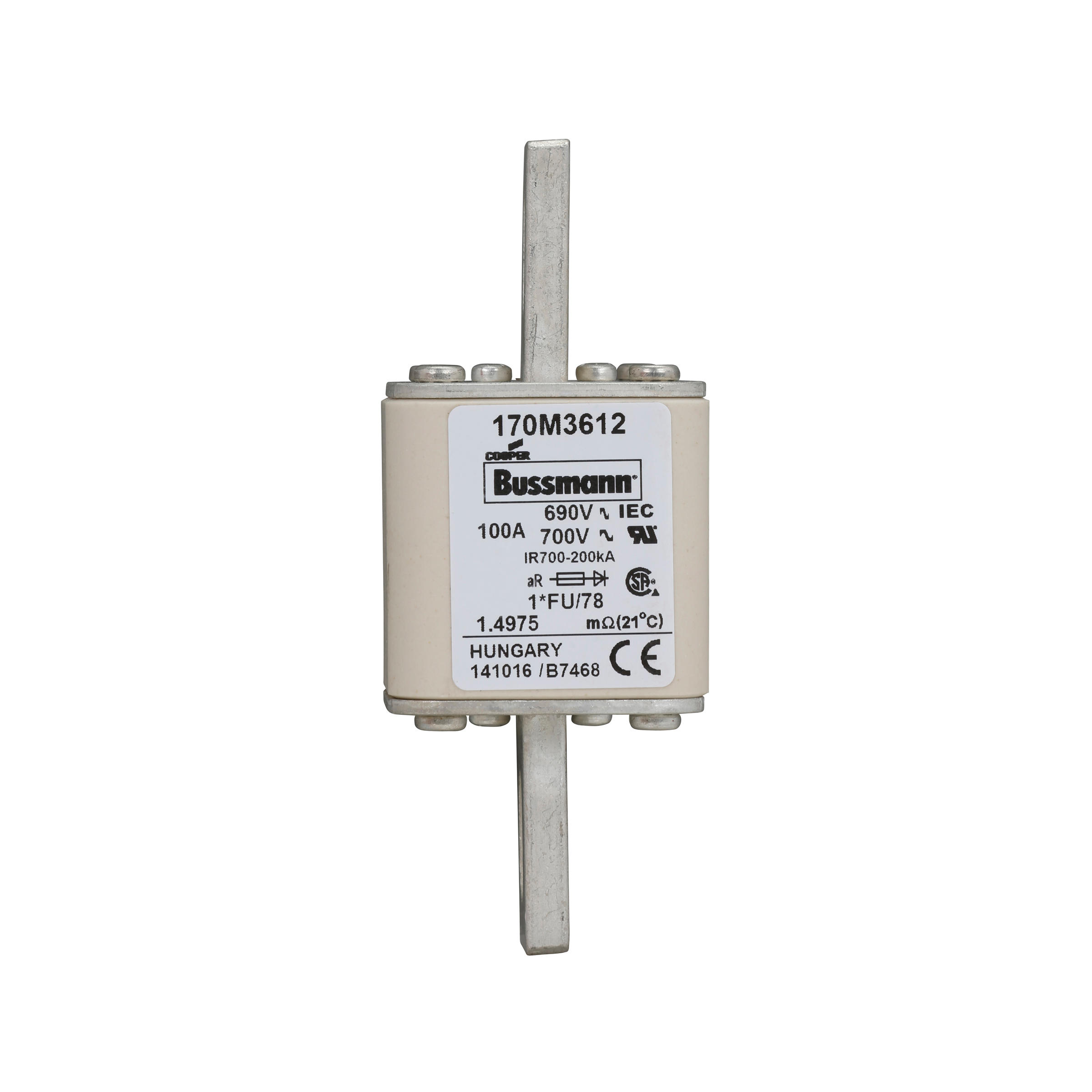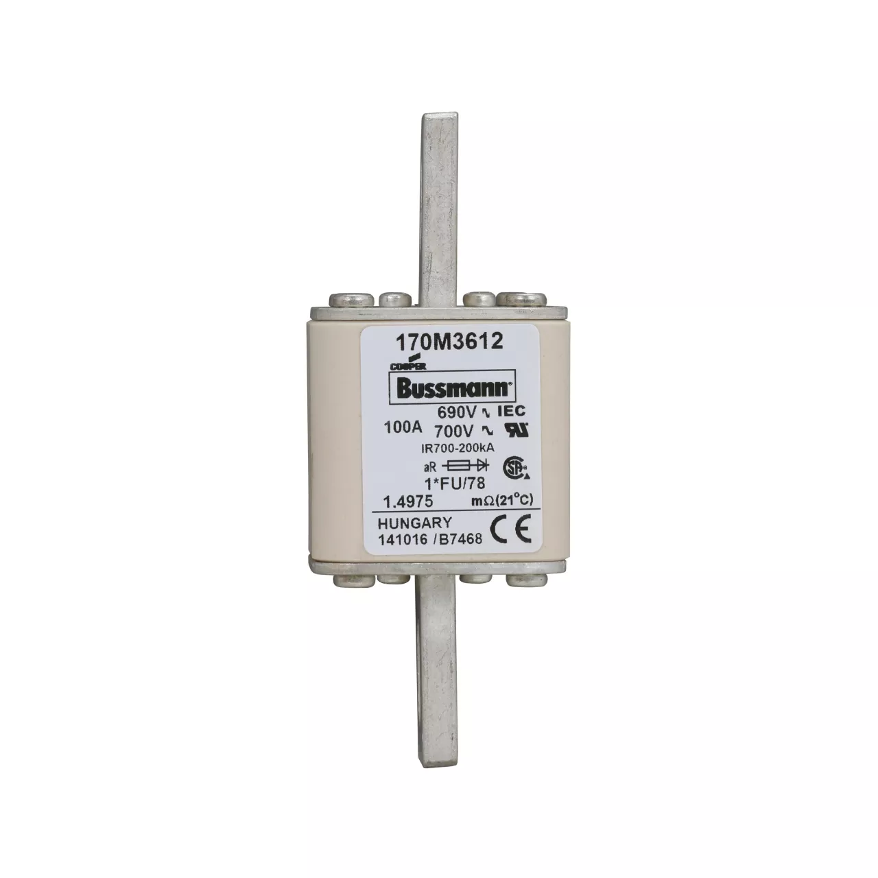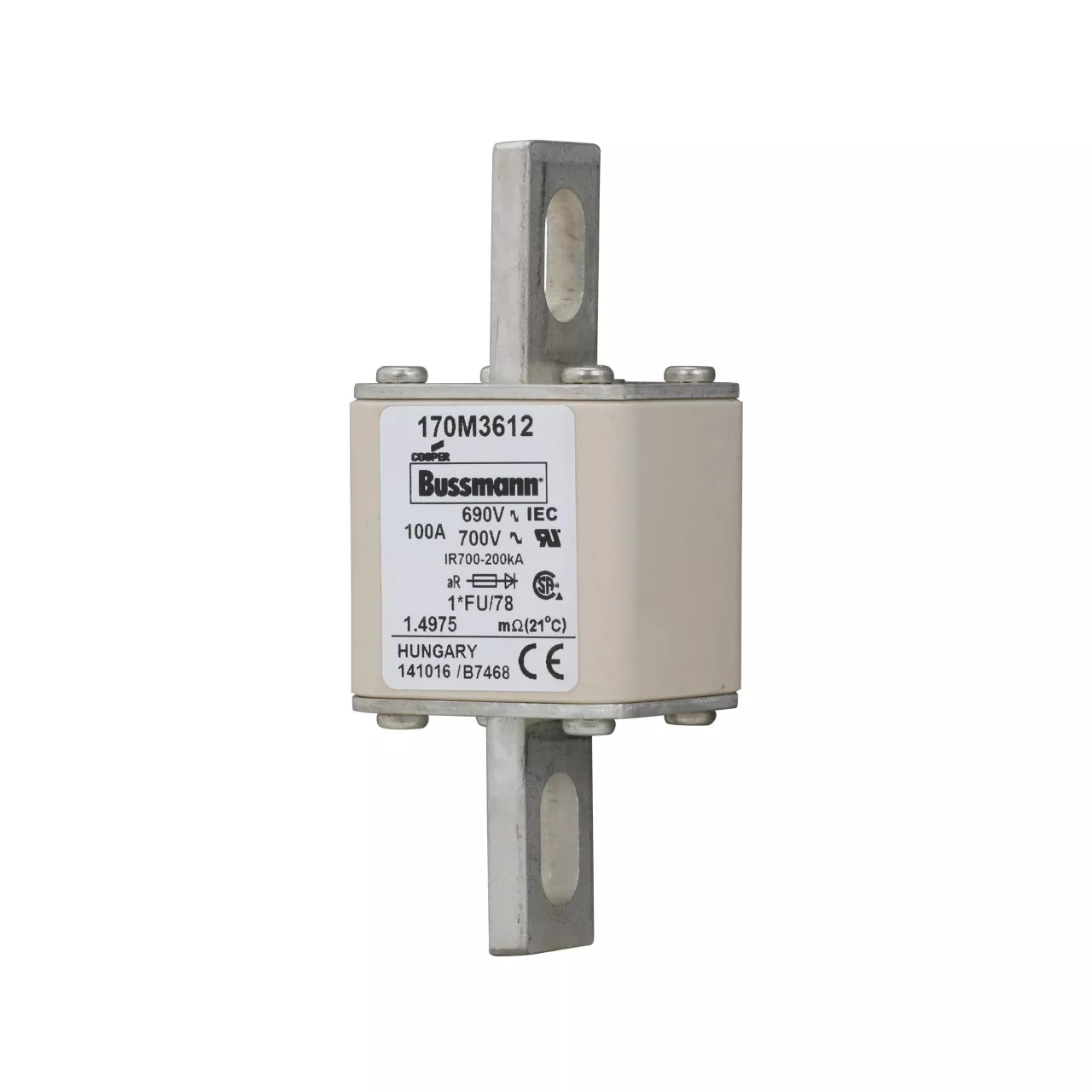 170M3612 Wkładka szybka, 100 A, AC 690 V, compact size 1, 45 x 45 x 110 mm, aR, IEC, UL