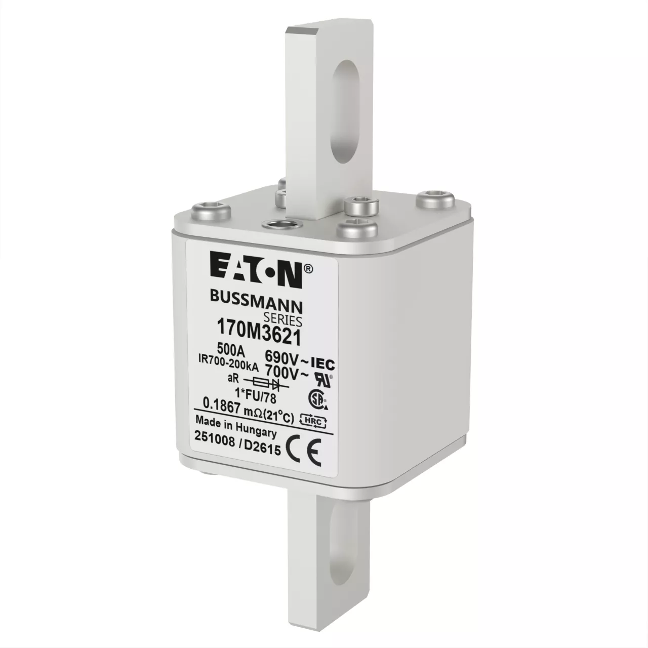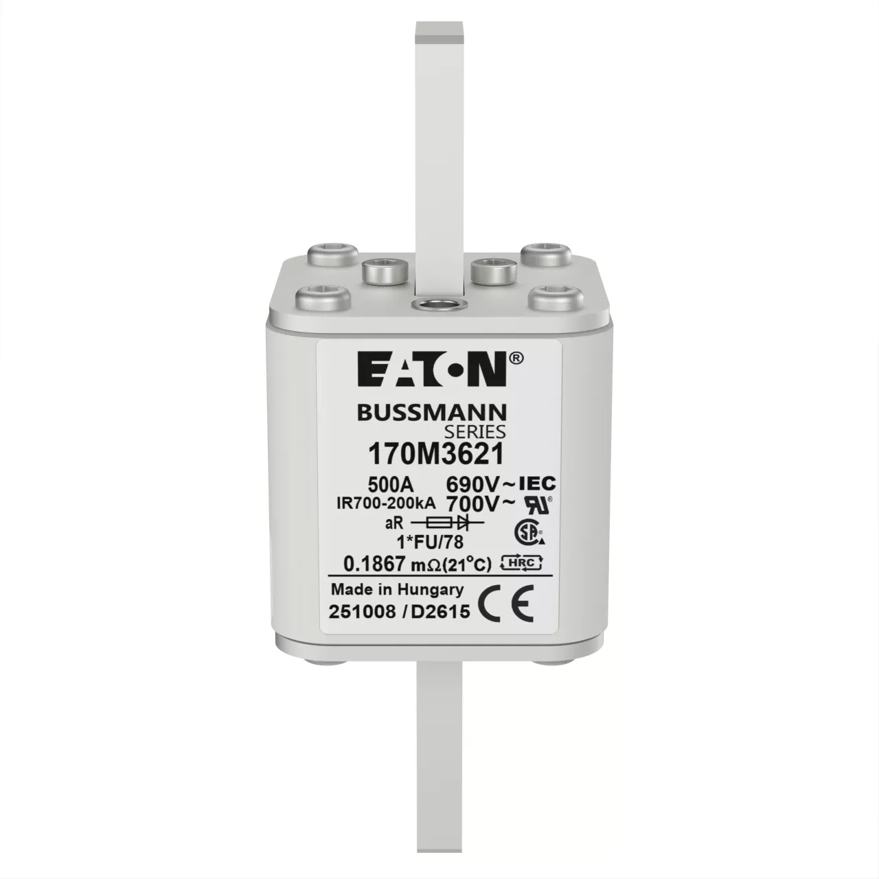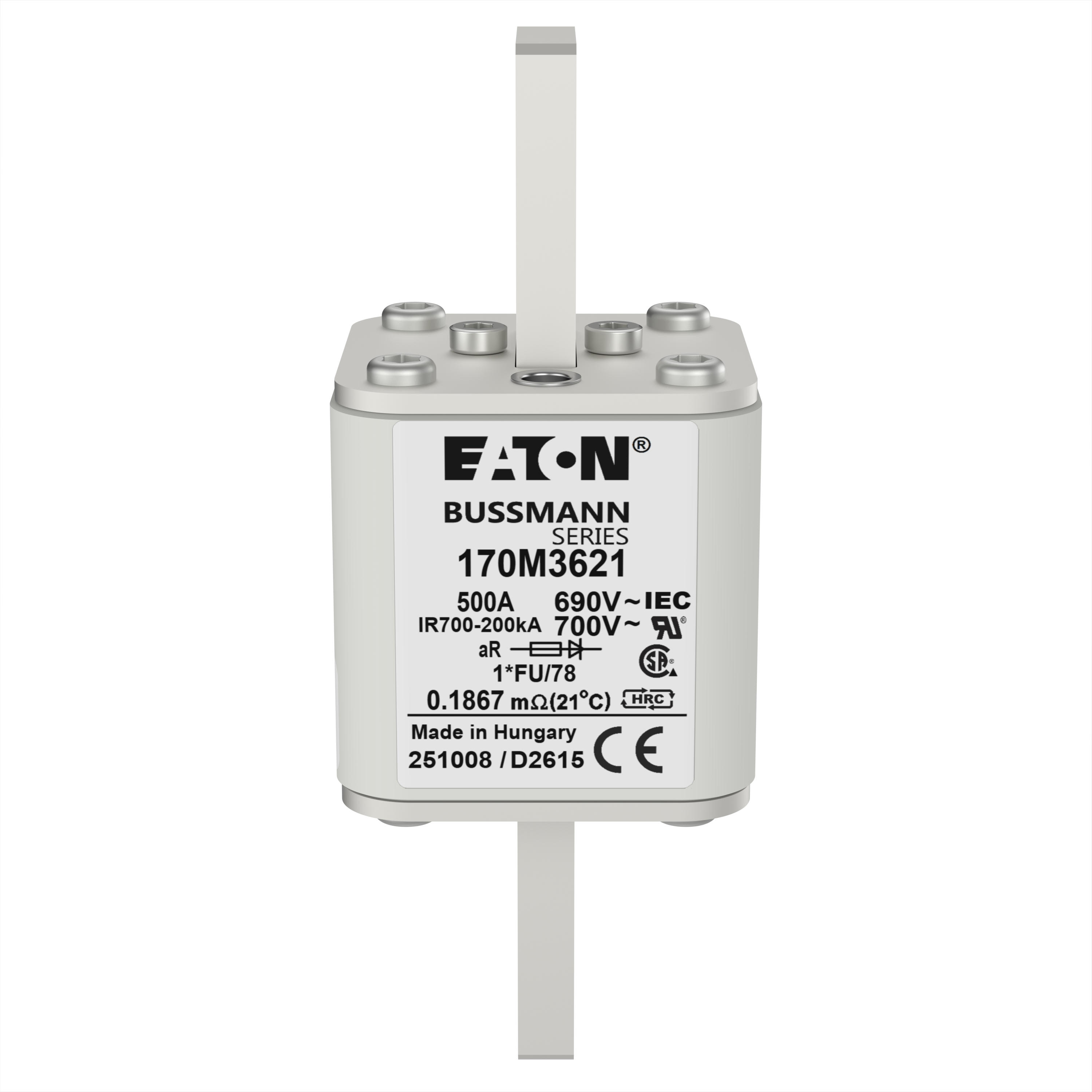 170M3621 Wkładka szybka, 500 A, AC 690 V, compact size 1, 45 x 45 x 110 mm, aR, IEC, UL