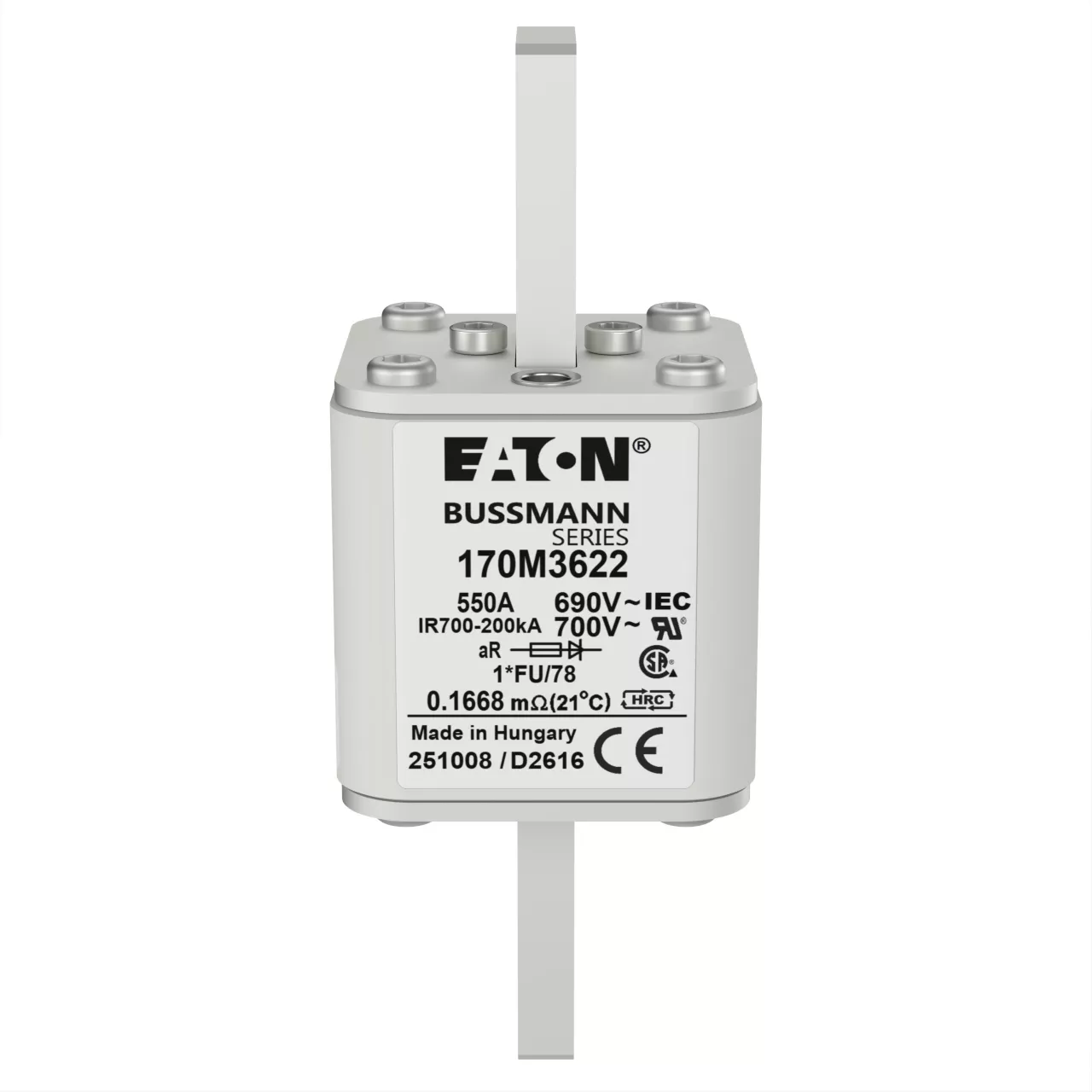 170M3622 Wkładka szybka, 550 A, AC 690 V, compact size 1, 45 x 45 x 110 mm, aR, IEC, UL