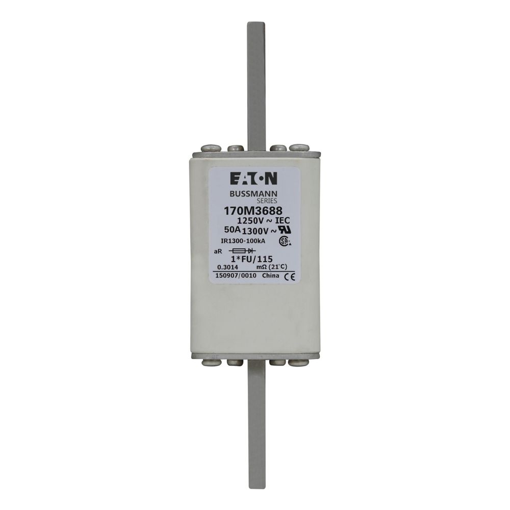 170M3688 Wkładka szybka, 50 A, AC 1250 V, compact size 1, 45 x 45 x 156 mm, aR, IEC, UL