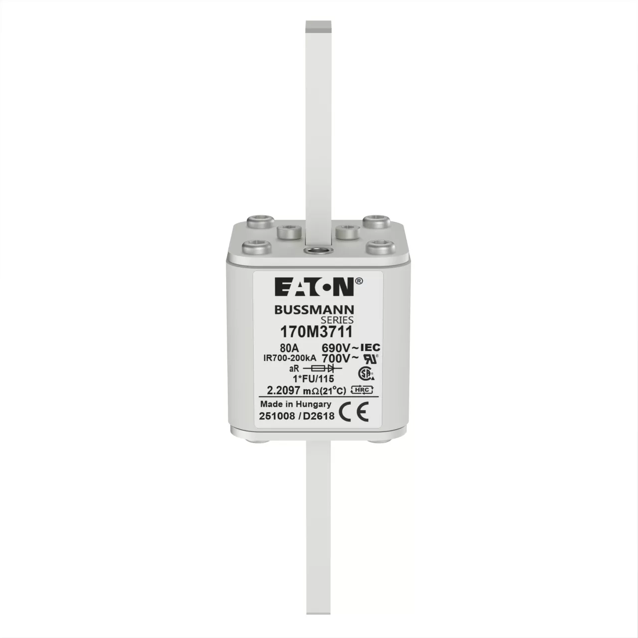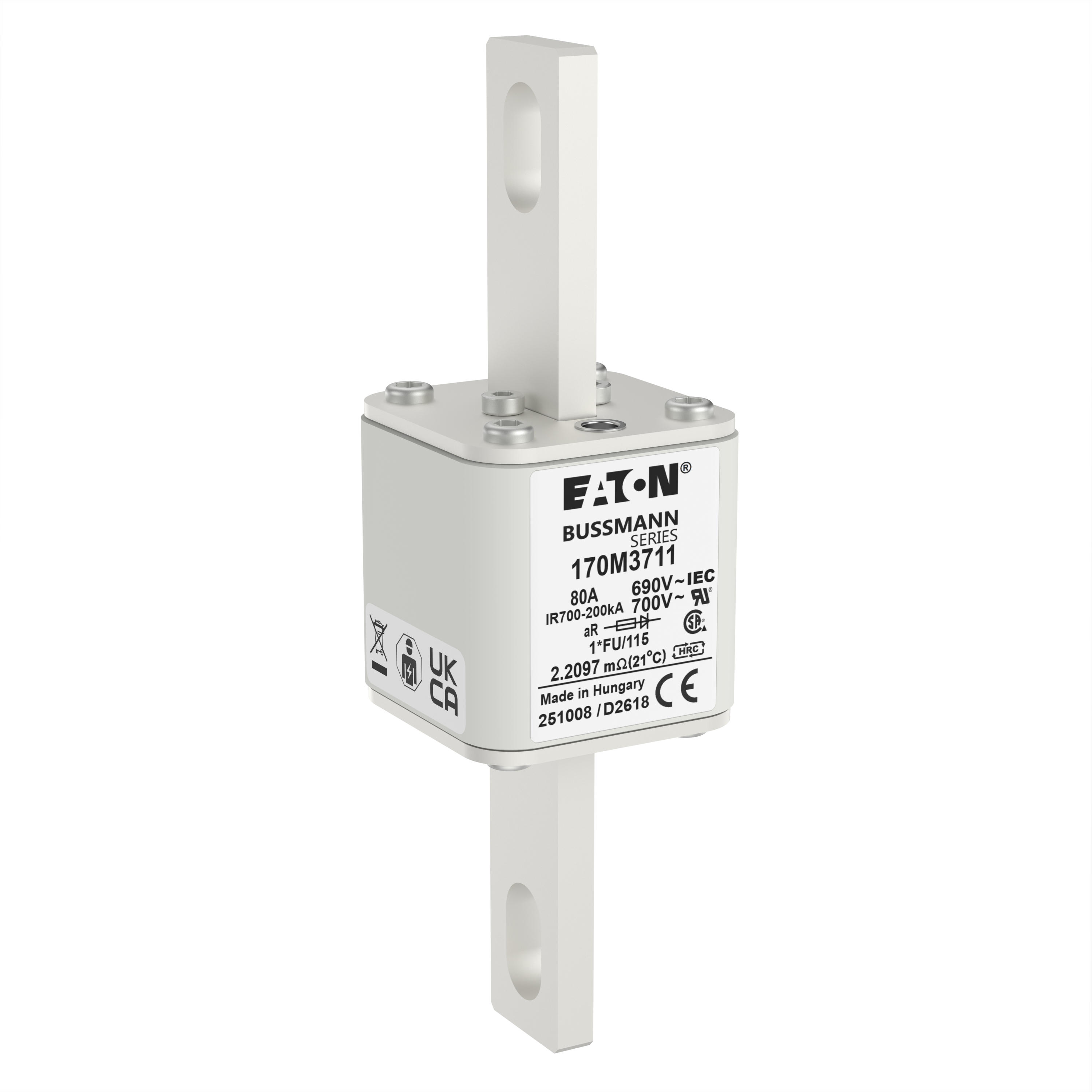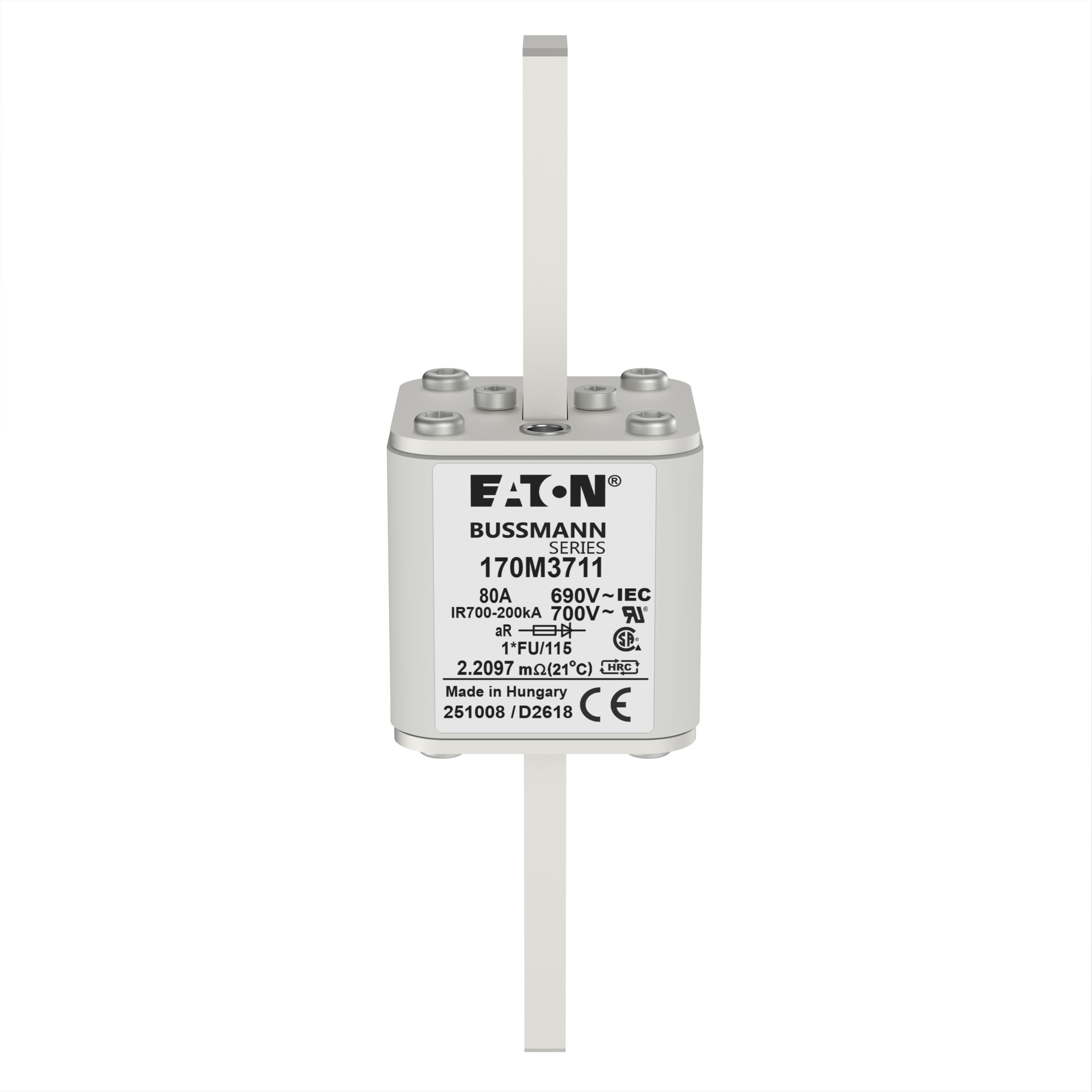 170M3711 Wkładka szybka, 80 A, AC 690 V, compact size 1, 45 x 45 x 148 mm, aR, IEC, UL