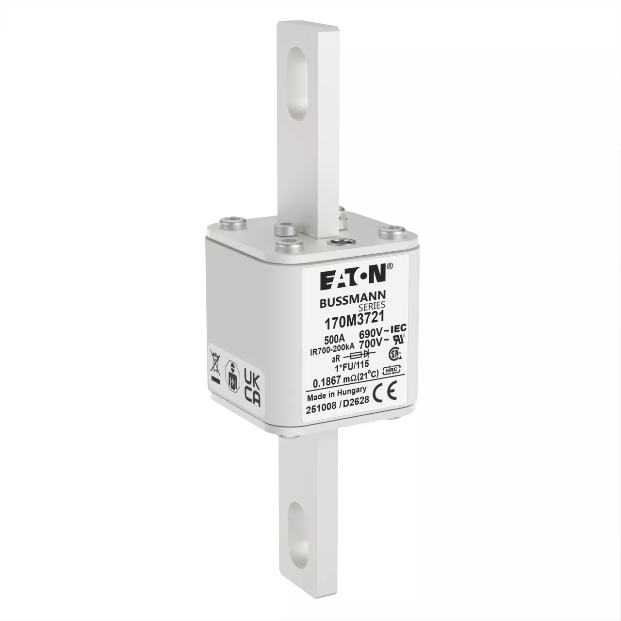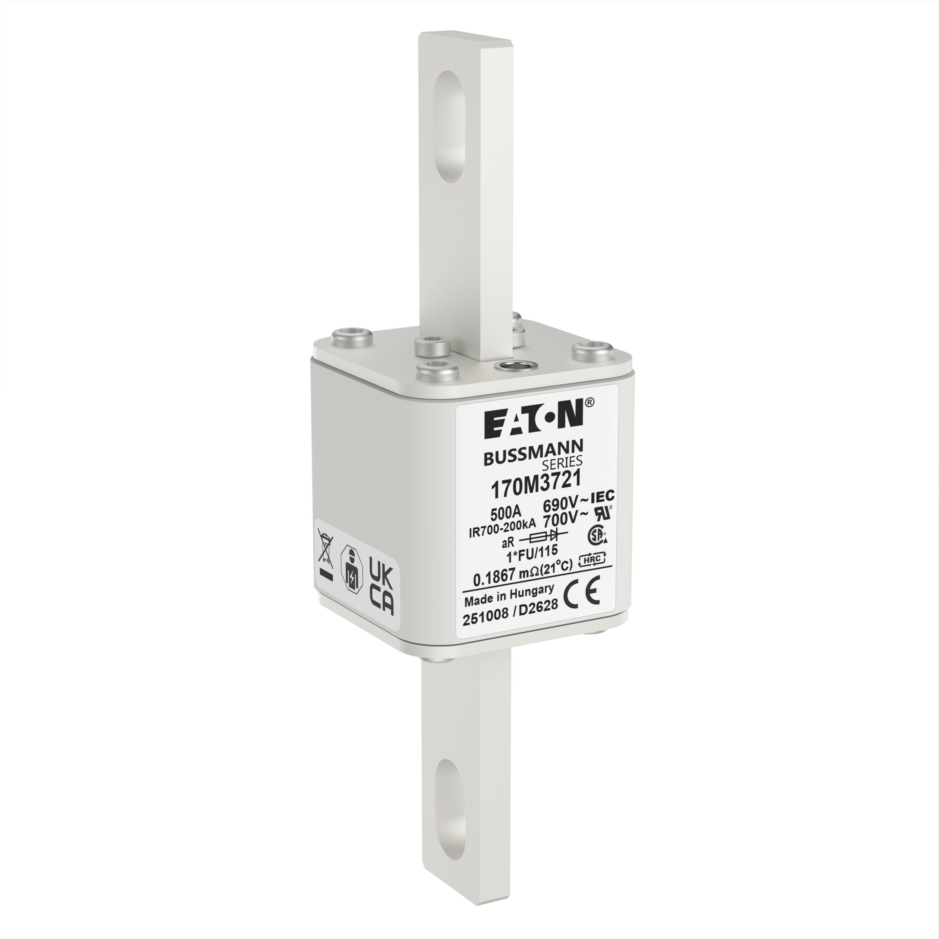 170M3721 Wkładka szybka, 500 A, AC 690 V, compact size 1, 45 x 45 x 148 mm, aR, IEC, UL