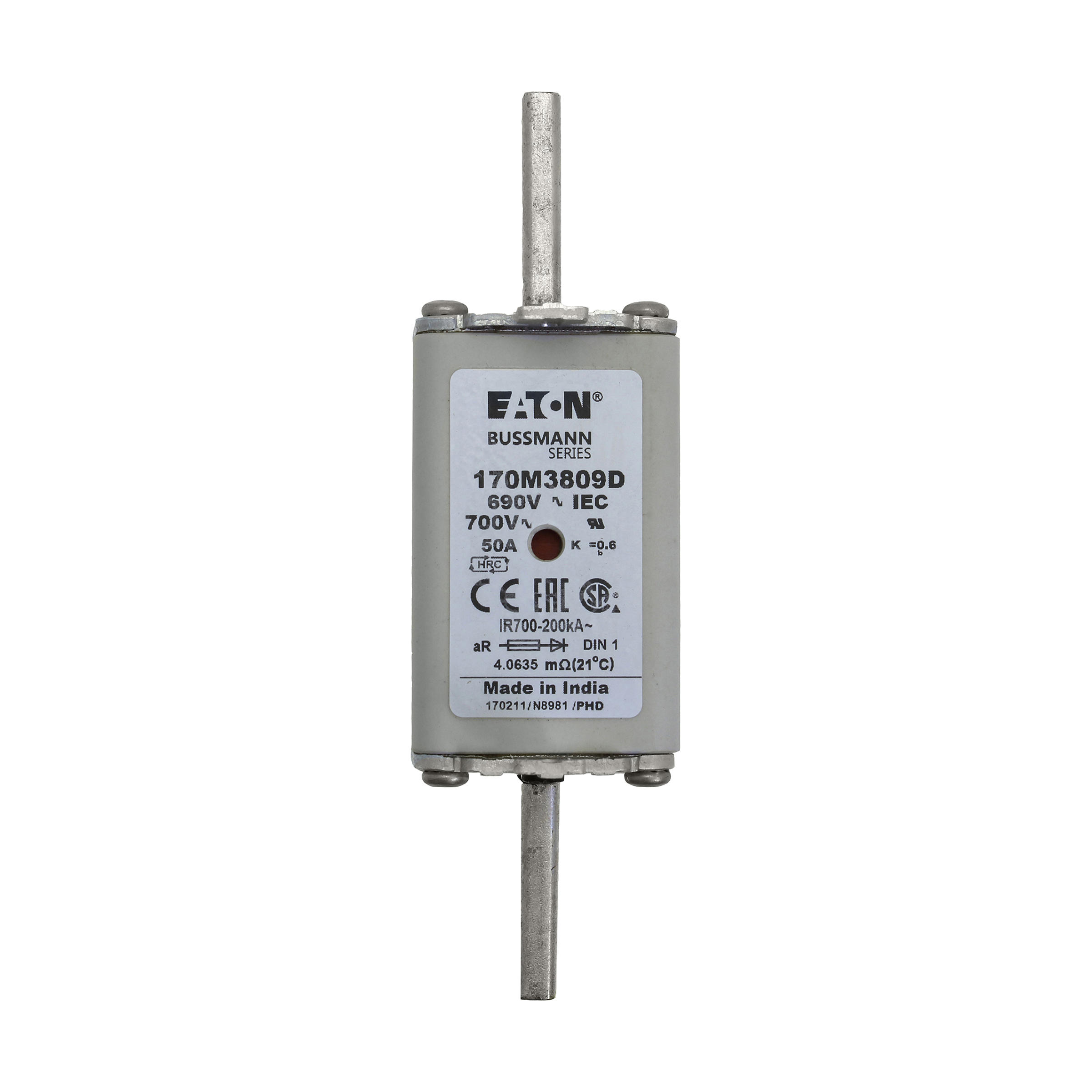 170M3809D Wkł. szybka 50A 690V aR DIN 1 podwójny wskaźnik