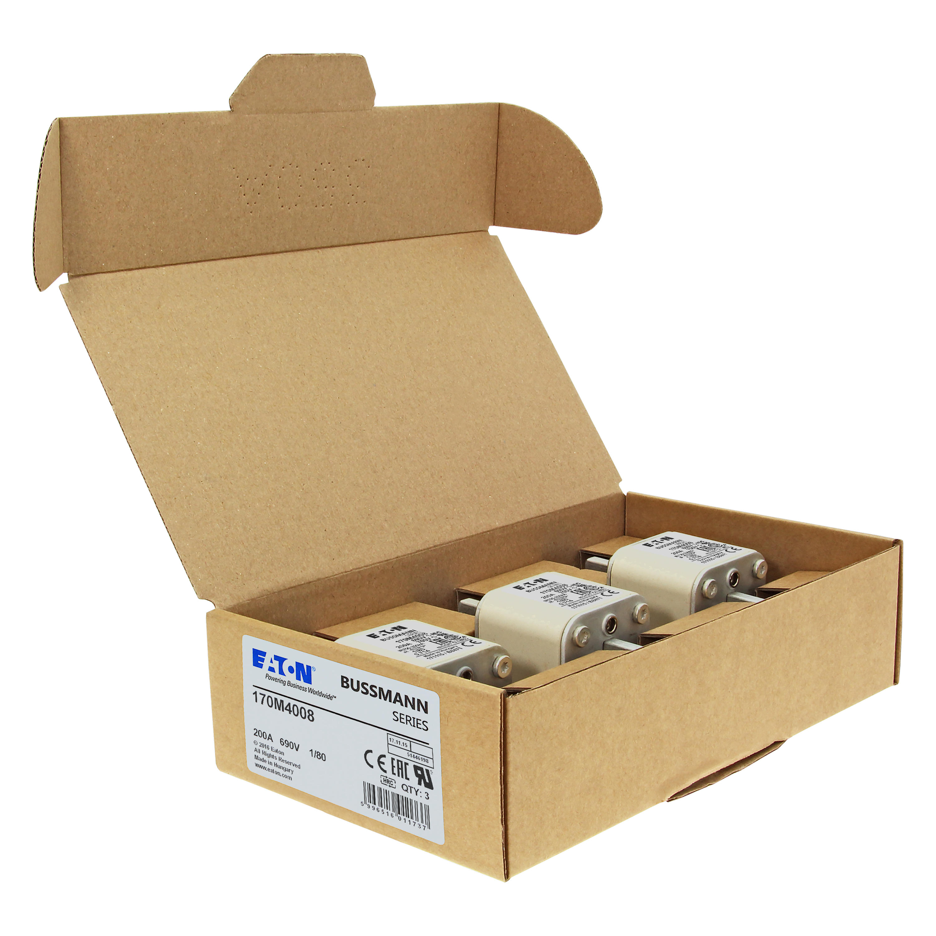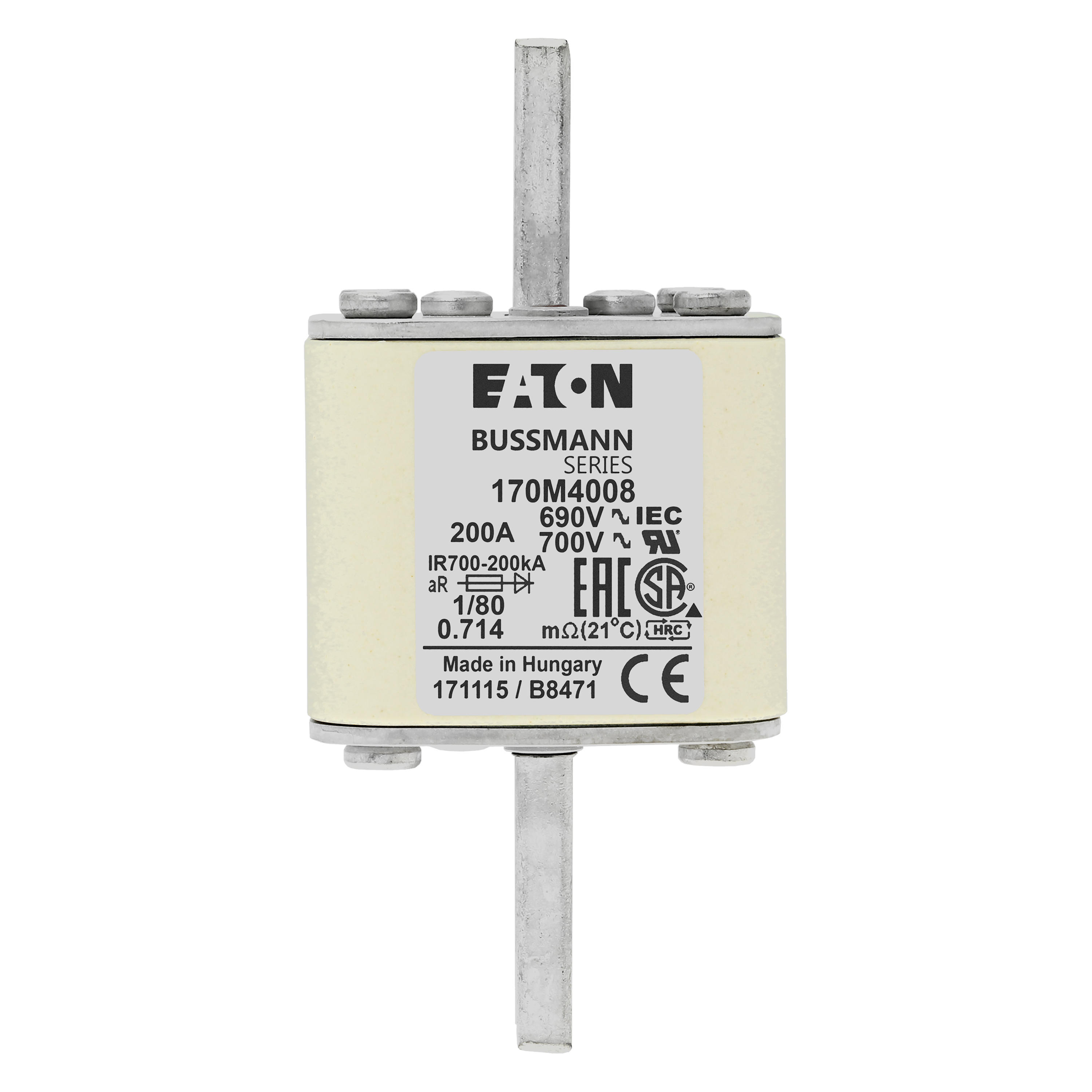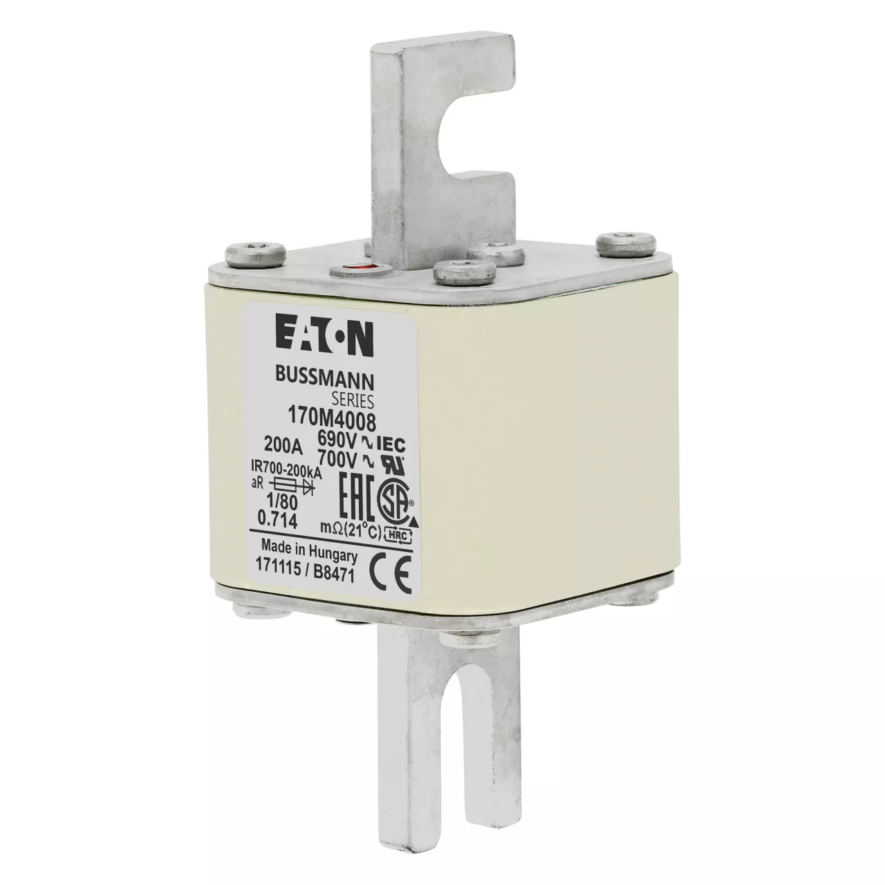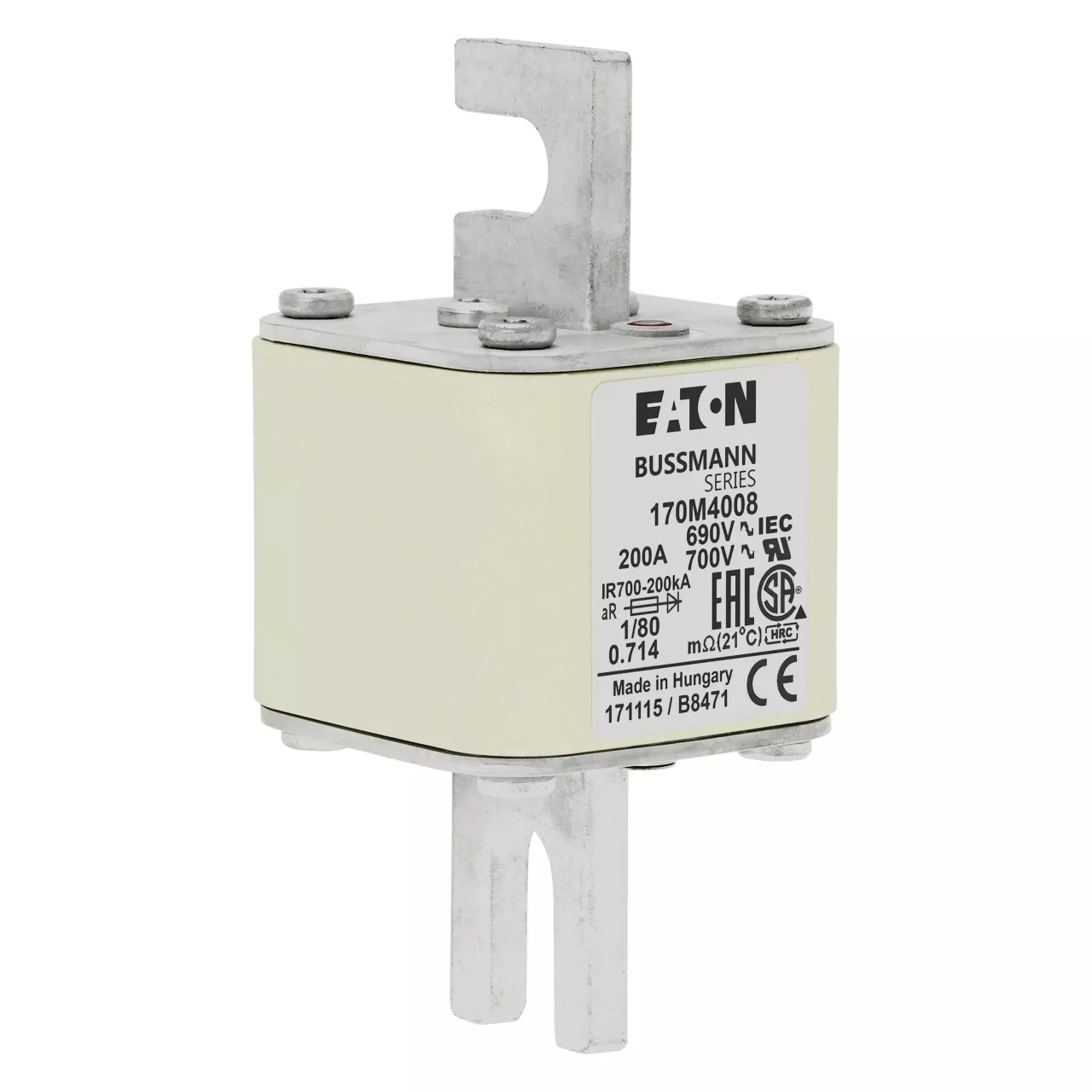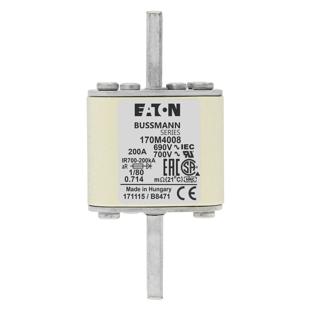170M4008 Wkładka szybka, 200 A, AC 690 V, DIN 1, 53 x 53 x 108 mm, aR, DIN, IEC