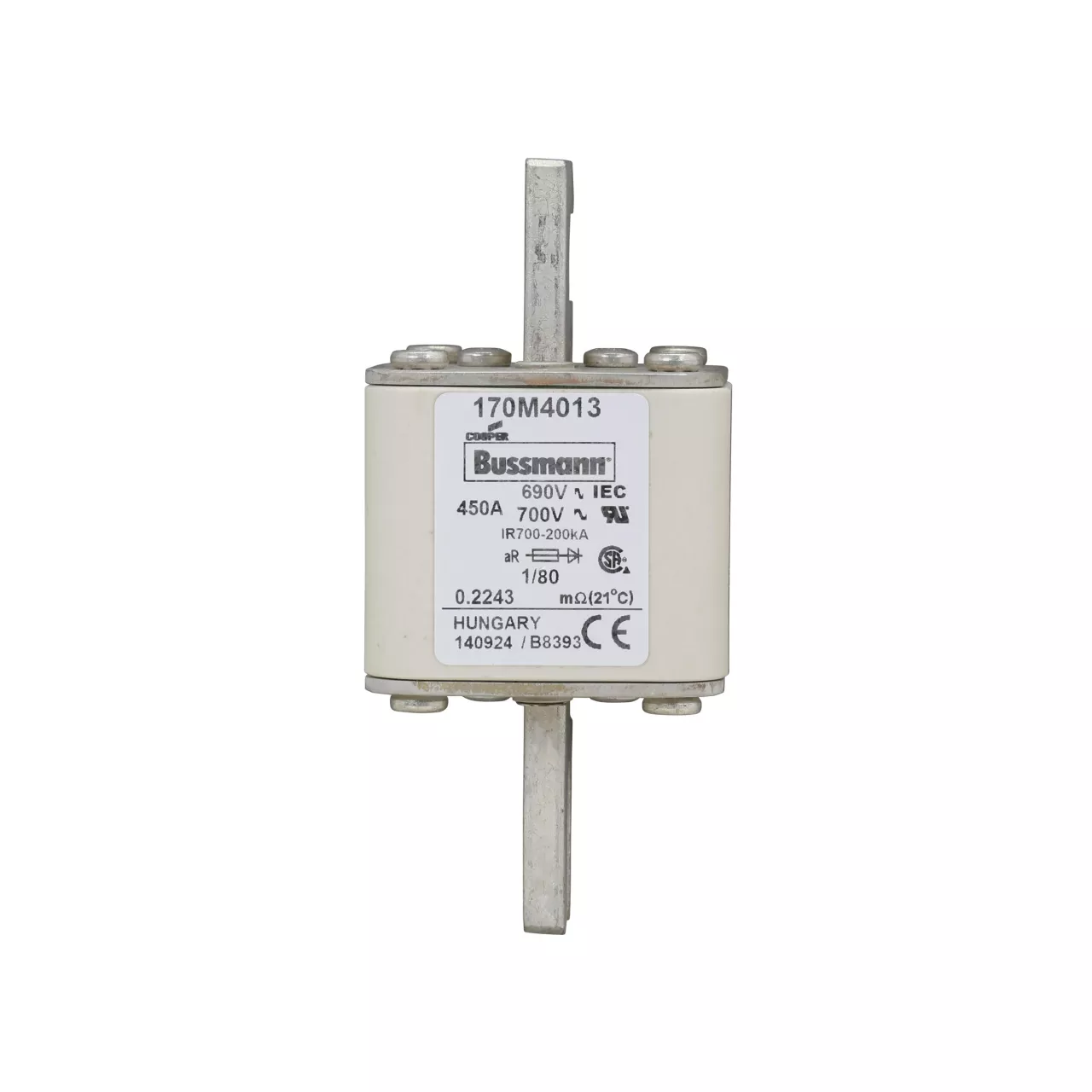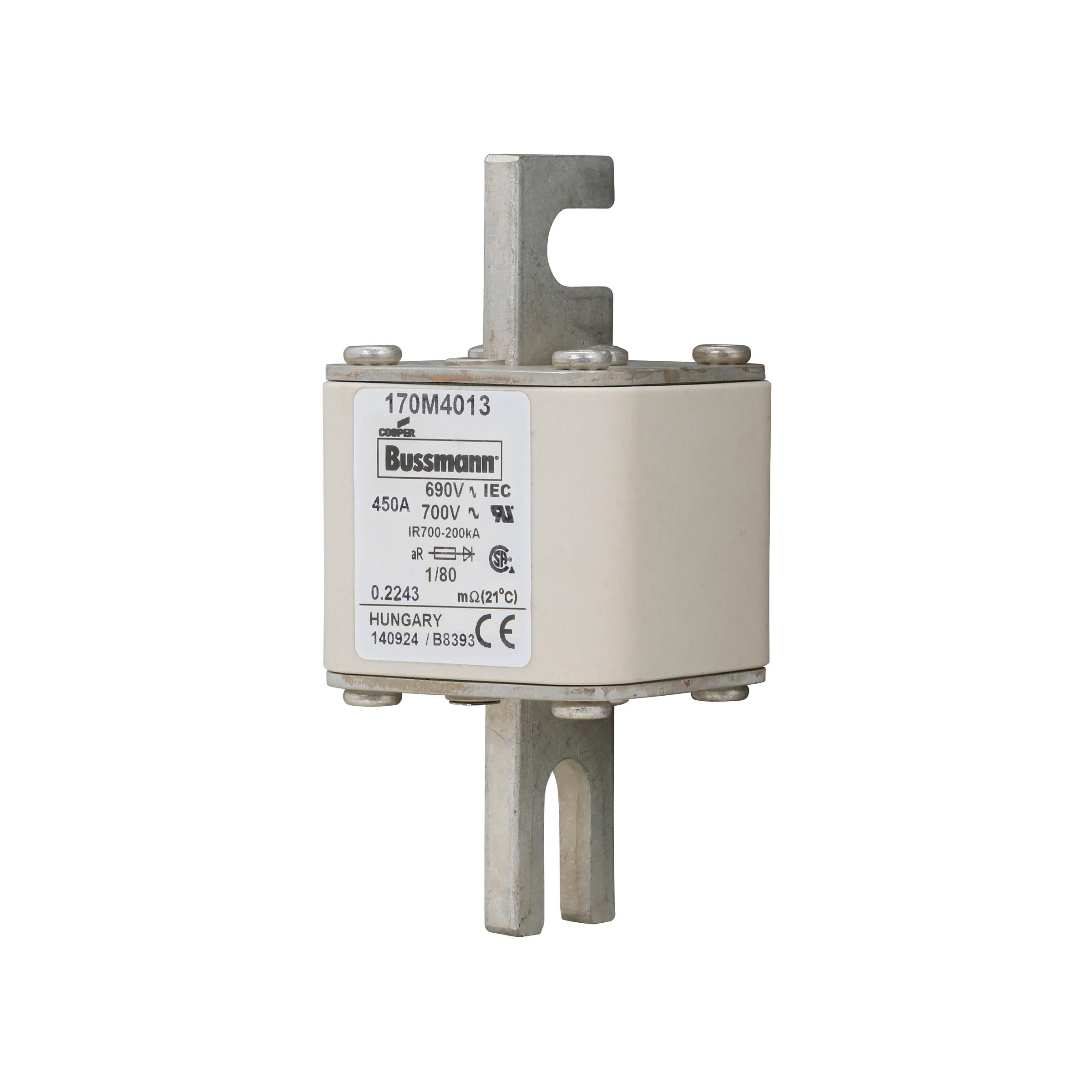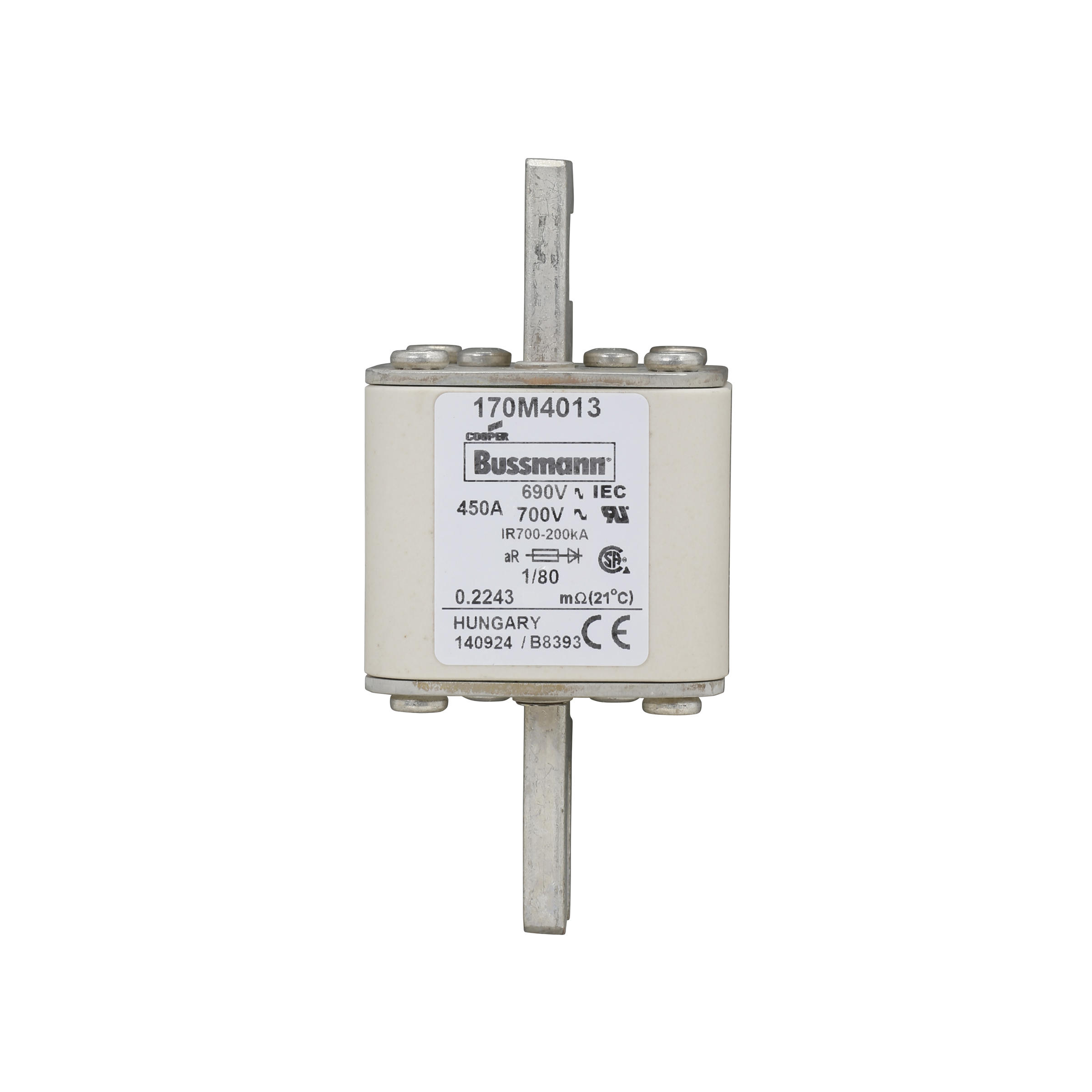 170M4013 Wkładka szybka, 450 A, AC 690 V, DIN 1, 53 x 53 x 108 mm, aR, DIN, IEC