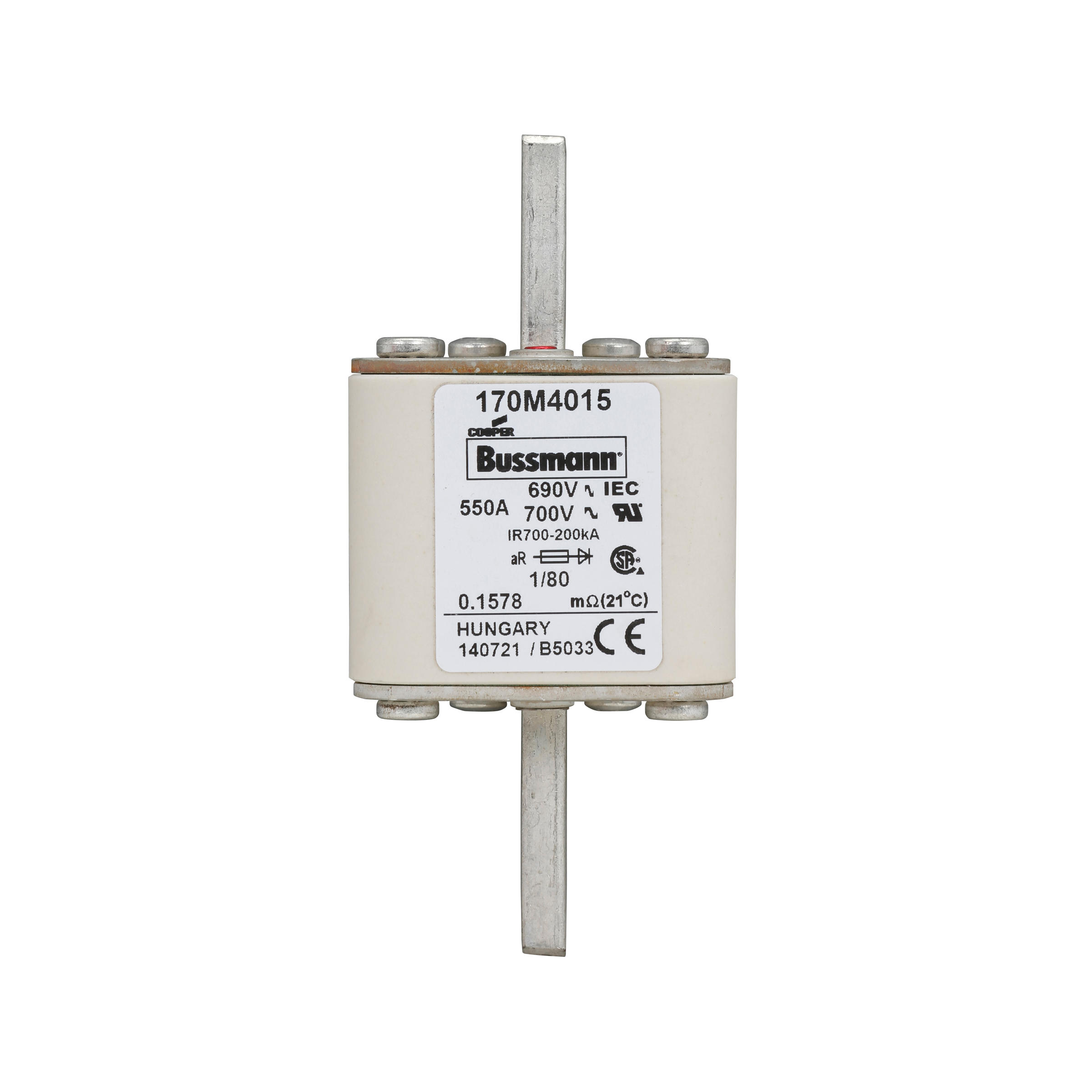170M4015 Wkładka szybka, 550 A, AC 690 V, DIN 1, 53 x 53 x 108 mm, aR, DIN, IEC