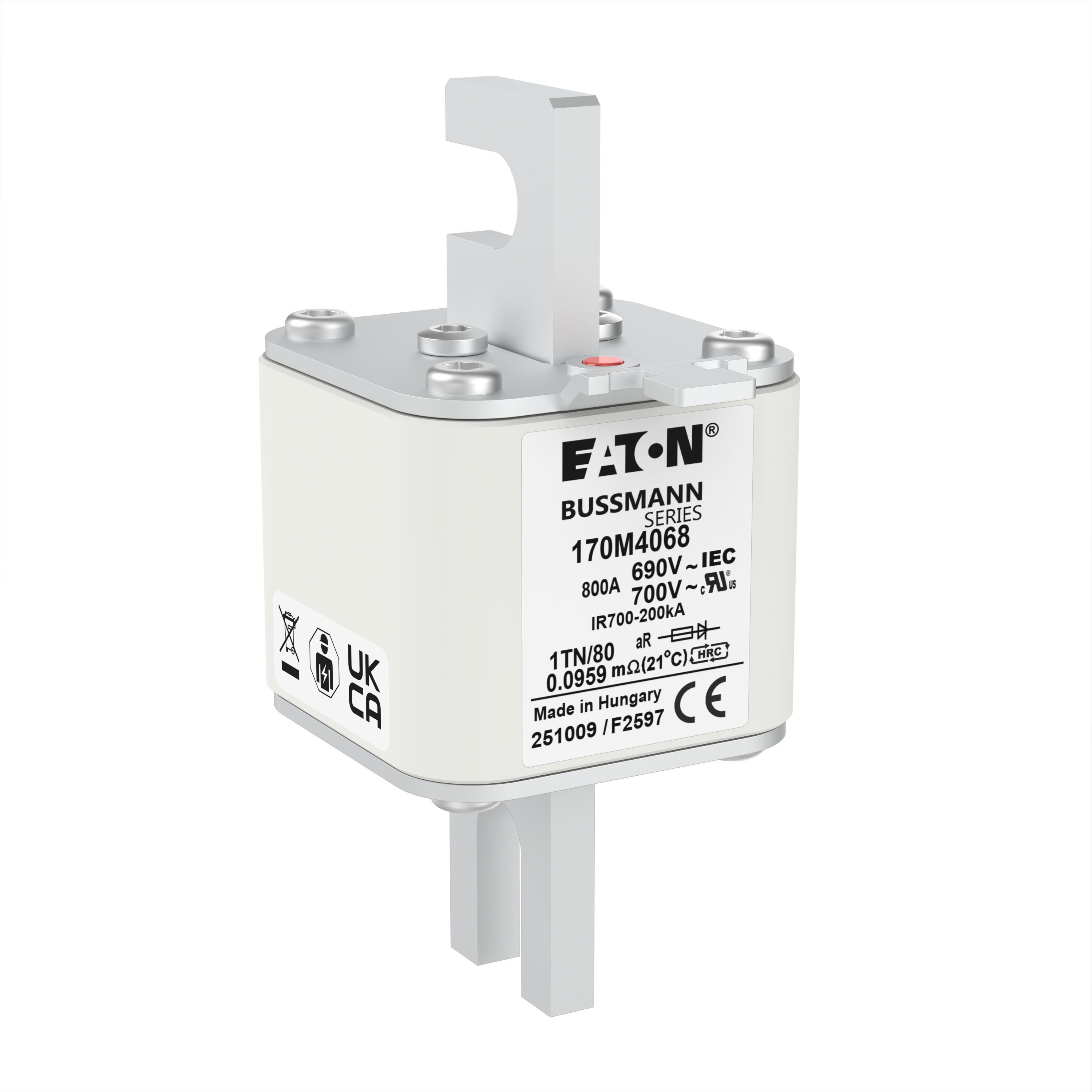 170M4068 Wkładka szybka, 800 A, AC 690 V, DIN 1, 53 x 66 x 108 mm, aR, DIN, IEC