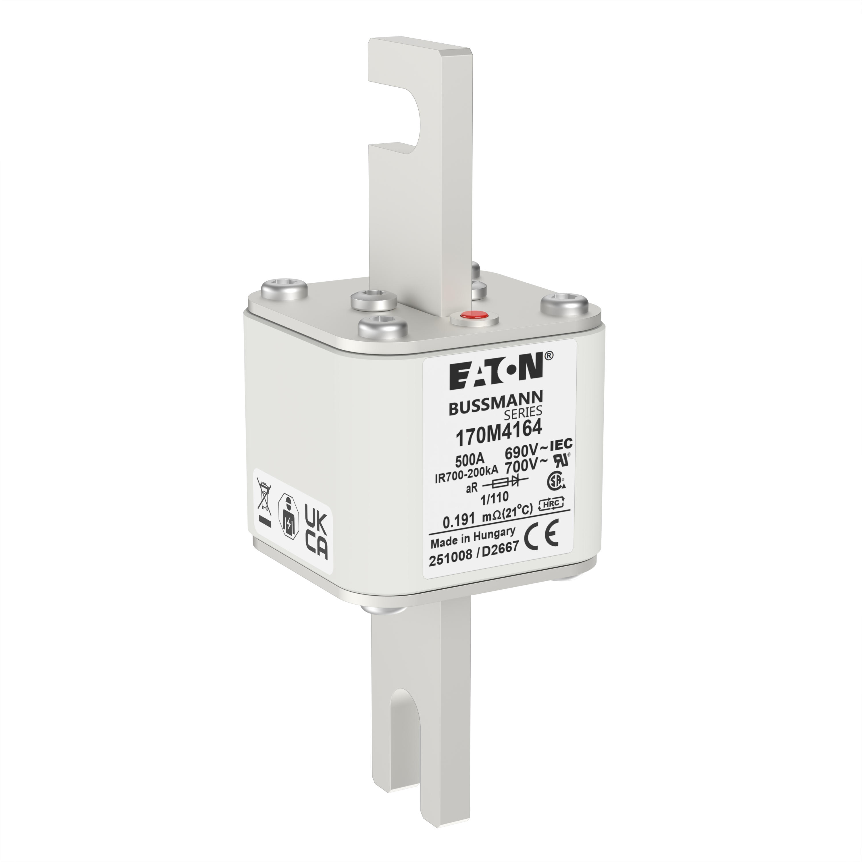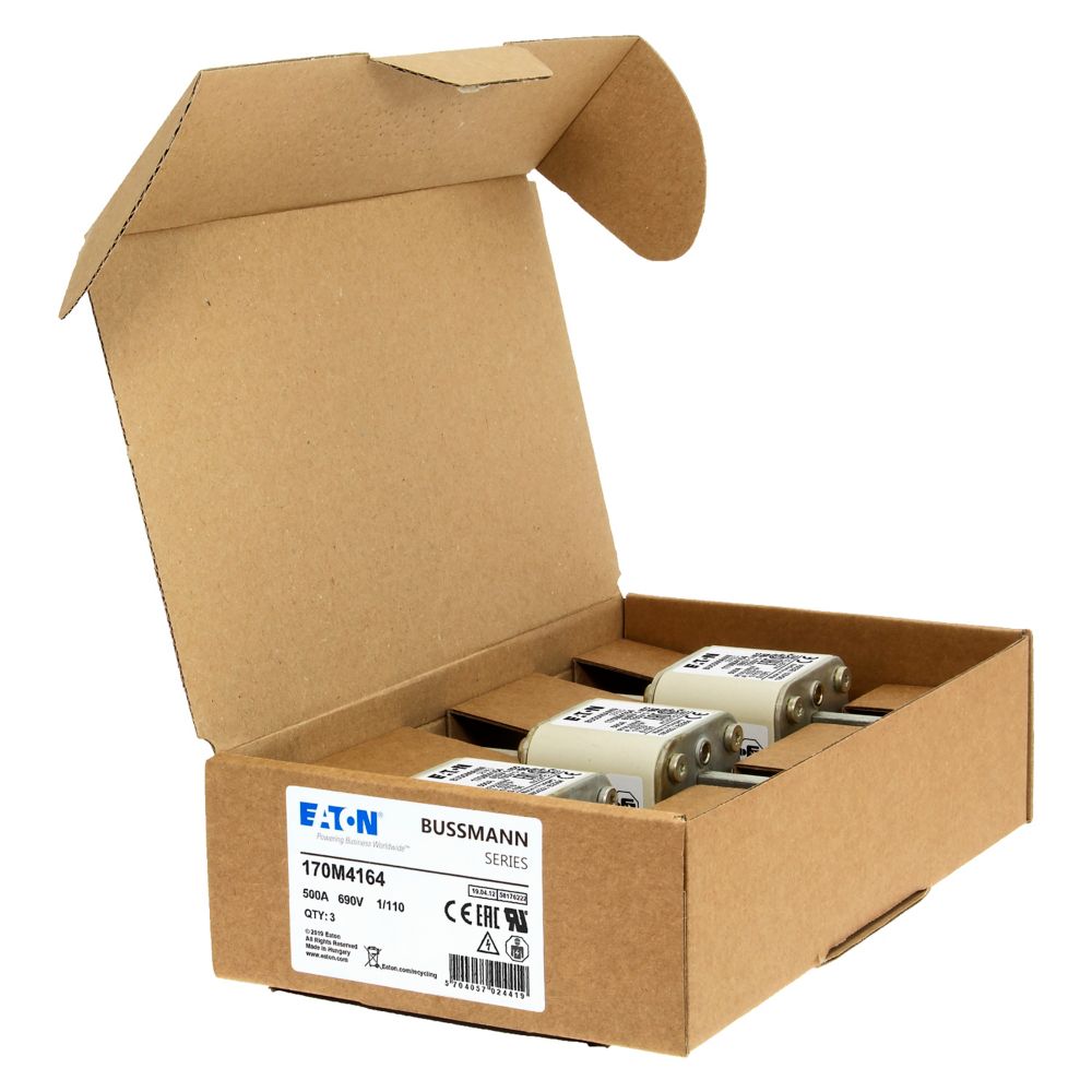 170M4164 Wkładka szybka, 500 A, AC 690 V, DIN 1, 53 x 66 x 138 mm, aR, DIN, IEC