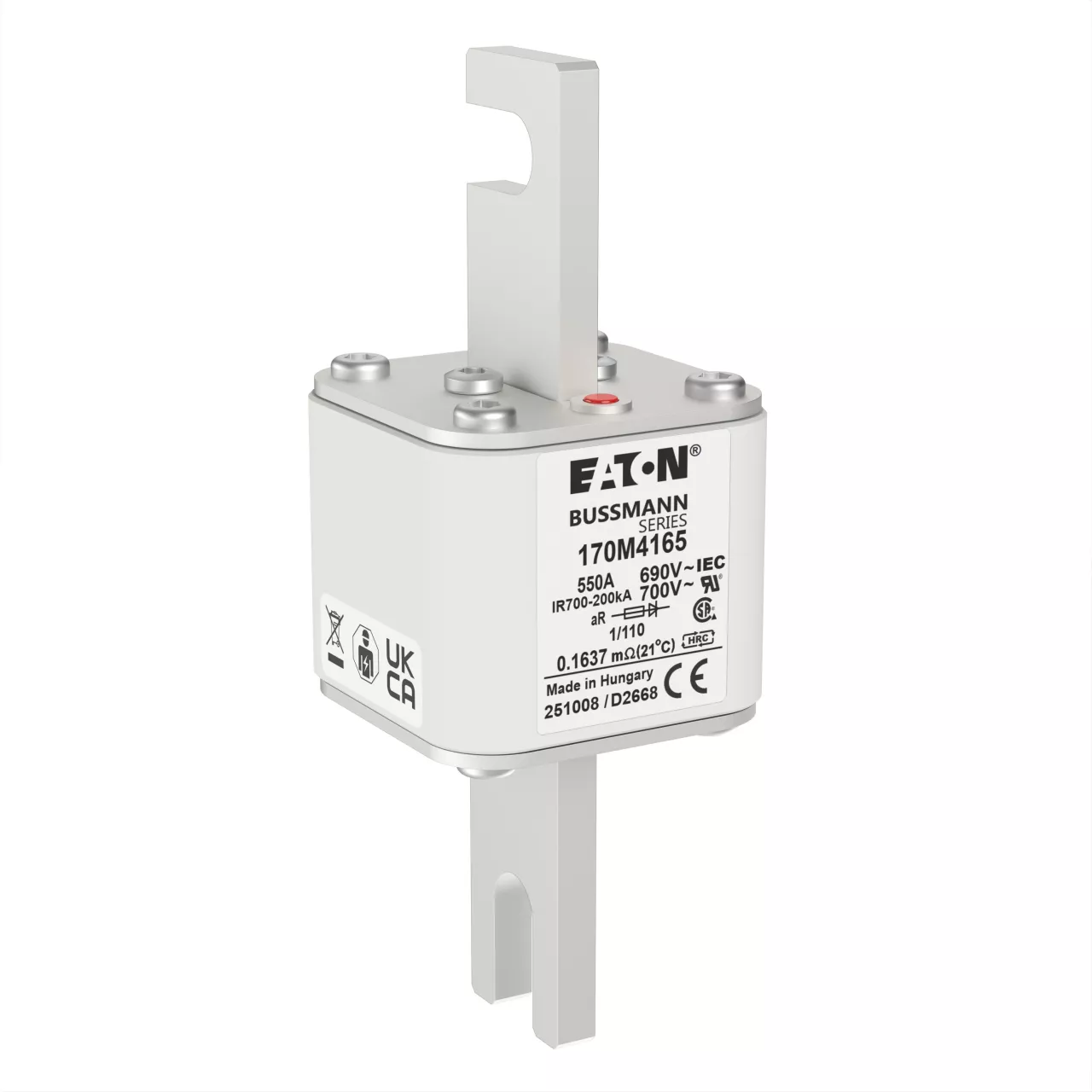 170M4165 Wkładka szybka, 550 A, AC 690 V, DIN 1, 53 x 66 x 138 mm, aR, DIN, IEC