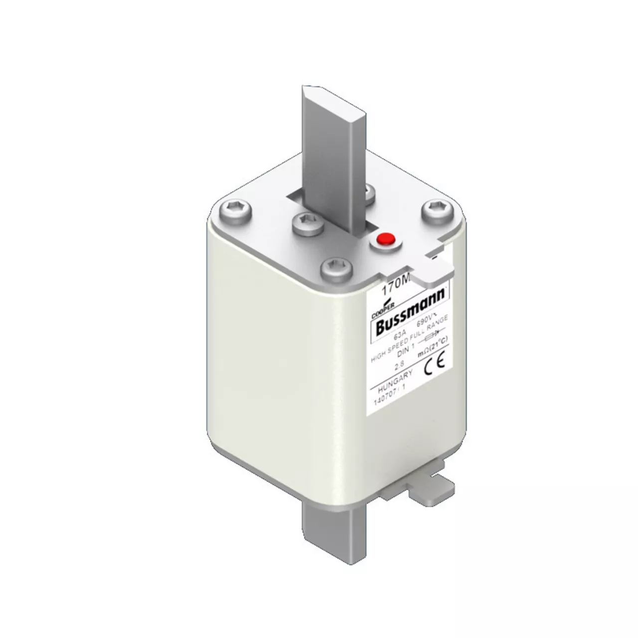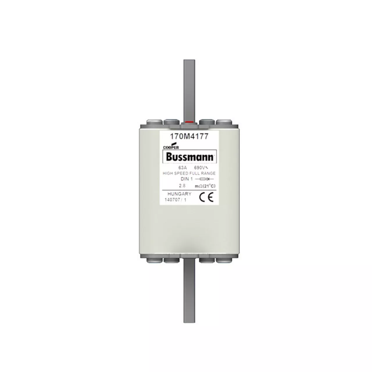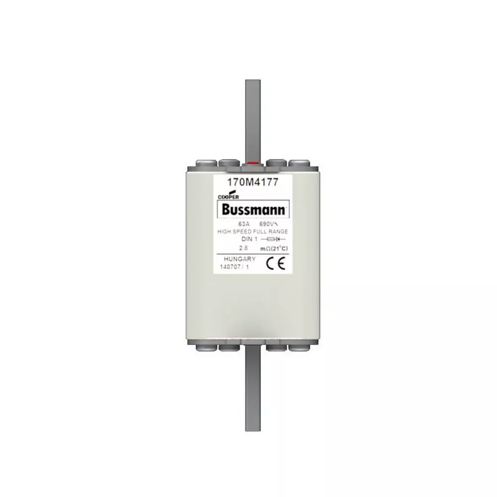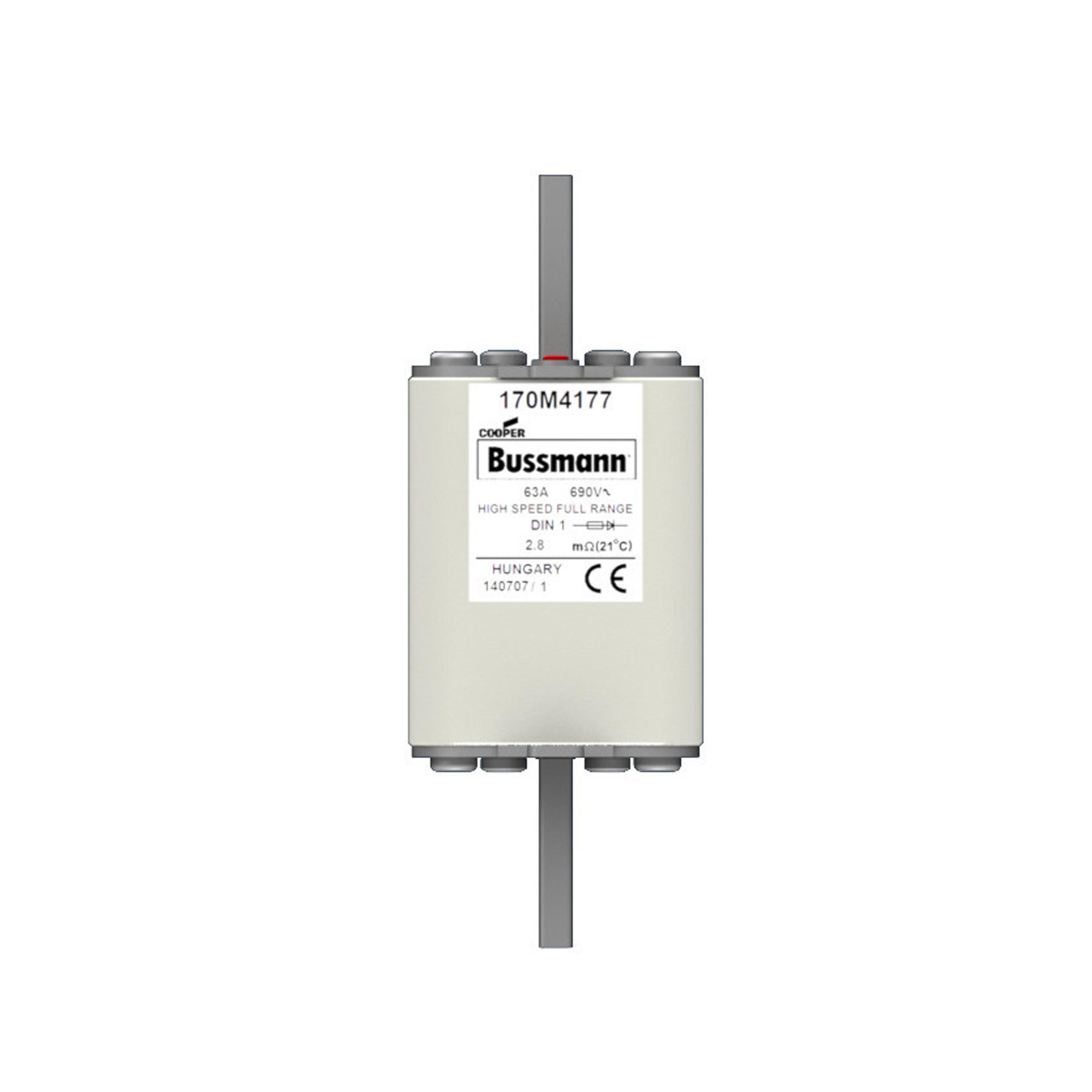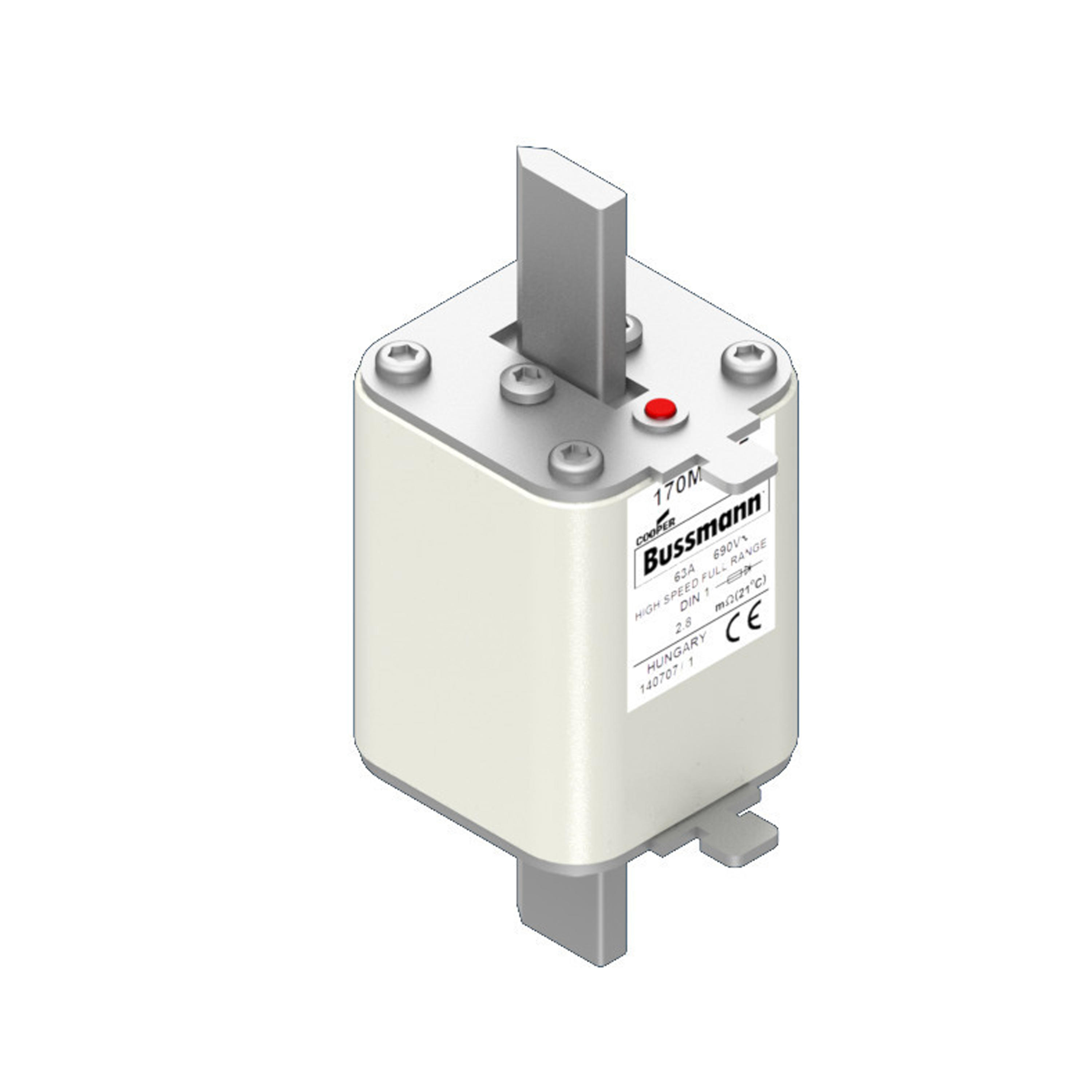 170M4177 Wkładka szybka, 63 A, AC 690 V, DIN 1, 52 x 66 x 135 mm, gR, DIN, IEC, pojedynczy wskaźnik