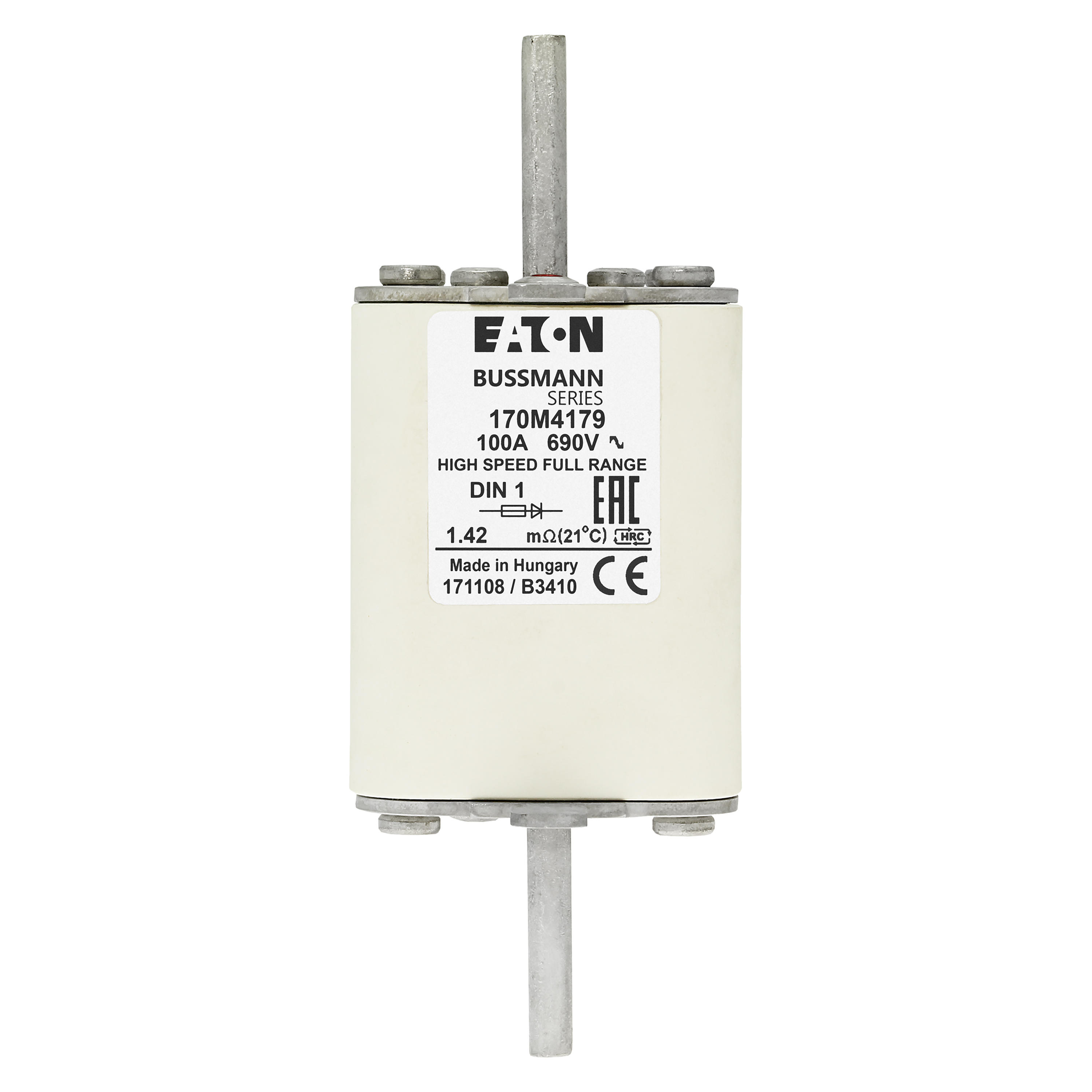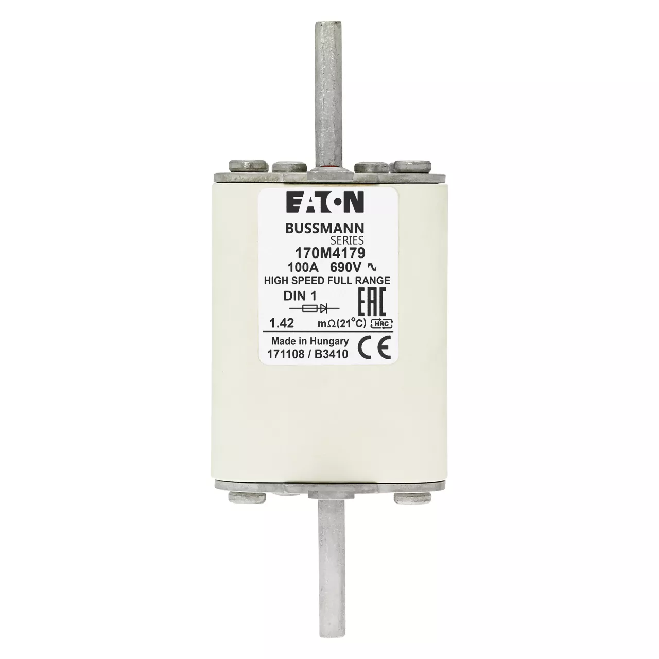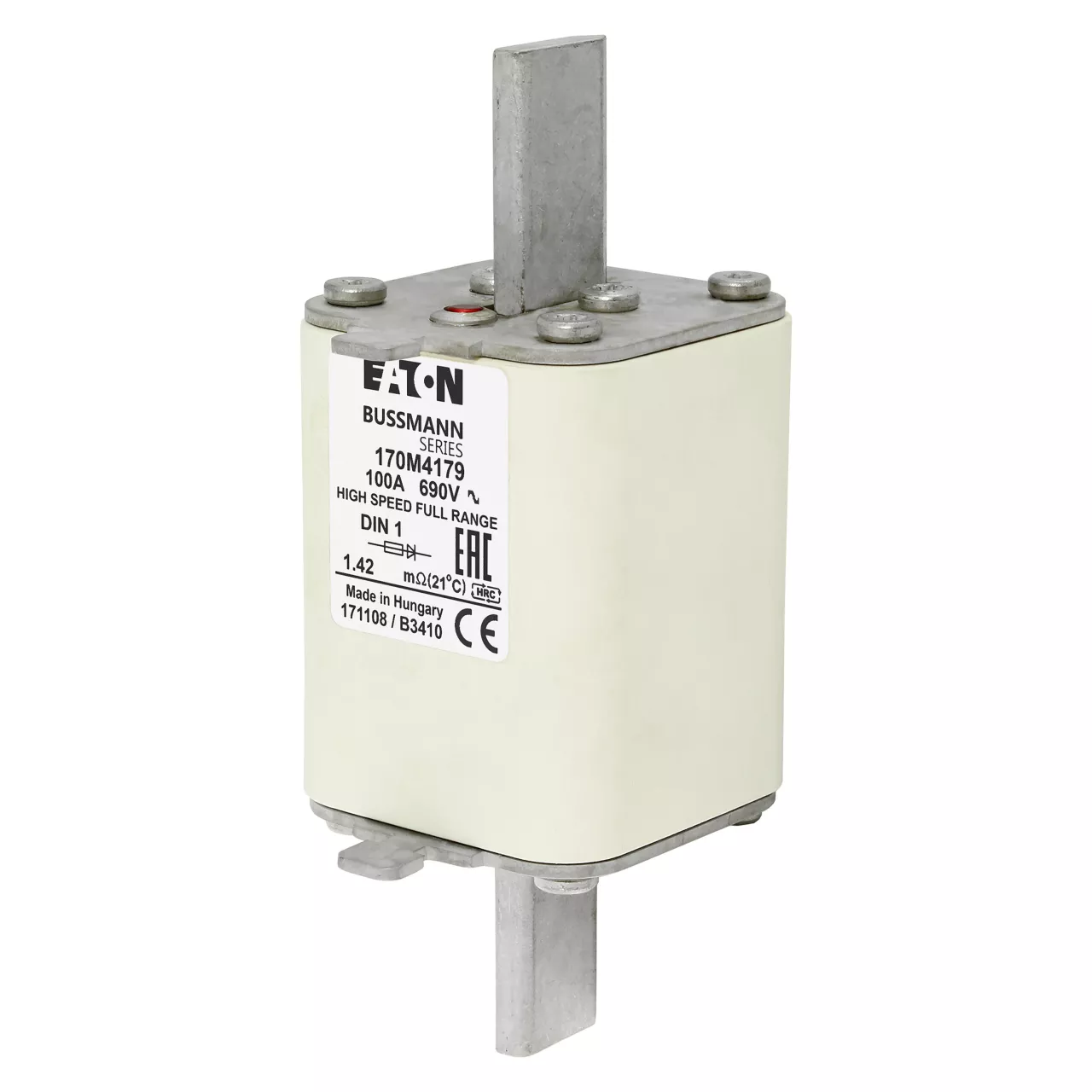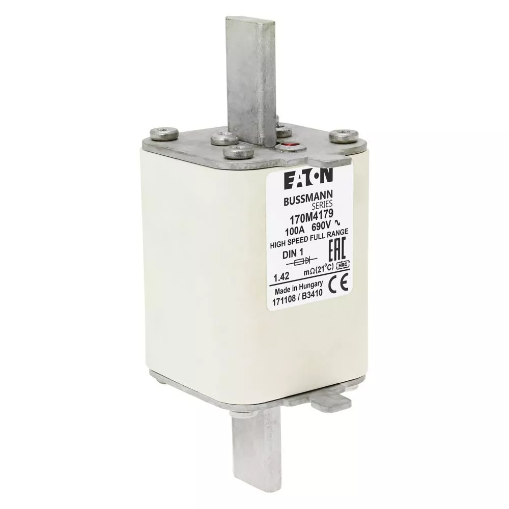 170M4179 Wkładka szybka, 100 A, AC 690 V, DIN 1, 52 x 66 x 135 mm, gR, DIN, IEC, pojedynczy wskaźnik