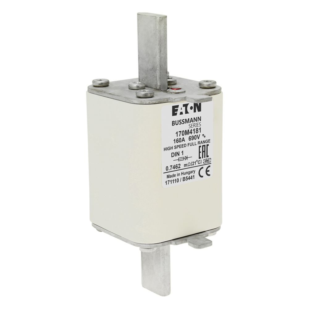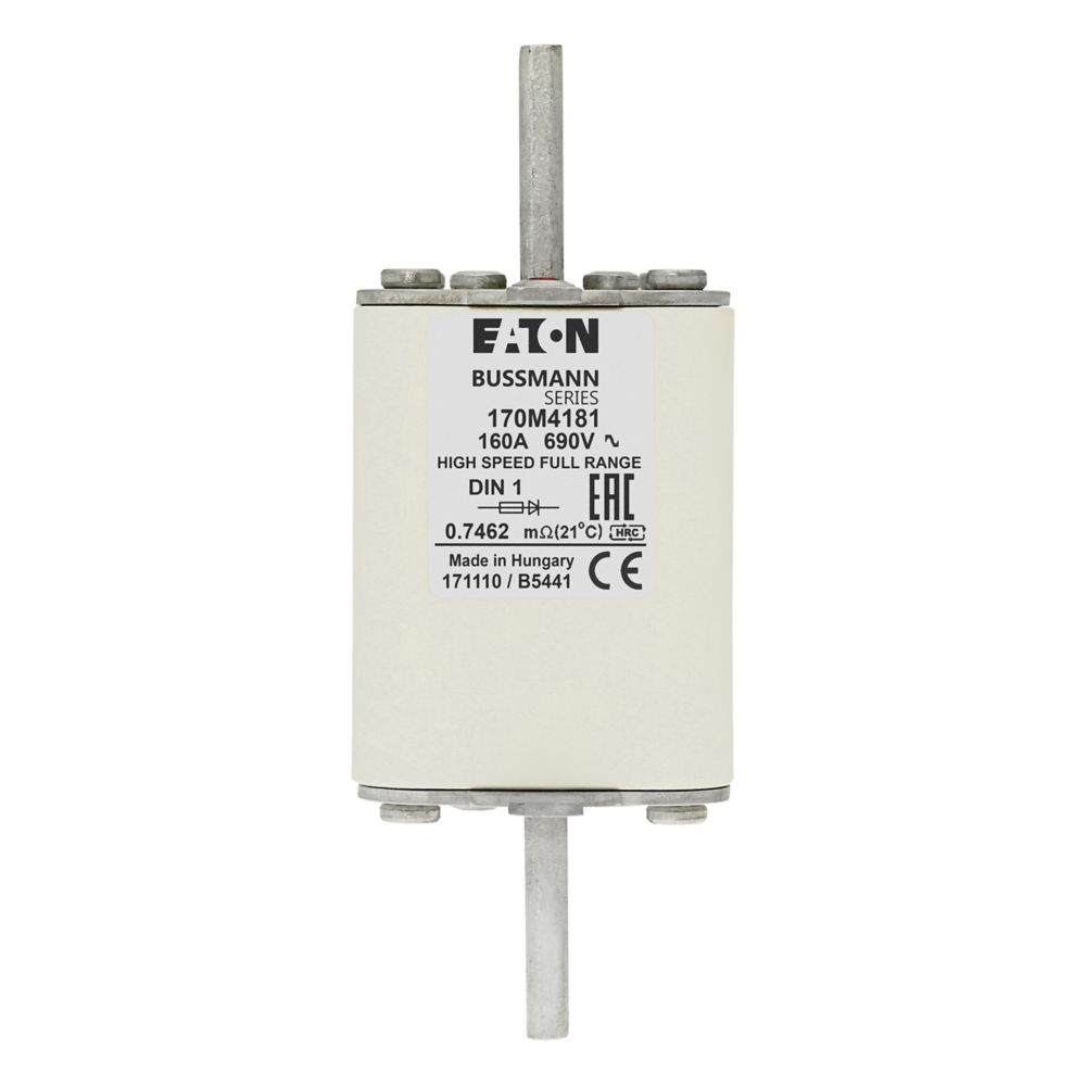 170M4181 Wkładka szybka, 160 A, AC 690 V, DIN 1, 52 x 66 x 135 mm, gR, DIN, IEC, pojedynczy wskaźnik