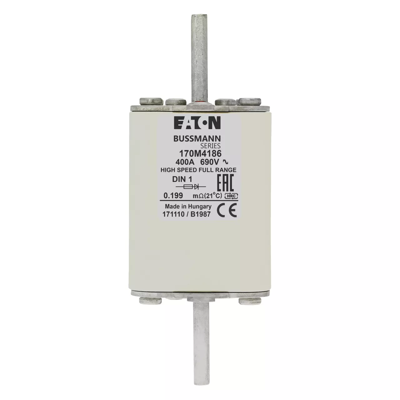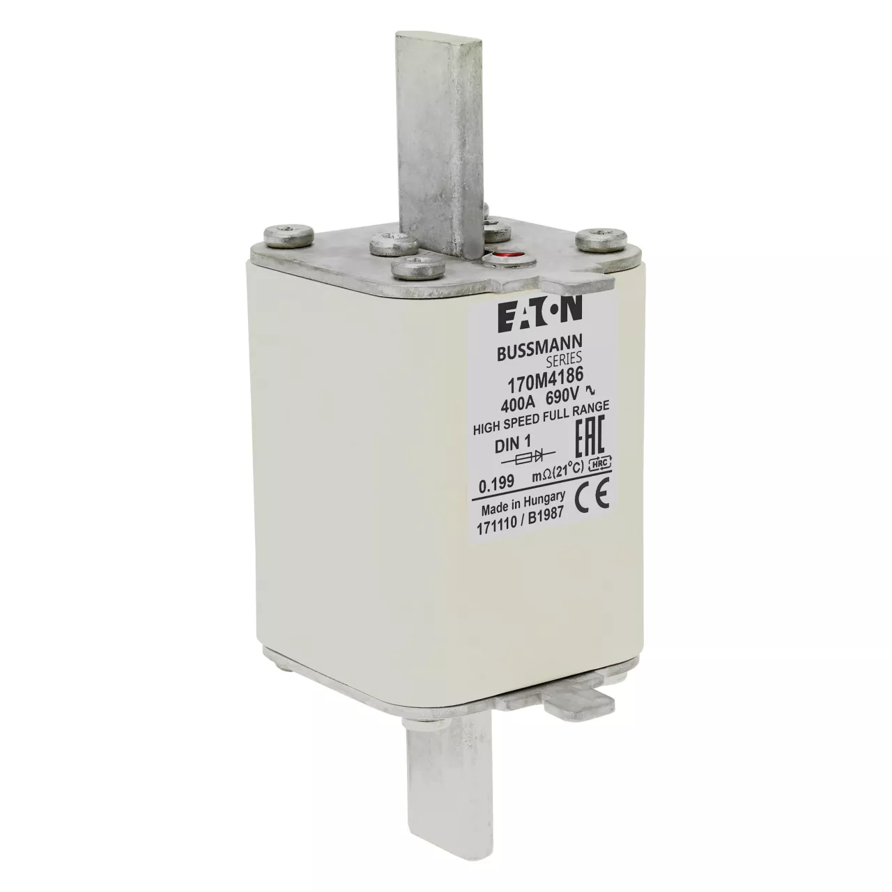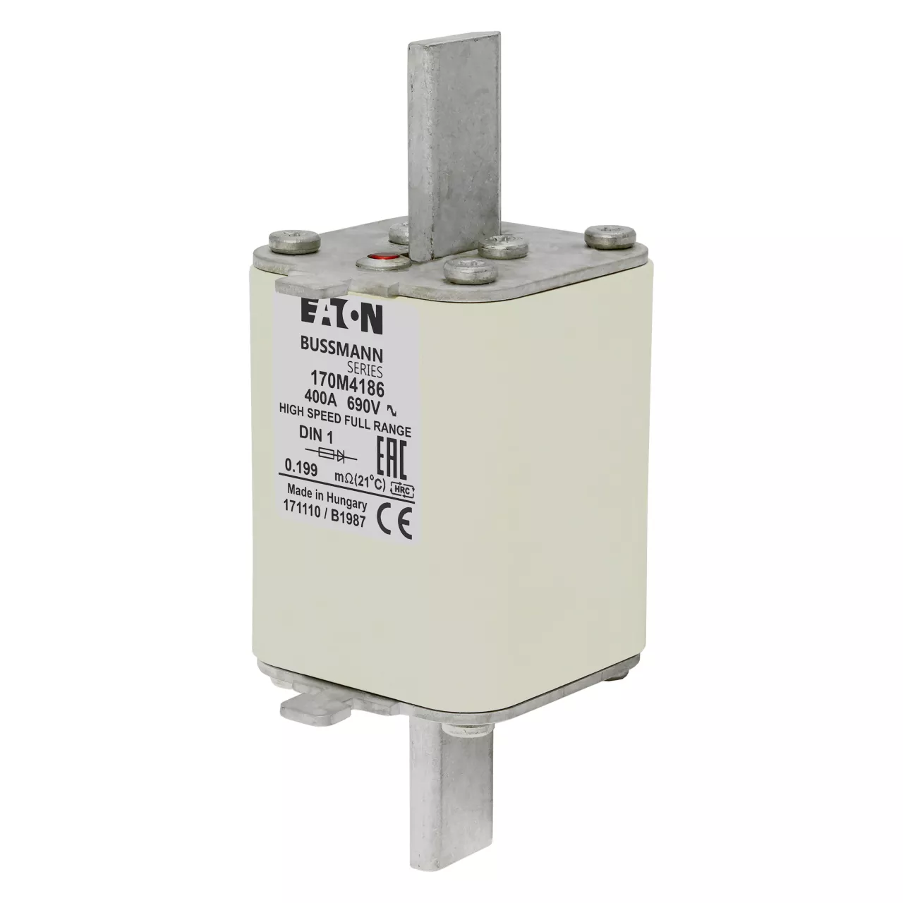 170M4186 Wkładka szybka, 400 A, AC 690 V, DIN 1, 52 x 66 x 135 mm, gR, DIN, IEC, pojedynczy wskaźnik