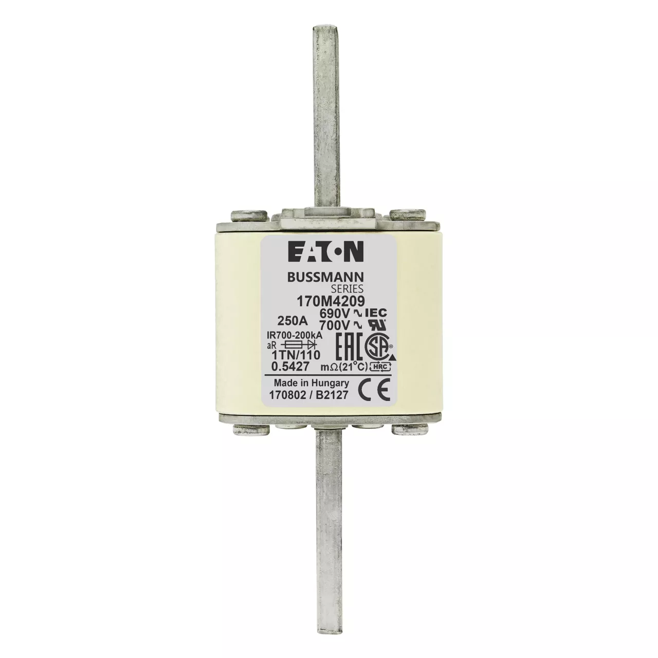 170M4209 Wkładka szybka, 250 A, AC 690 V, DIN 1, 53 x 66 x 138 mm, aR, DIN, IEC, wskaźnik T