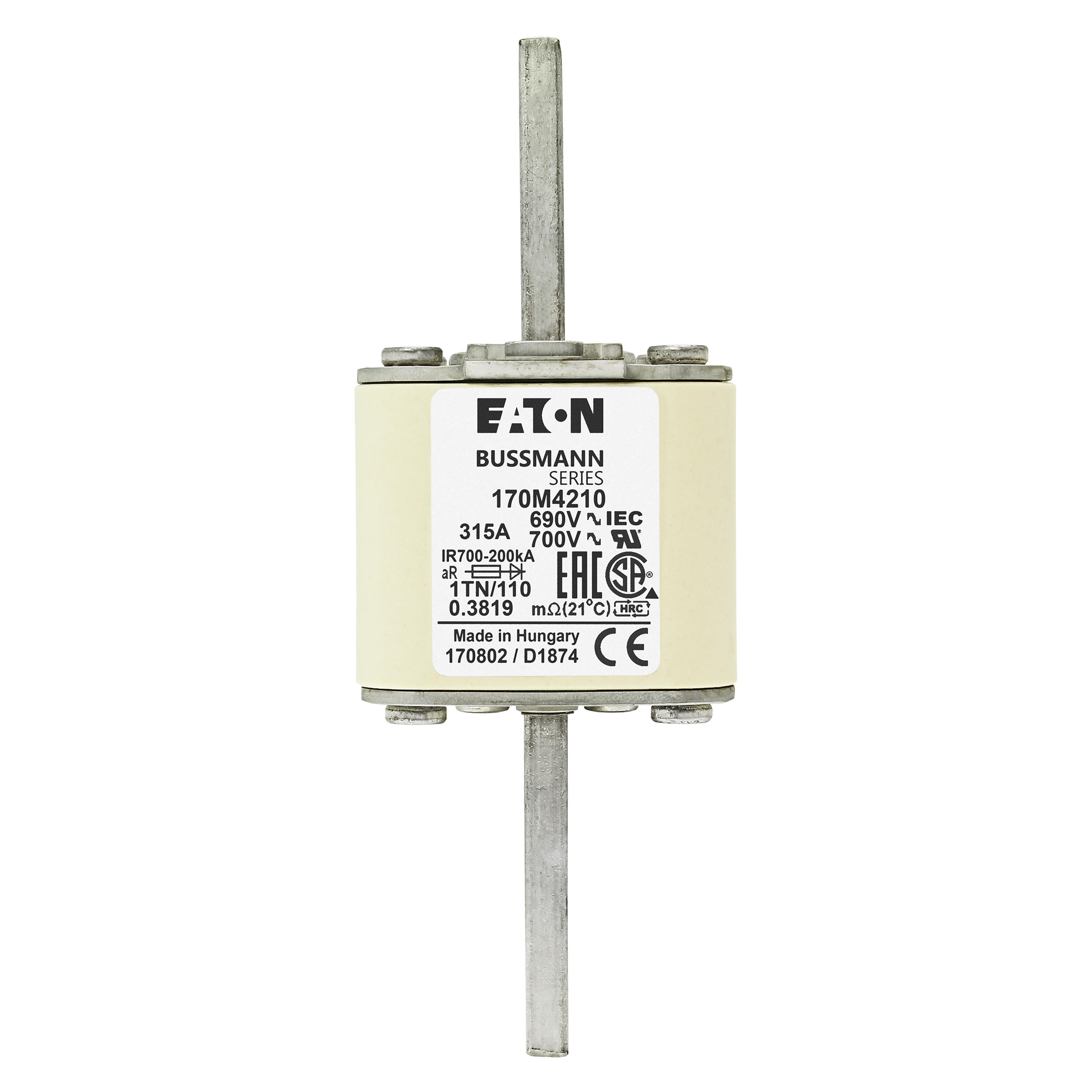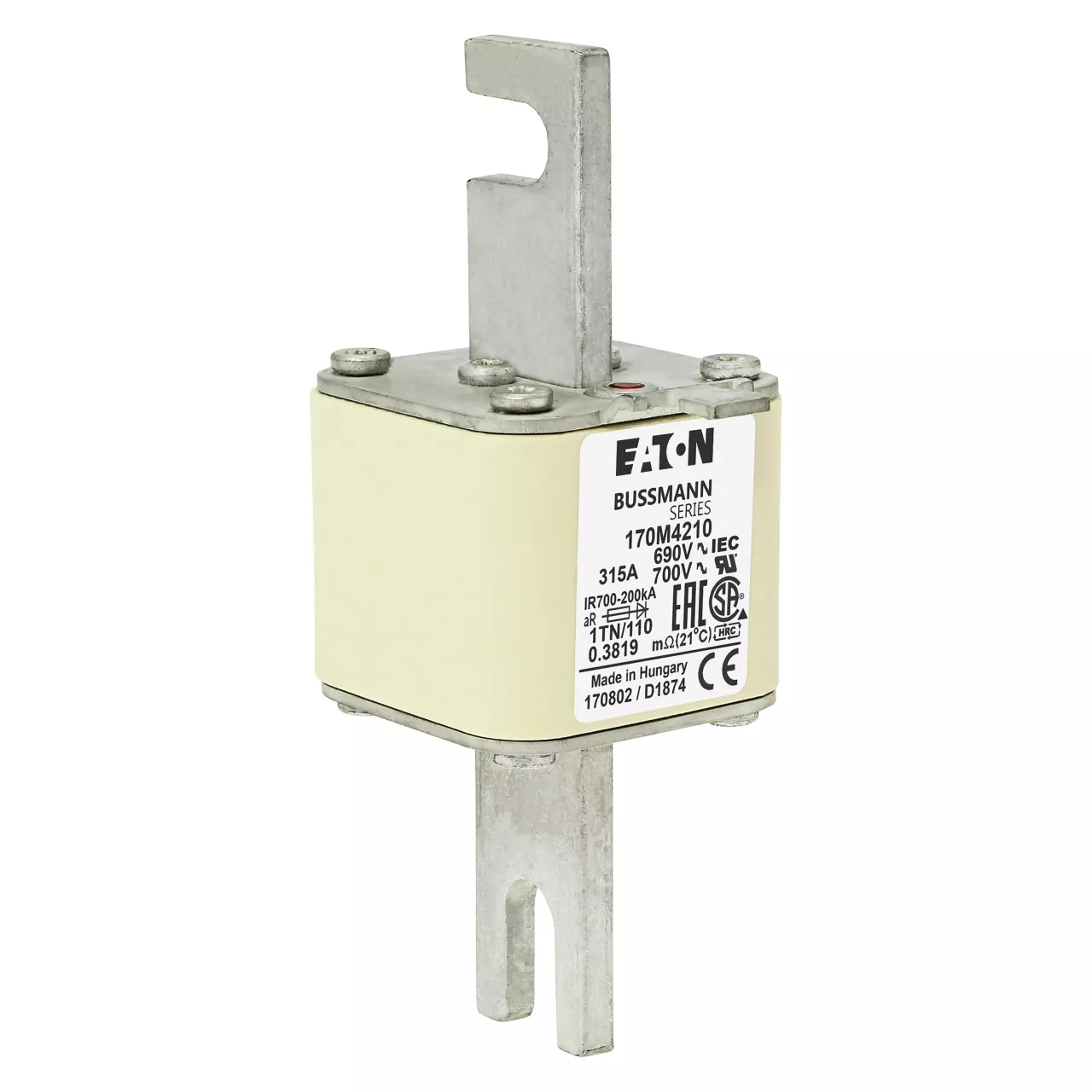 170M4210 Wkładka szybka, 315 A, AC 690 V, DIN 1, 53 x 66 x 138 mm, aR, DIN, IEC, wskaźnik T
