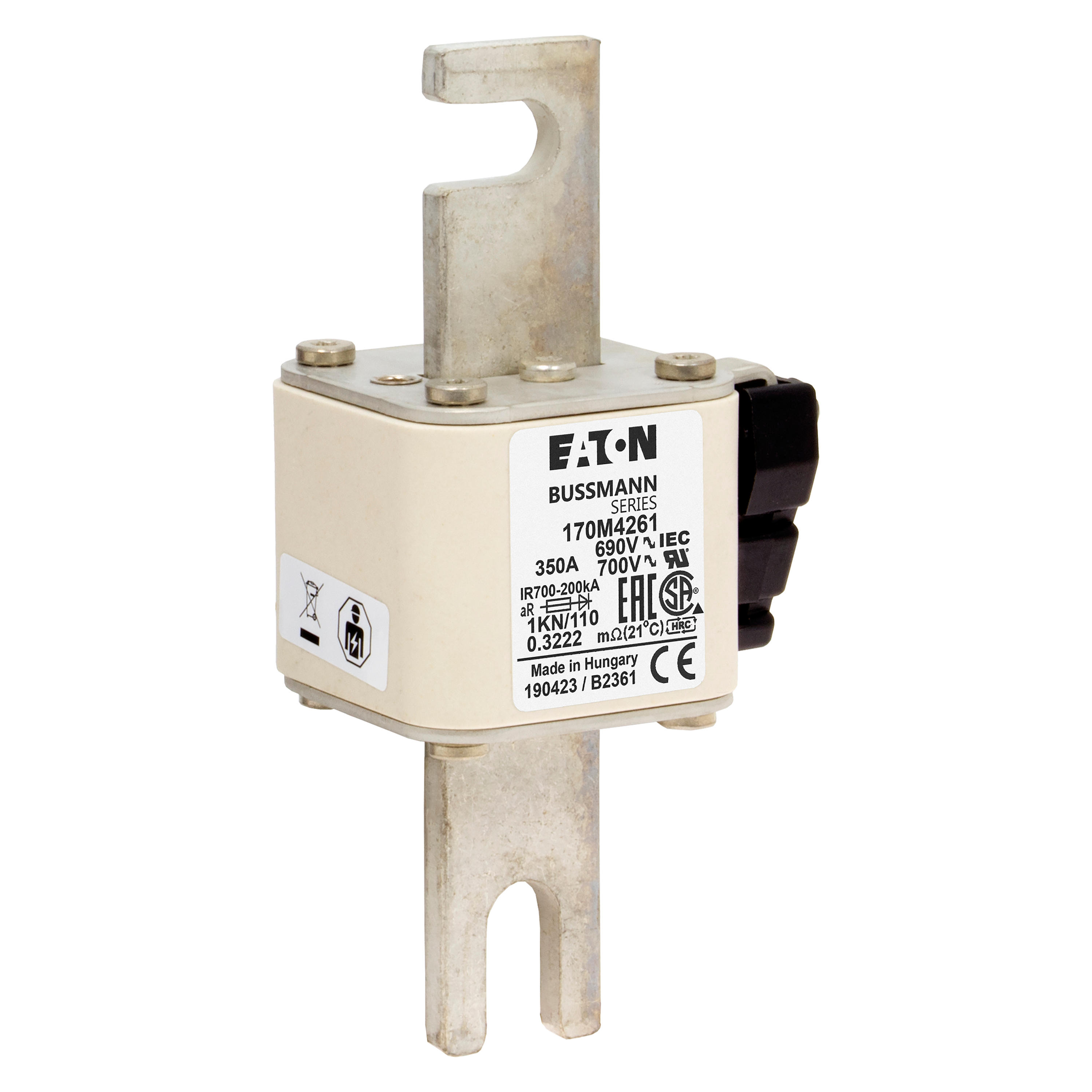 170M4261 Wkładka szybka, 350 A, AC 690 V, DIN 1, 53 x 69 x 138 mm, aR, DIN, IEC