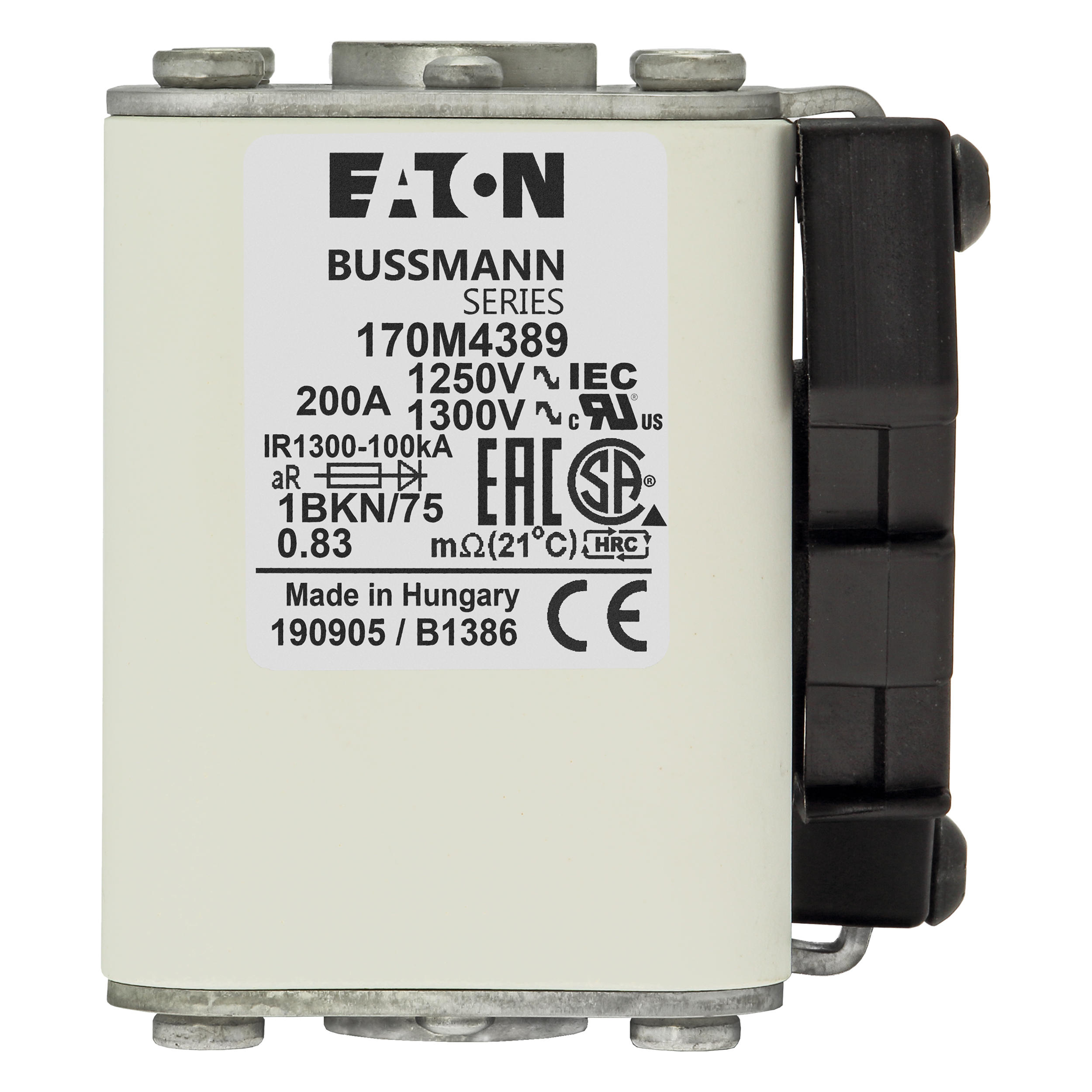 170M4389 Wkładka szybka, 200 A, AC 1250 V, size 1, 53 x 69 x 74 mm, aR, IEC, UL