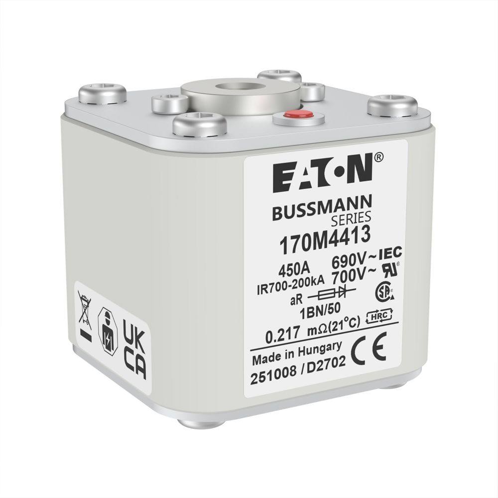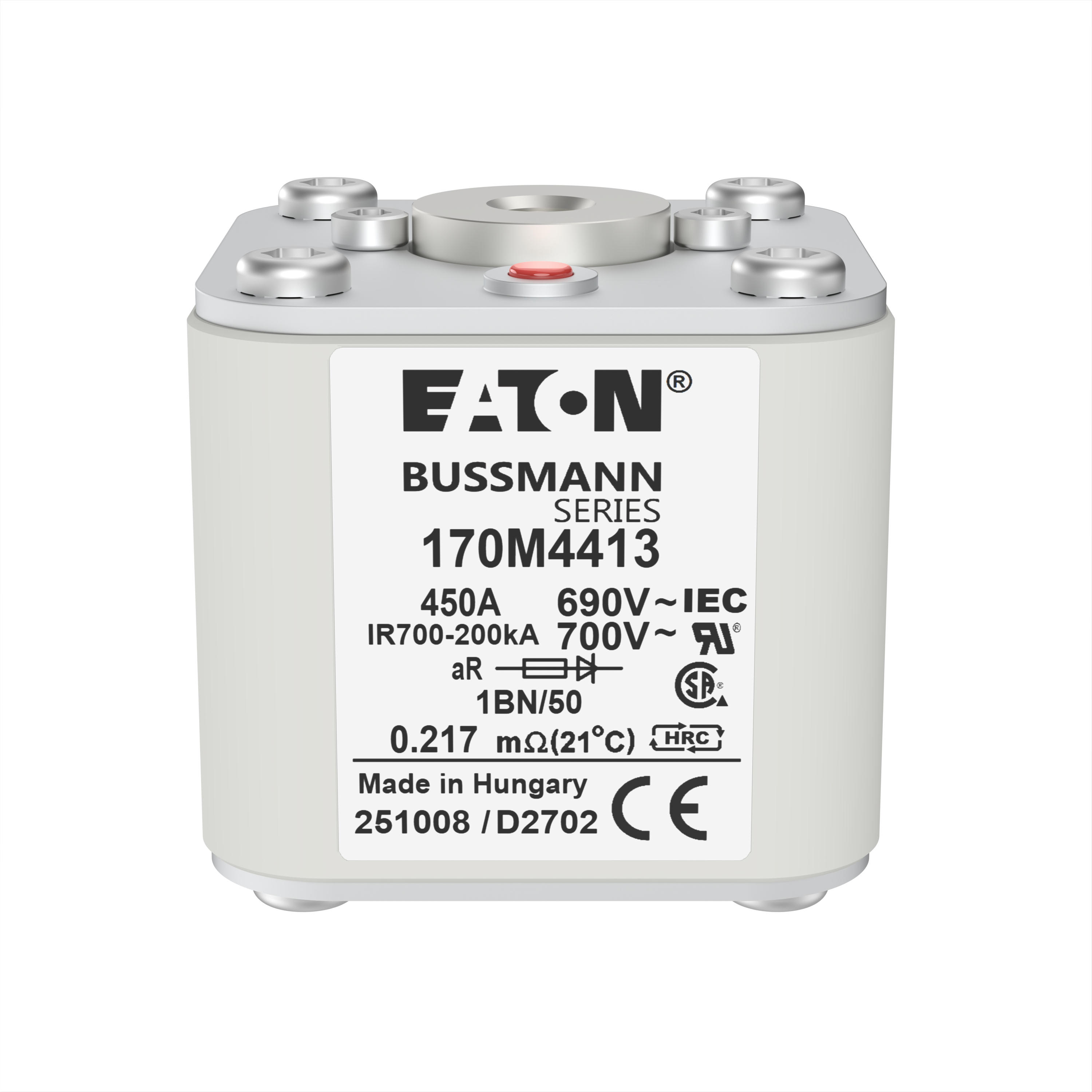 170M4413 Wkładka szybka, 450 A, AC 690 V, size 1, 53 x 69 x 51 mm, aR, IEC, UL, wskaźnik, flush end, M8
