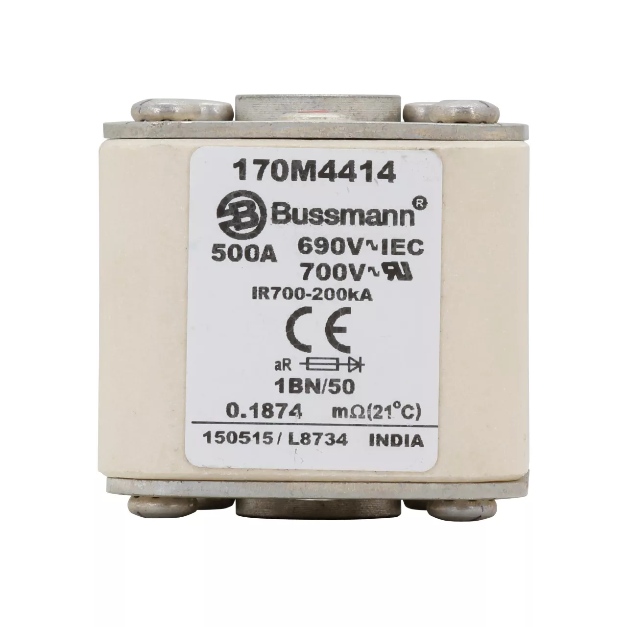 170M4414 Wkładka szybka, 500 A, AC 690 V, size 1, 53 x 69 x 51 mm, aR, IEC, UL, wskaźnik, flush end, M8