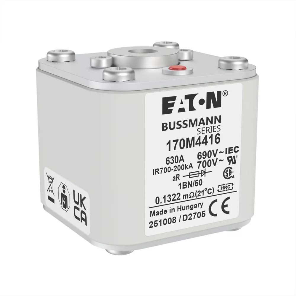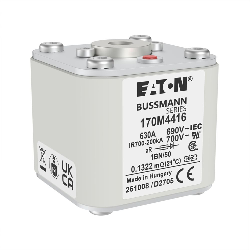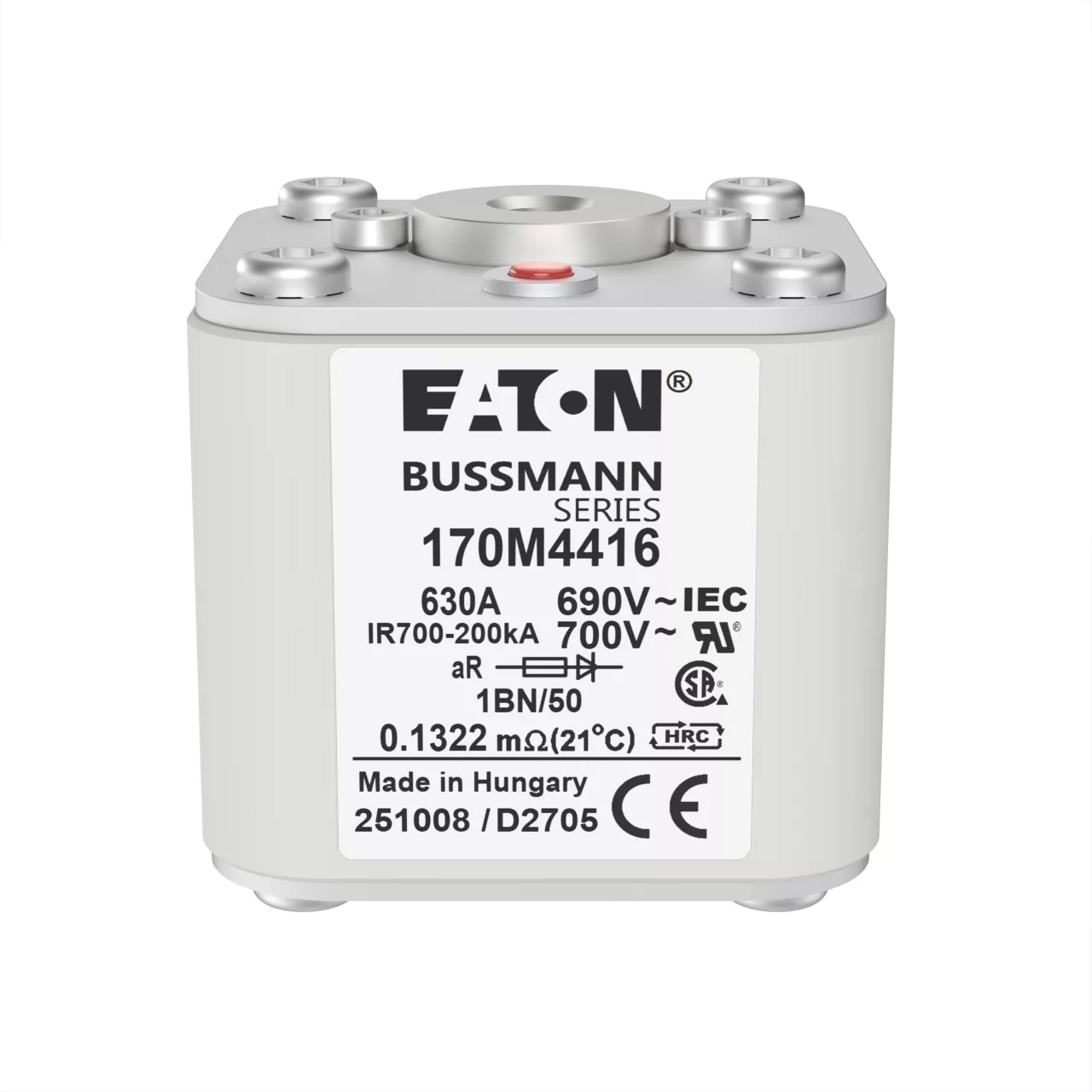 170M4416 Wkładka szybka, 630 A, AC 690 V, size 1, 53 x 69 x 51 mm, aR, IEC, UL, wskaźnik, flush end, M8