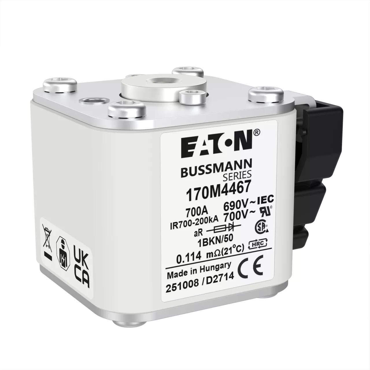 170M4467 Wkładka szybka, 700 A, AC 690 V, size 1, 53 x 69 x 51 mm, aR, IEC, UL, wskaźnik K, flush end, M8