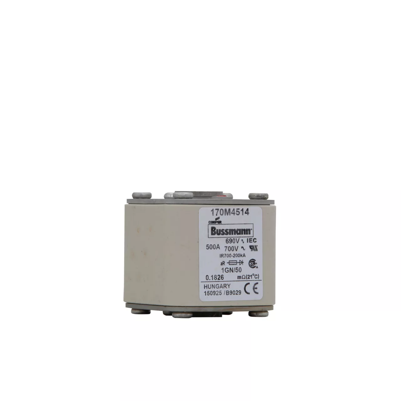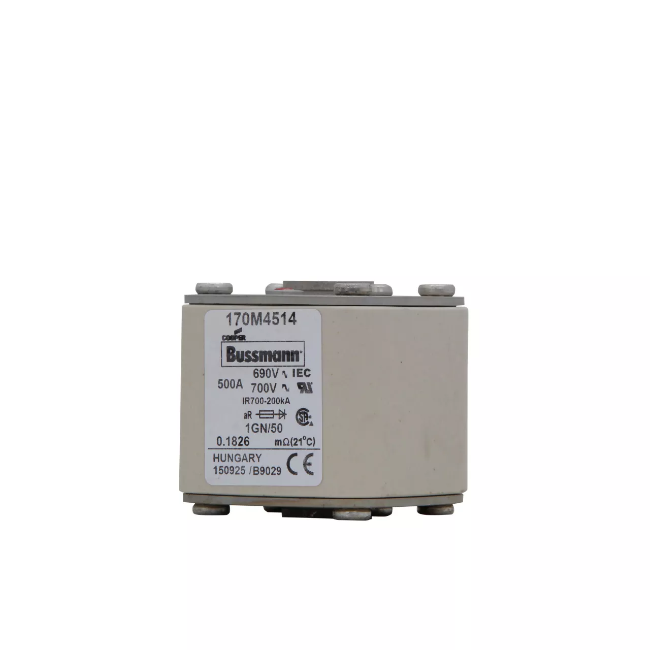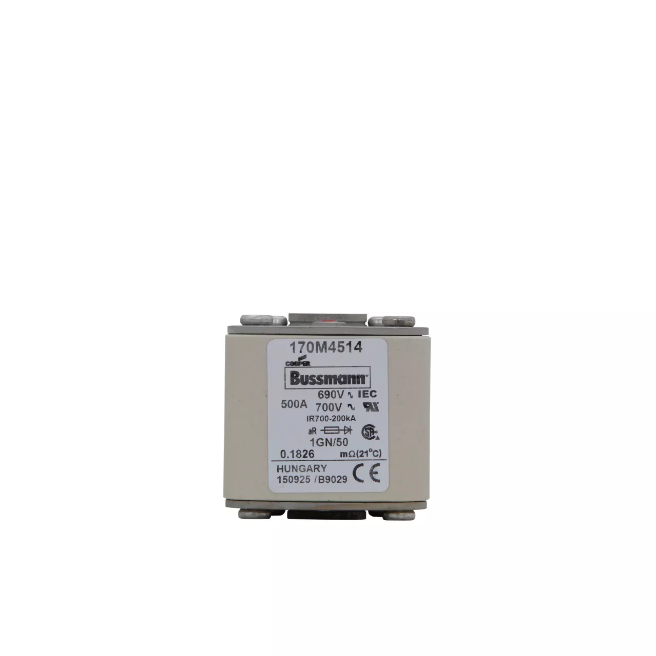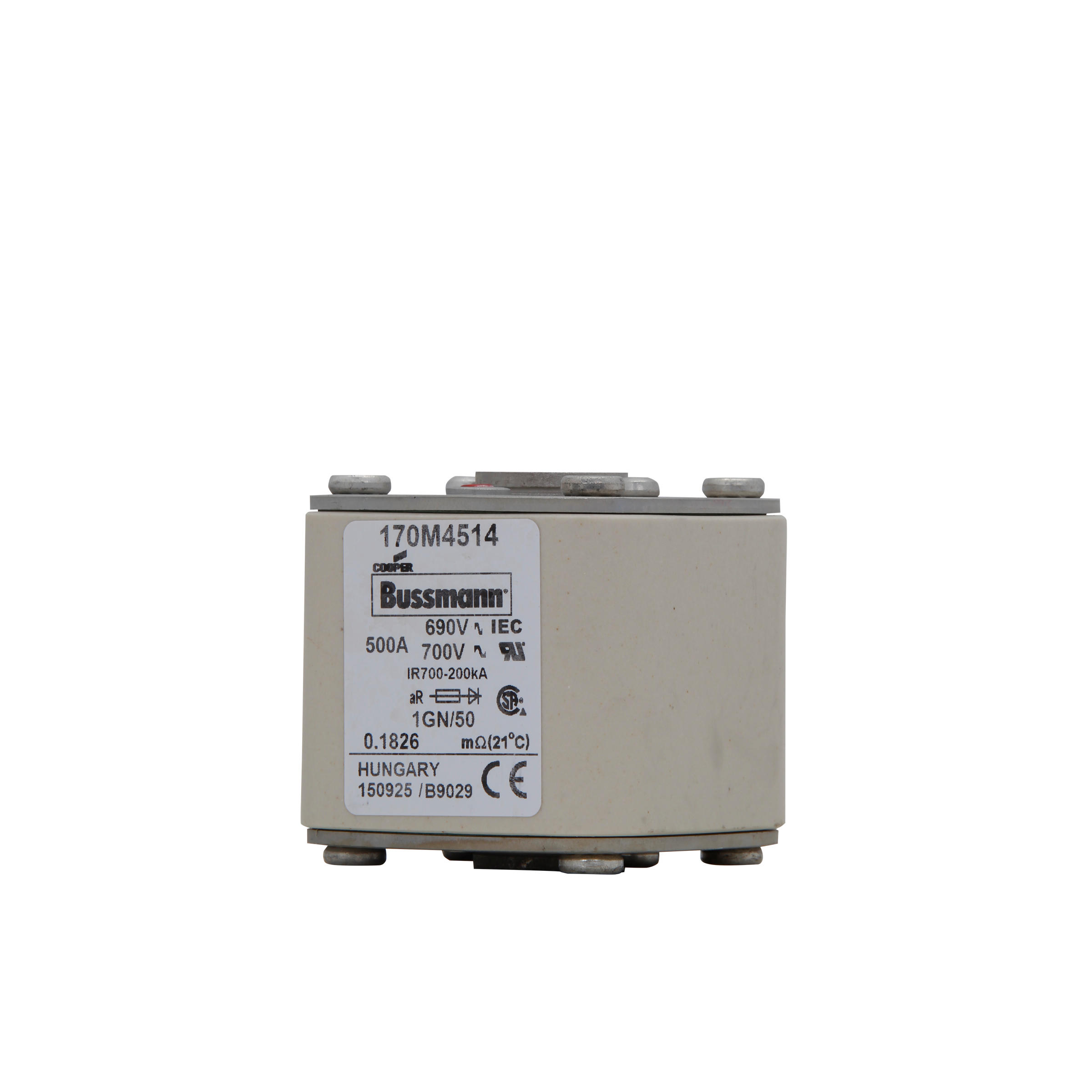 170M4514 Wkładka szybka, 500 A, AC 690 V, size 1, 53 x 69 x 51 mm, aR, IEC, UL, wskaźnik, flush end, 18 UNC