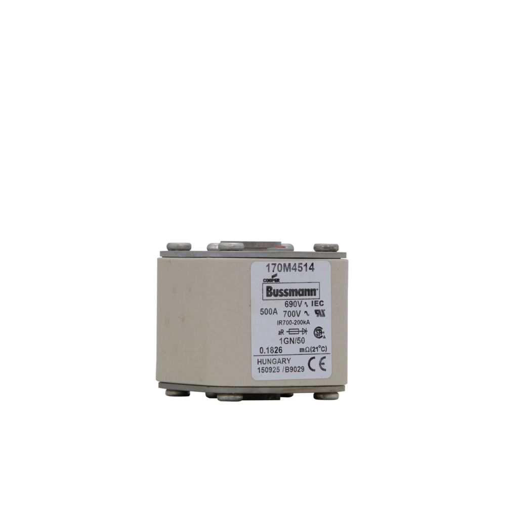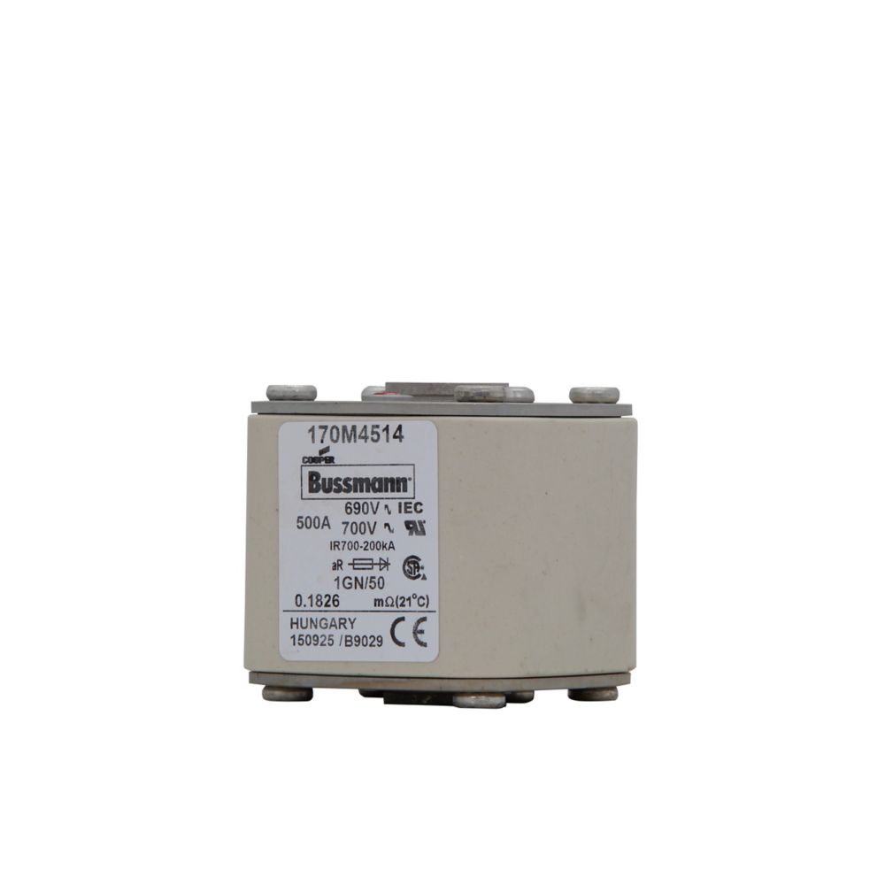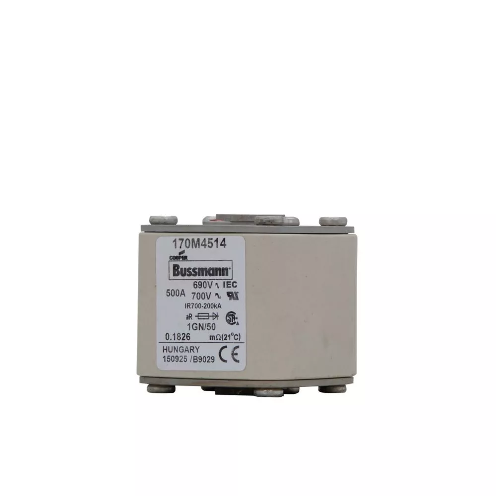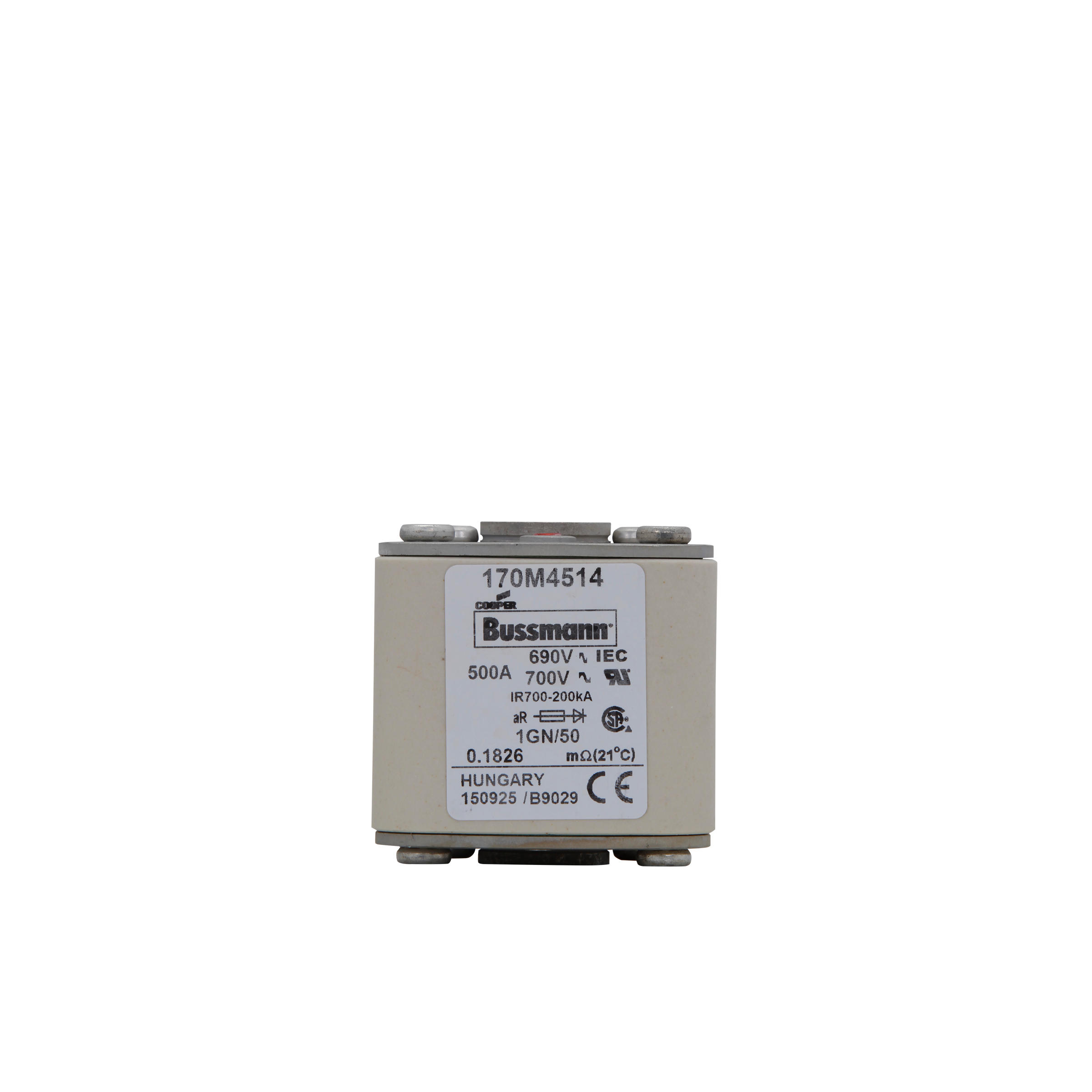 170M4514 Wkładka szybka, 500 A, AC 690 V, size 1, 53 x 69 x 51 mm, aR, IEC, UL, wskaźnik, flush end, 18 UNC