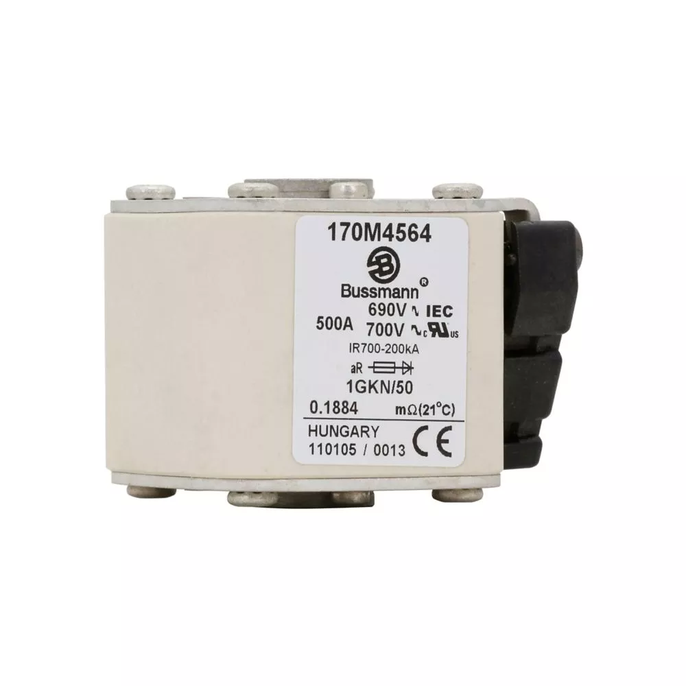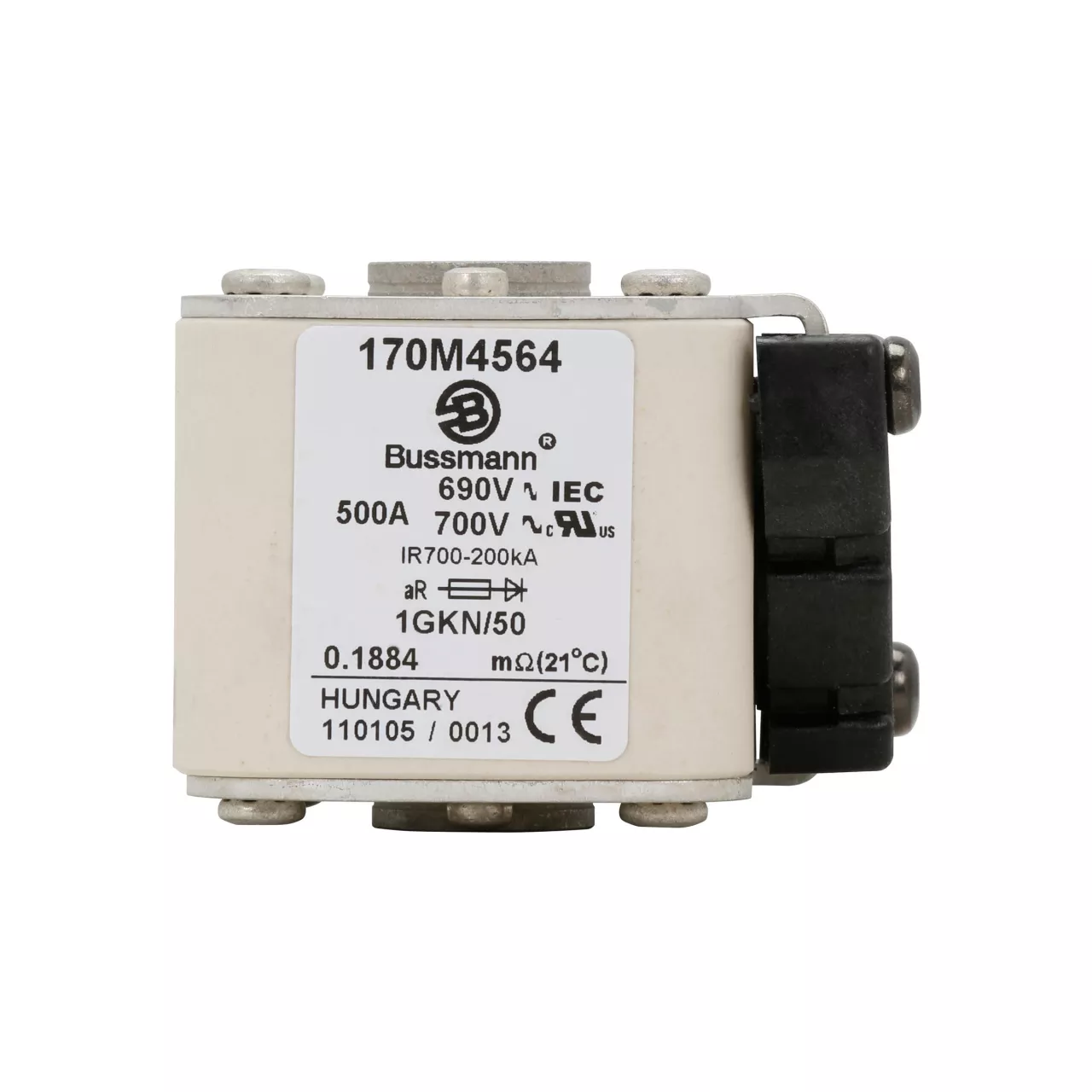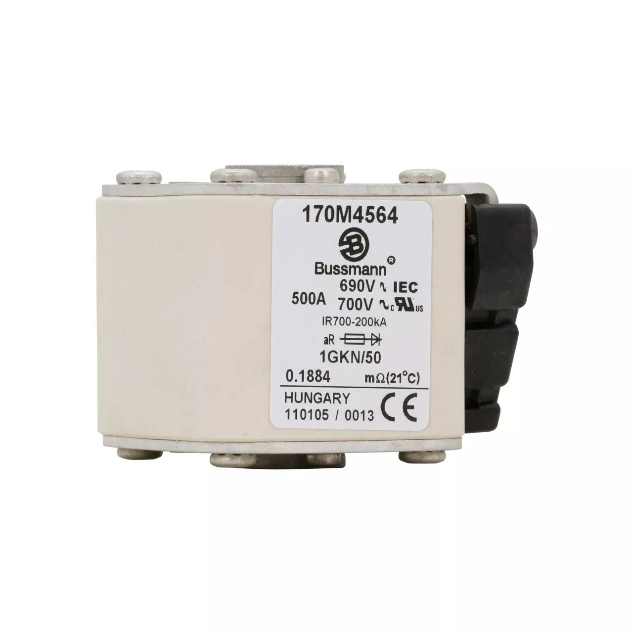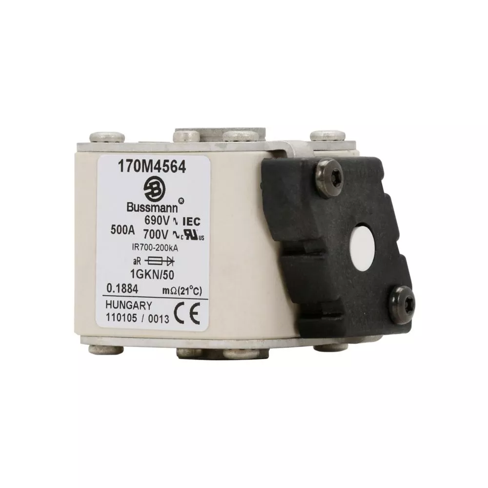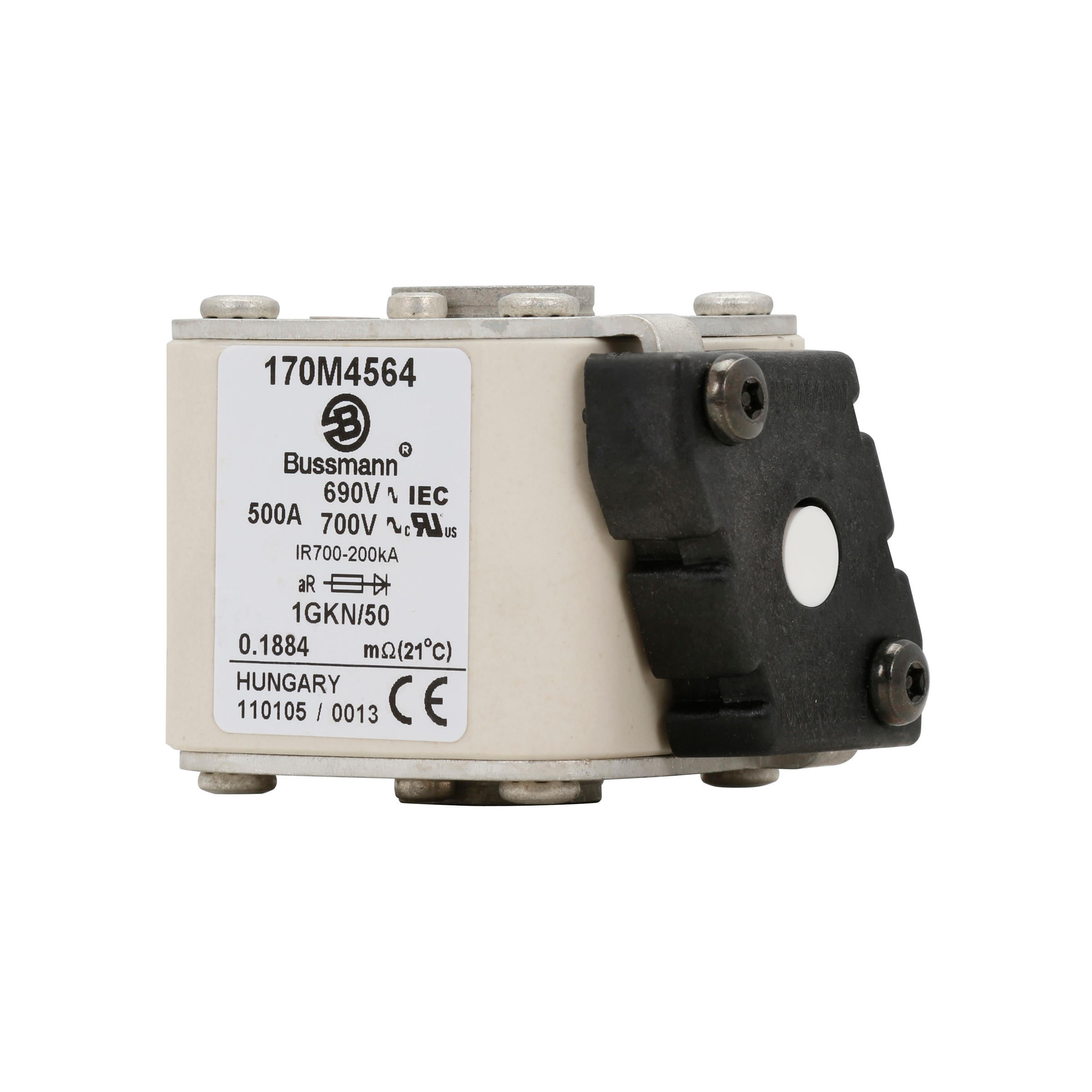 170M4564 Wkładka szybka, 500 A, AC 690 V, size 1, 53 x 69 x 51 mm, aR, IEC, UL, wskaźnik K, flush end, 18 UNC