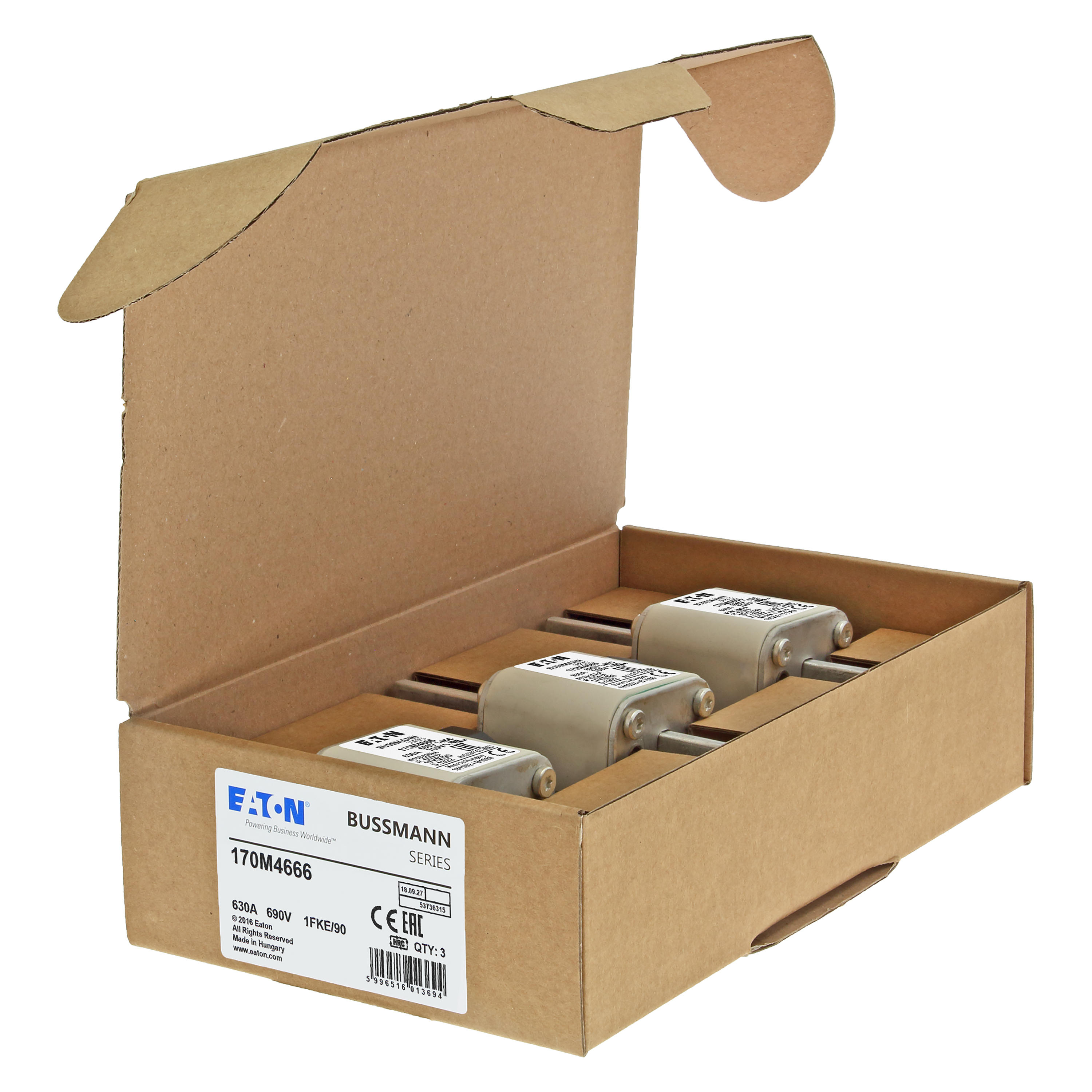 170M4666 Wkładka szybka, 630 A, AC 690 V, size 1, 53 x 69 x 136 mm, aR, IEC, UL