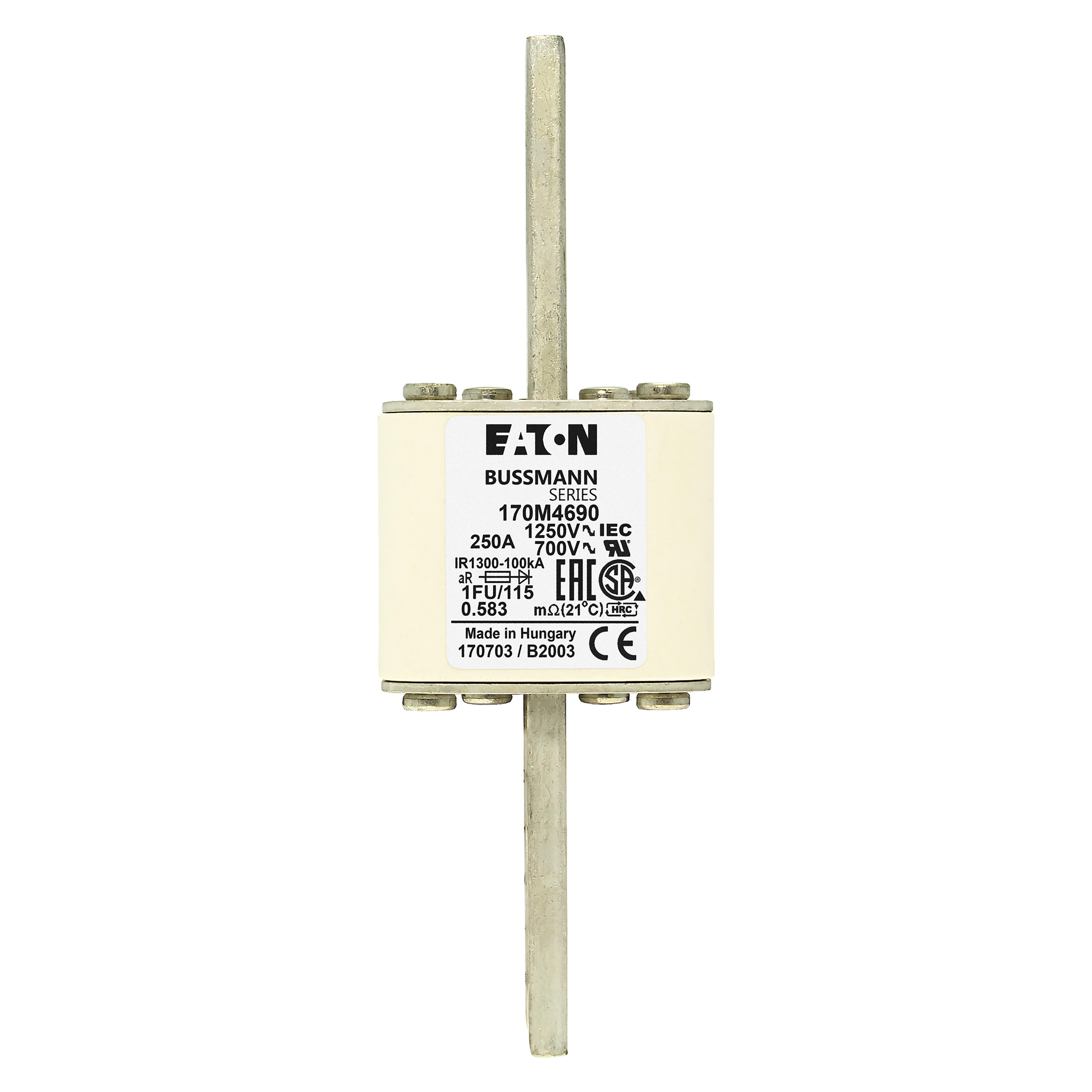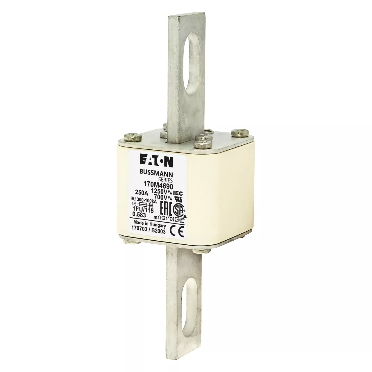 170M4690 Wkładka szybka, 250 A, AC 1250 V, size 1, 53 x 69 x 160 mm, aR, IEC, UL
