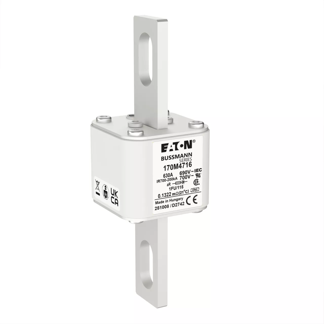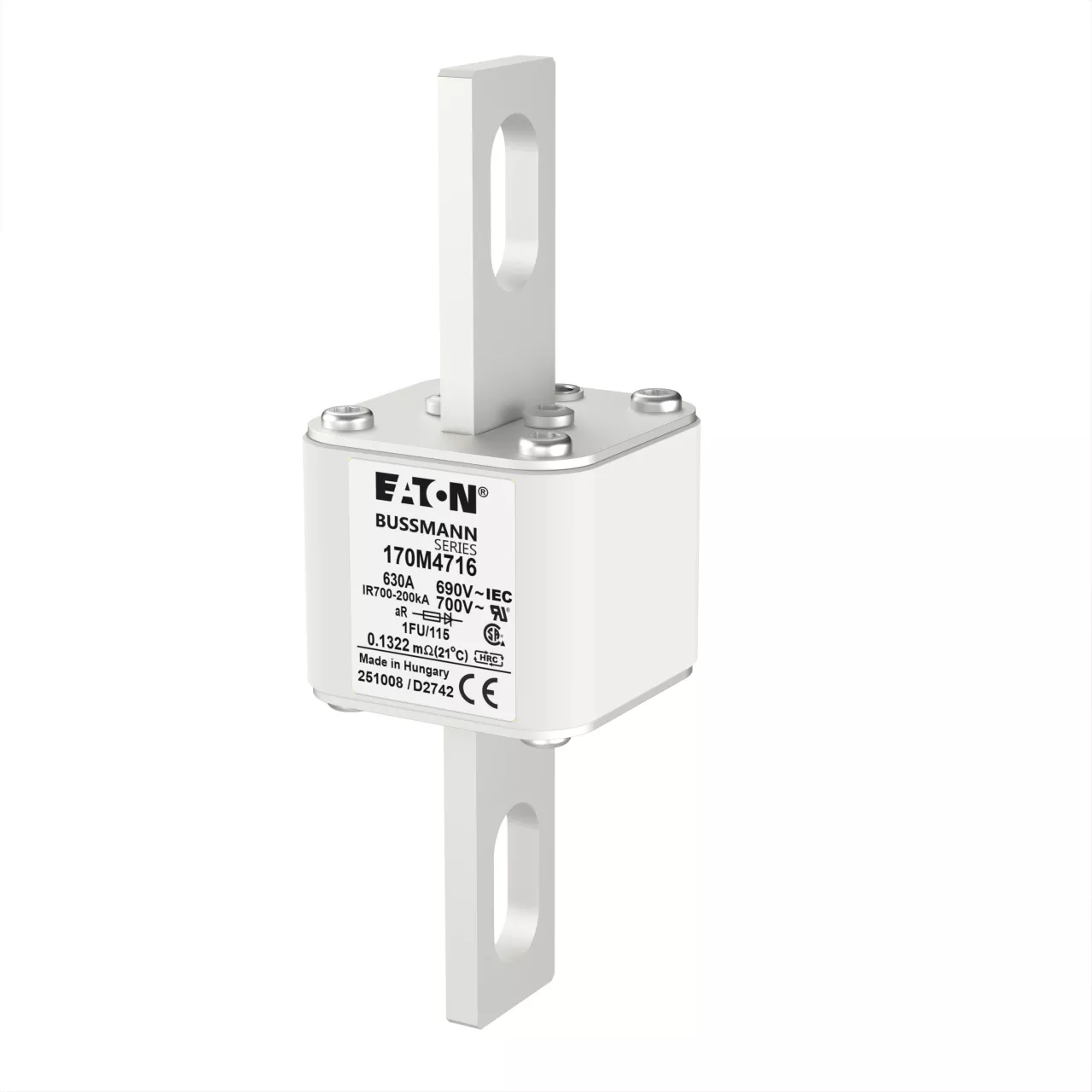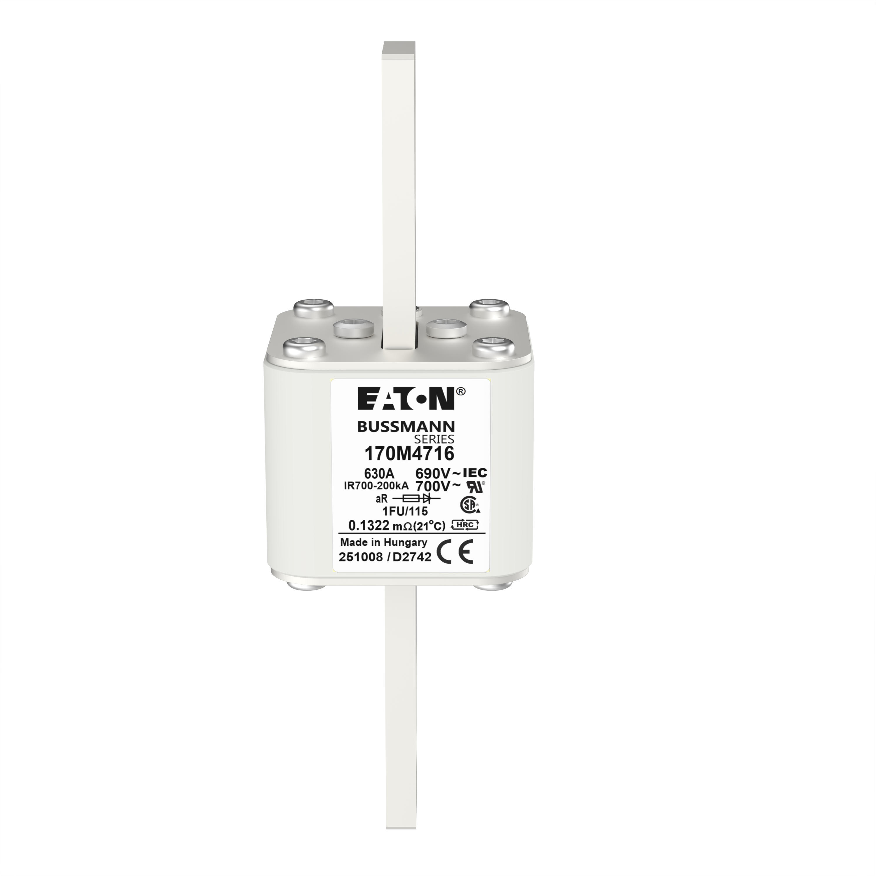 170M4716 Wkładka szybka, 630 A, AC 690 V, size 1, 53 x 69 x 136 mm, aR, IEC, UL, bez wskaźnika, 115 mm