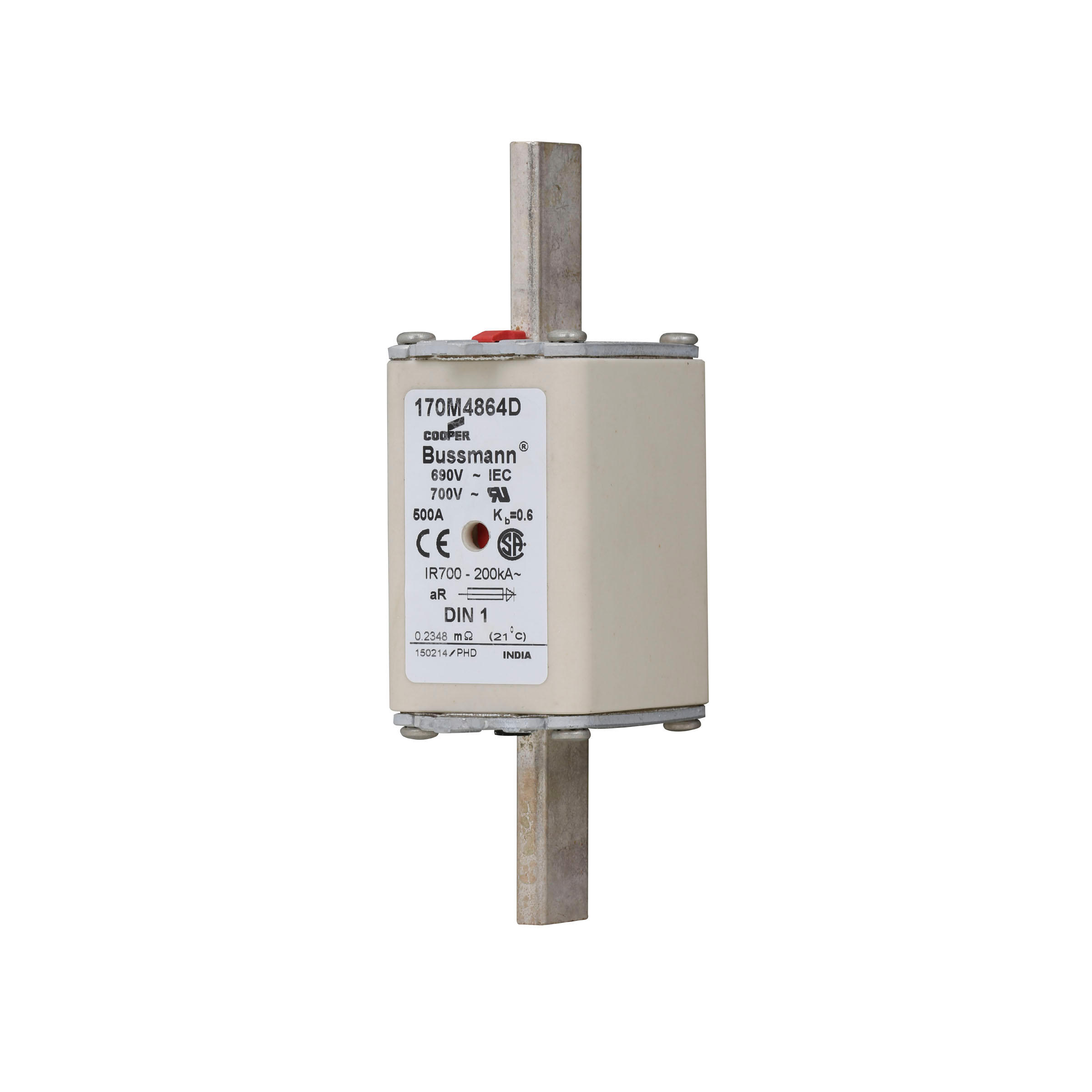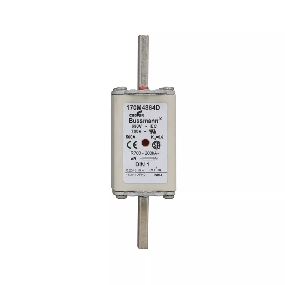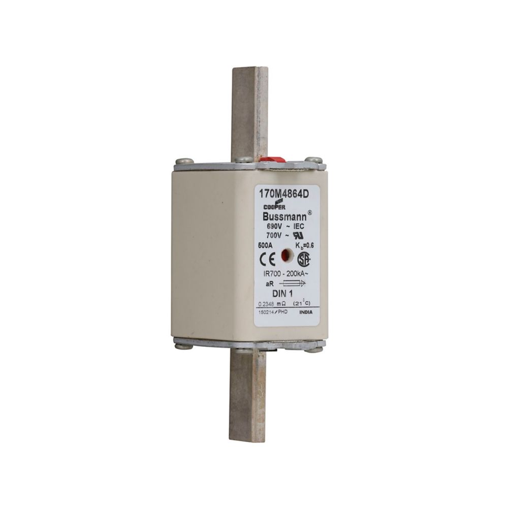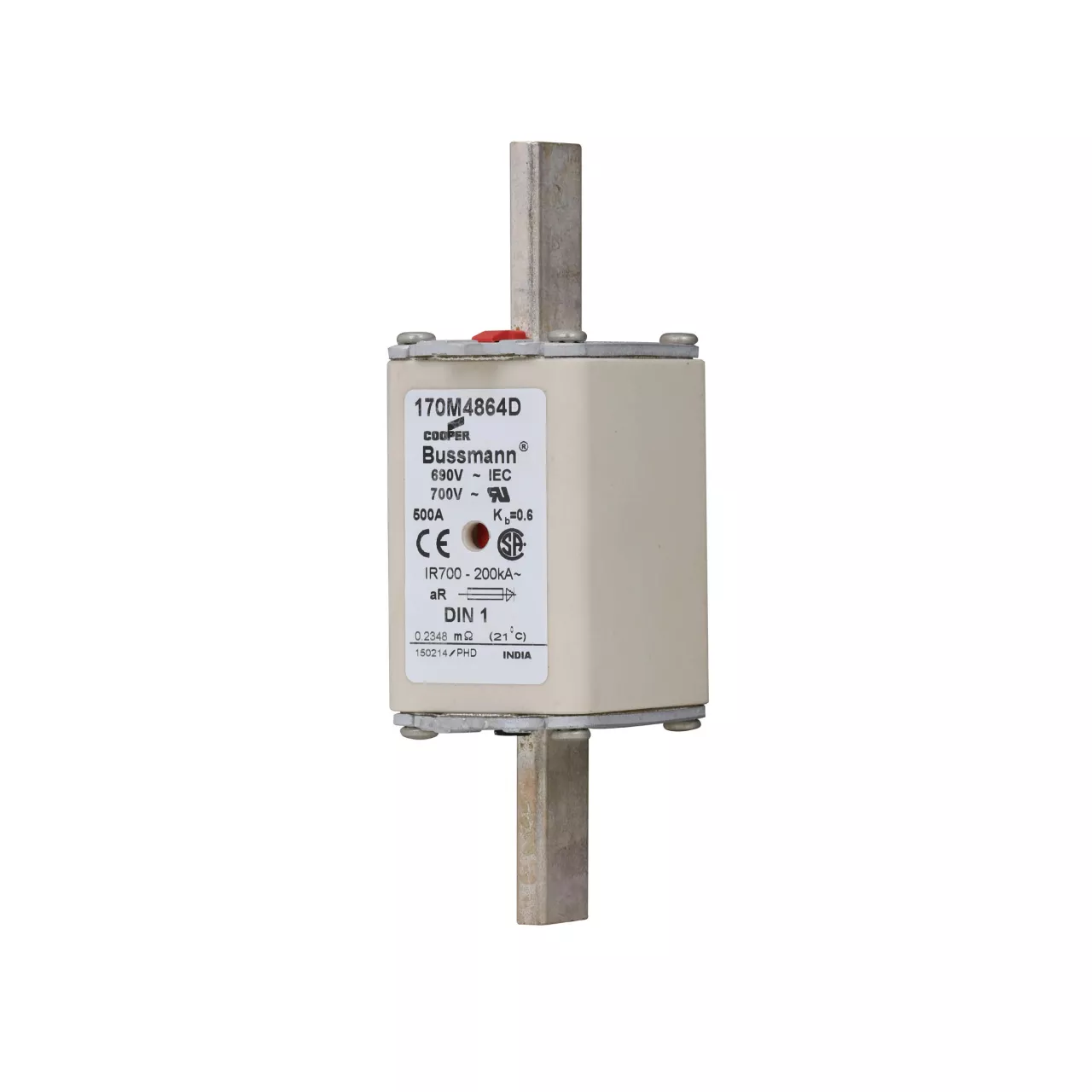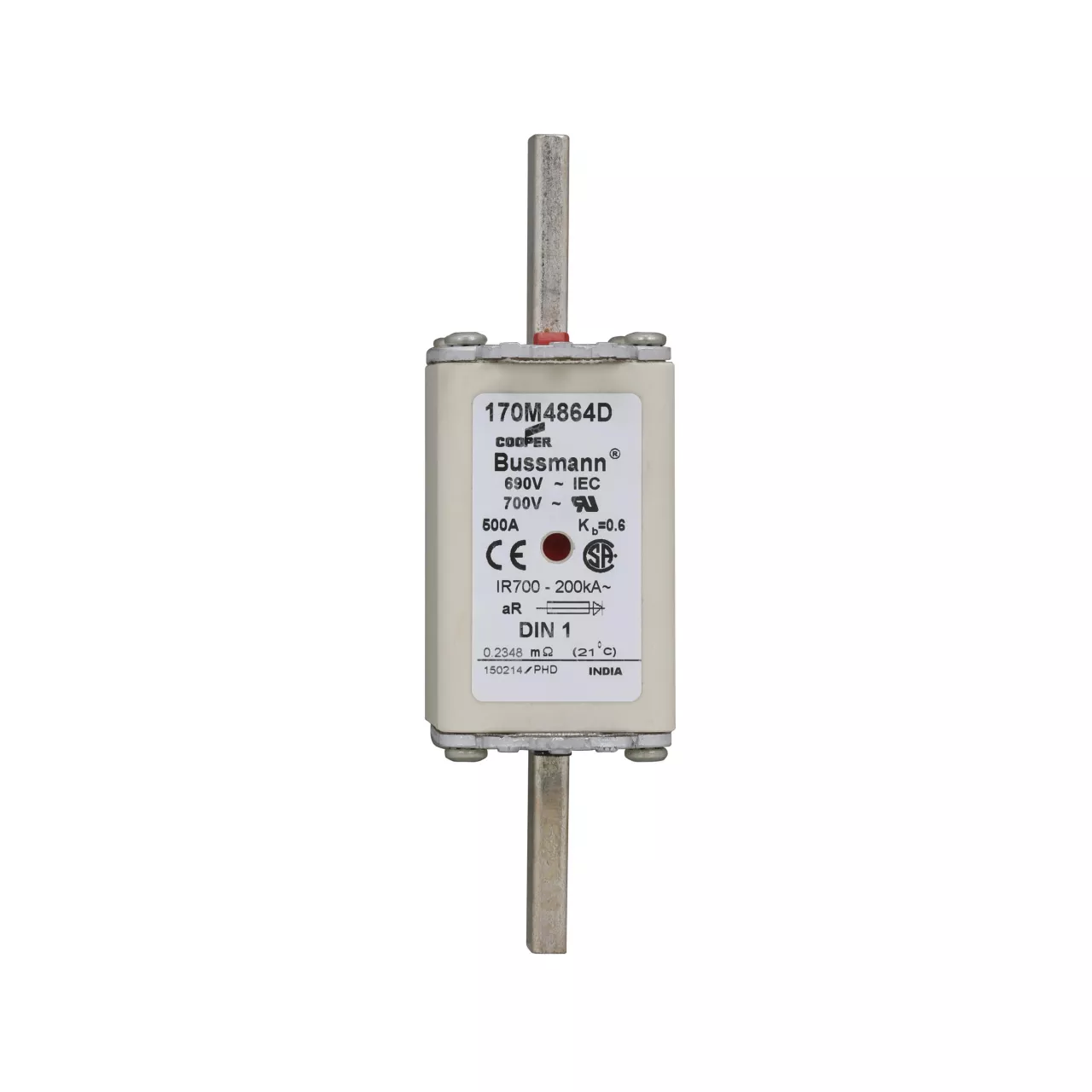 170M4864D Wkładka szybka, 500 A, AC 690 V, DIN 1, aR, DIN, IEC, podwójny wskaźnik, nieizolowane uchwyty