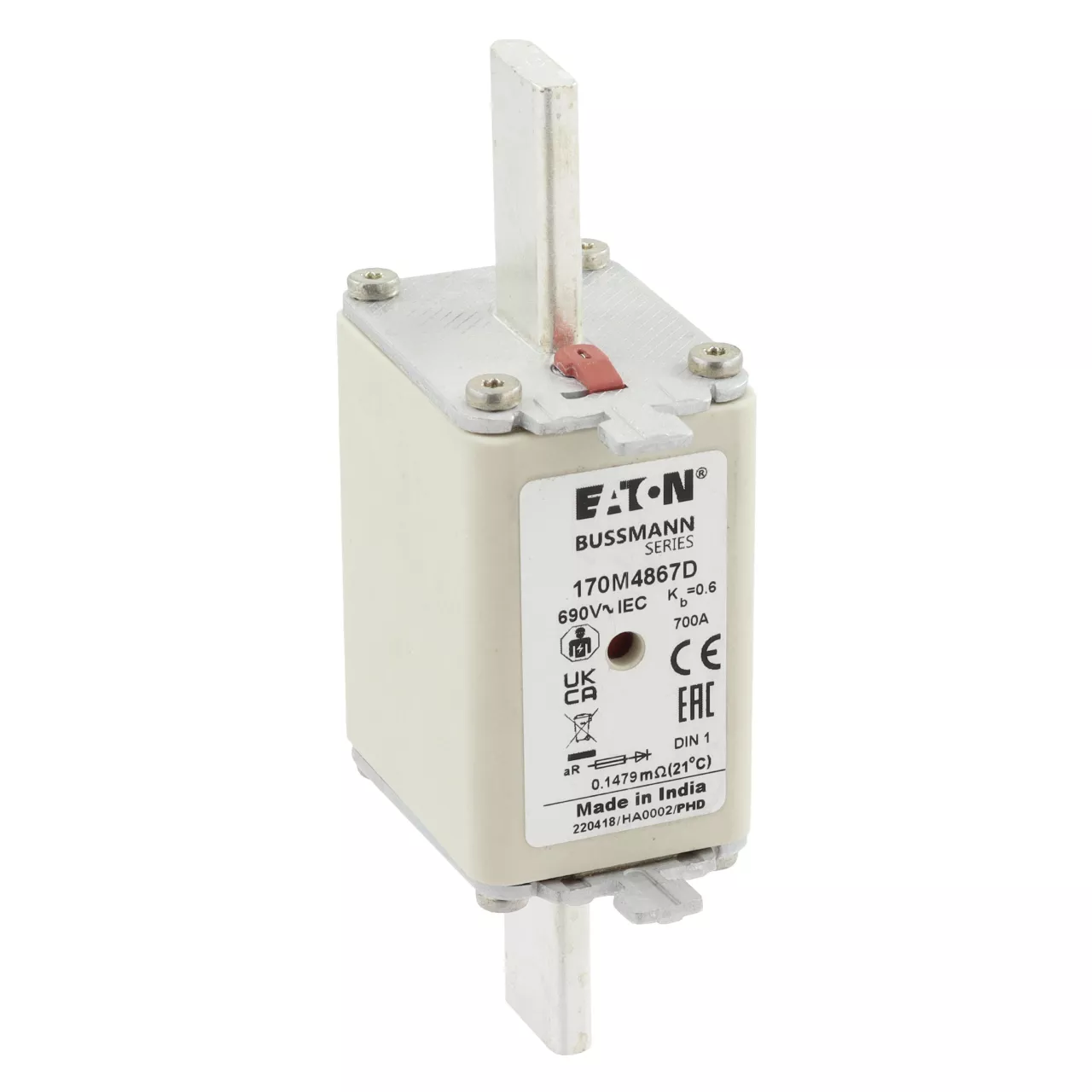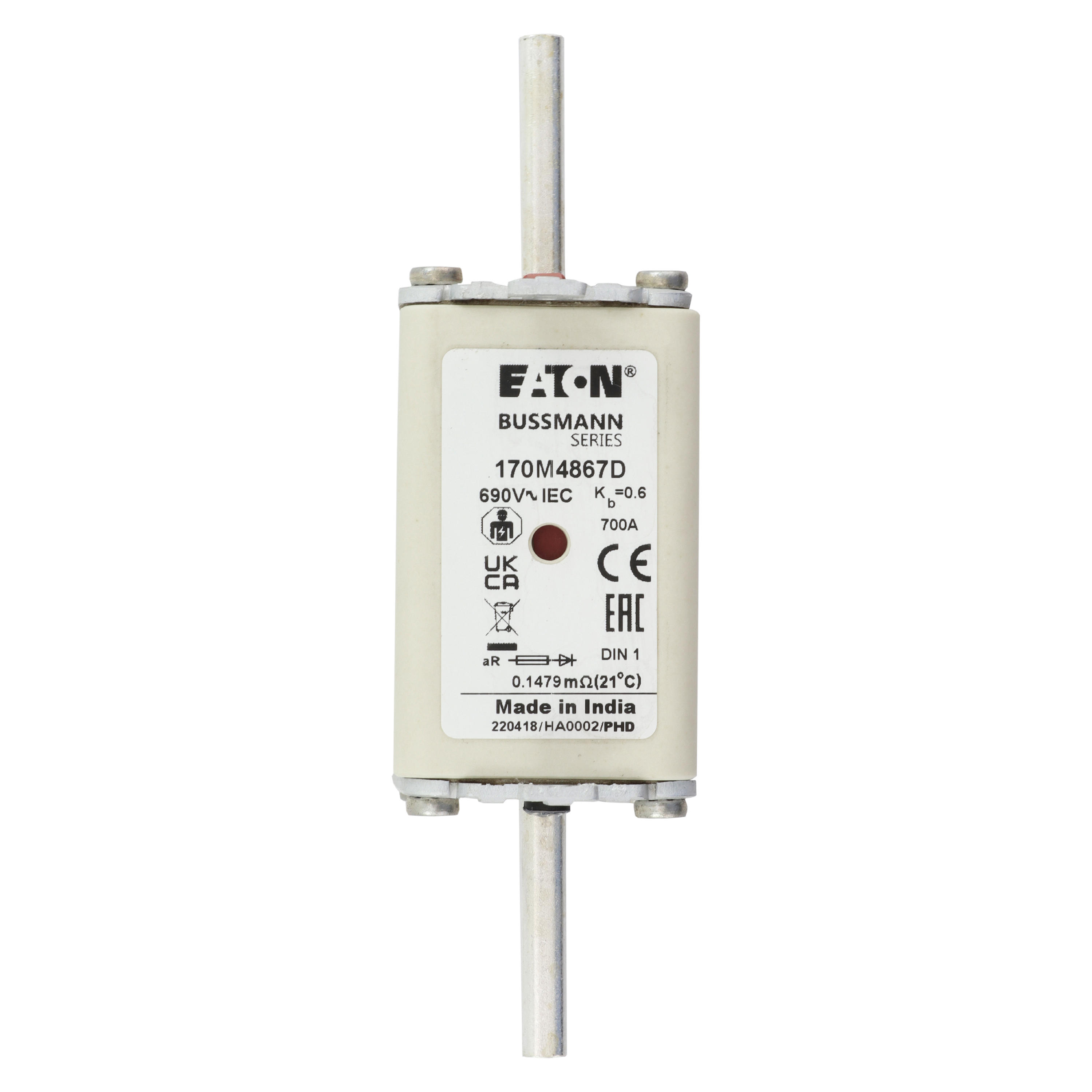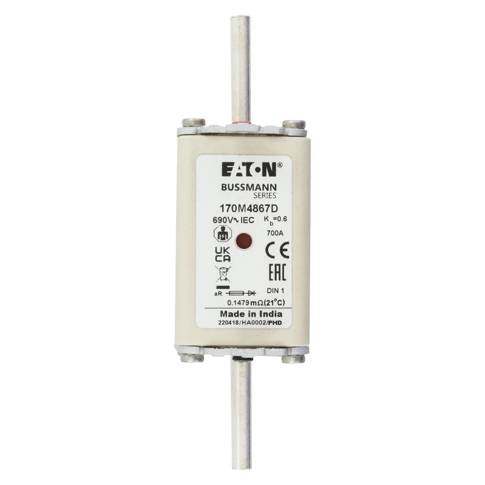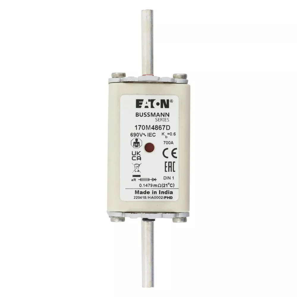 170M4867D Wkładka szybka, 700 A, AC 690 V, DIN 1, aR, DIN, IEC, podwójny wskaźnik, nieizolowane uchwyty