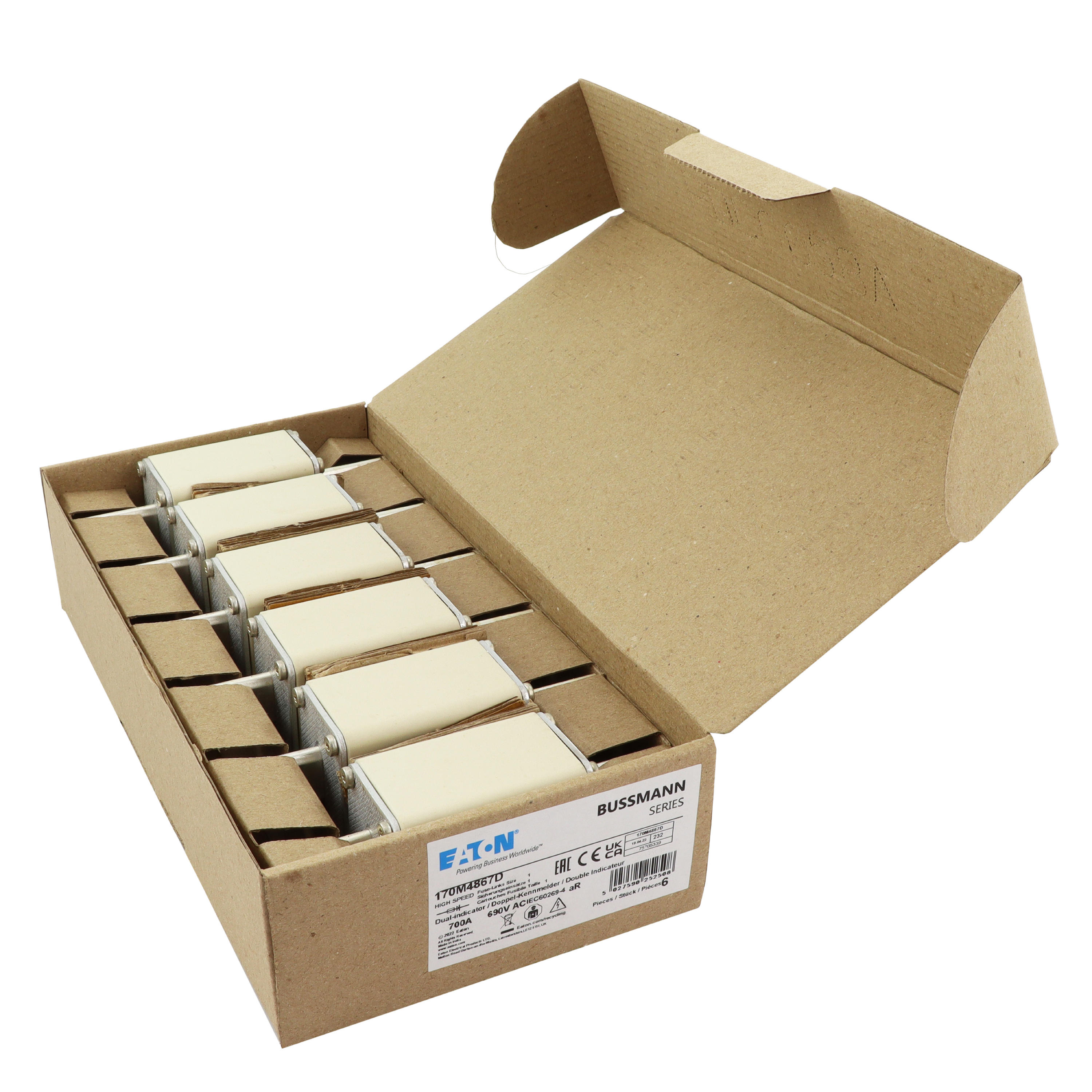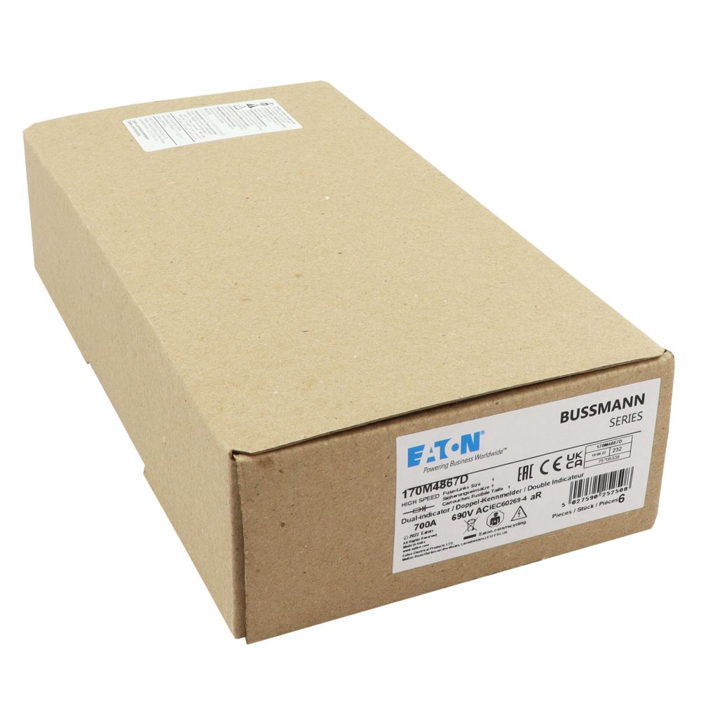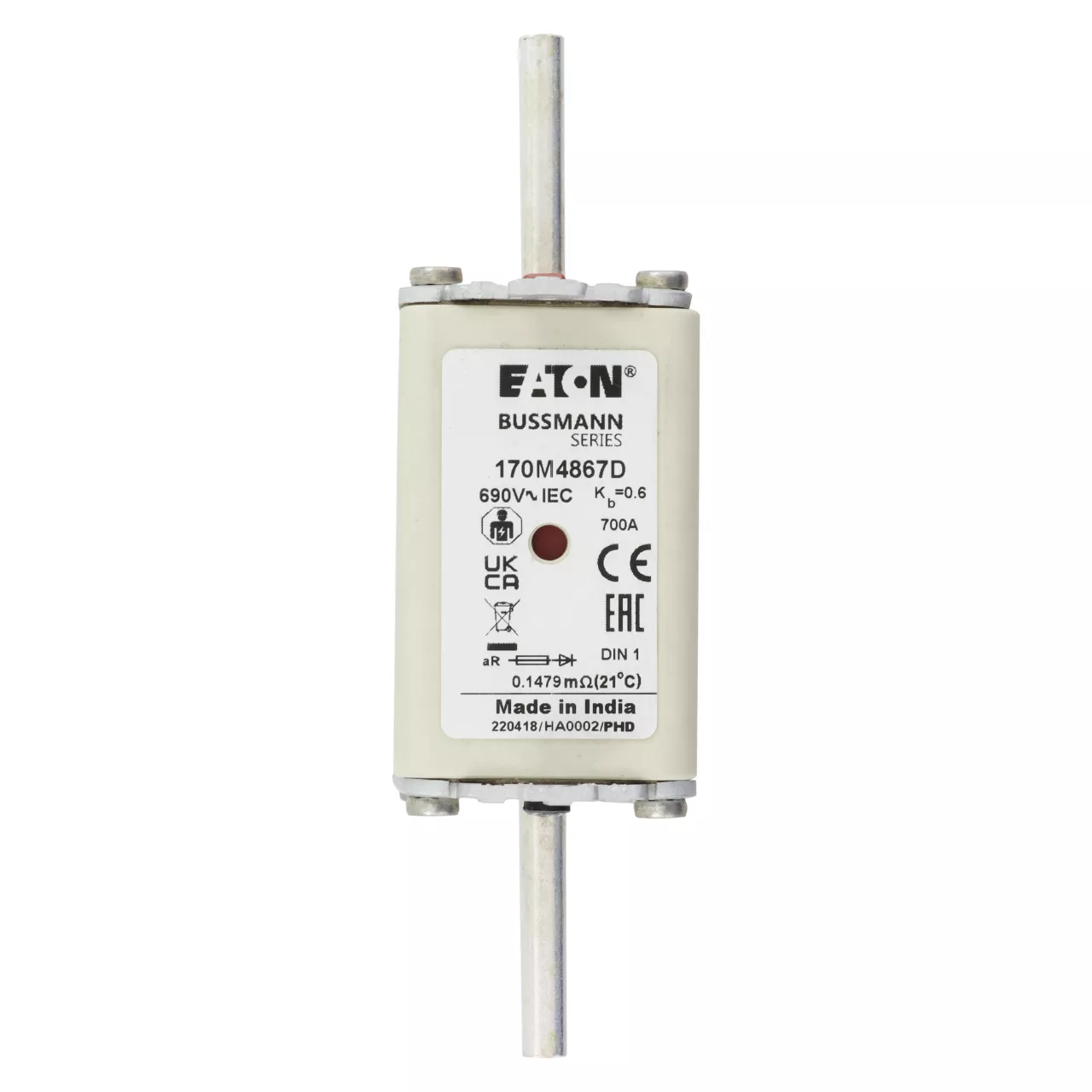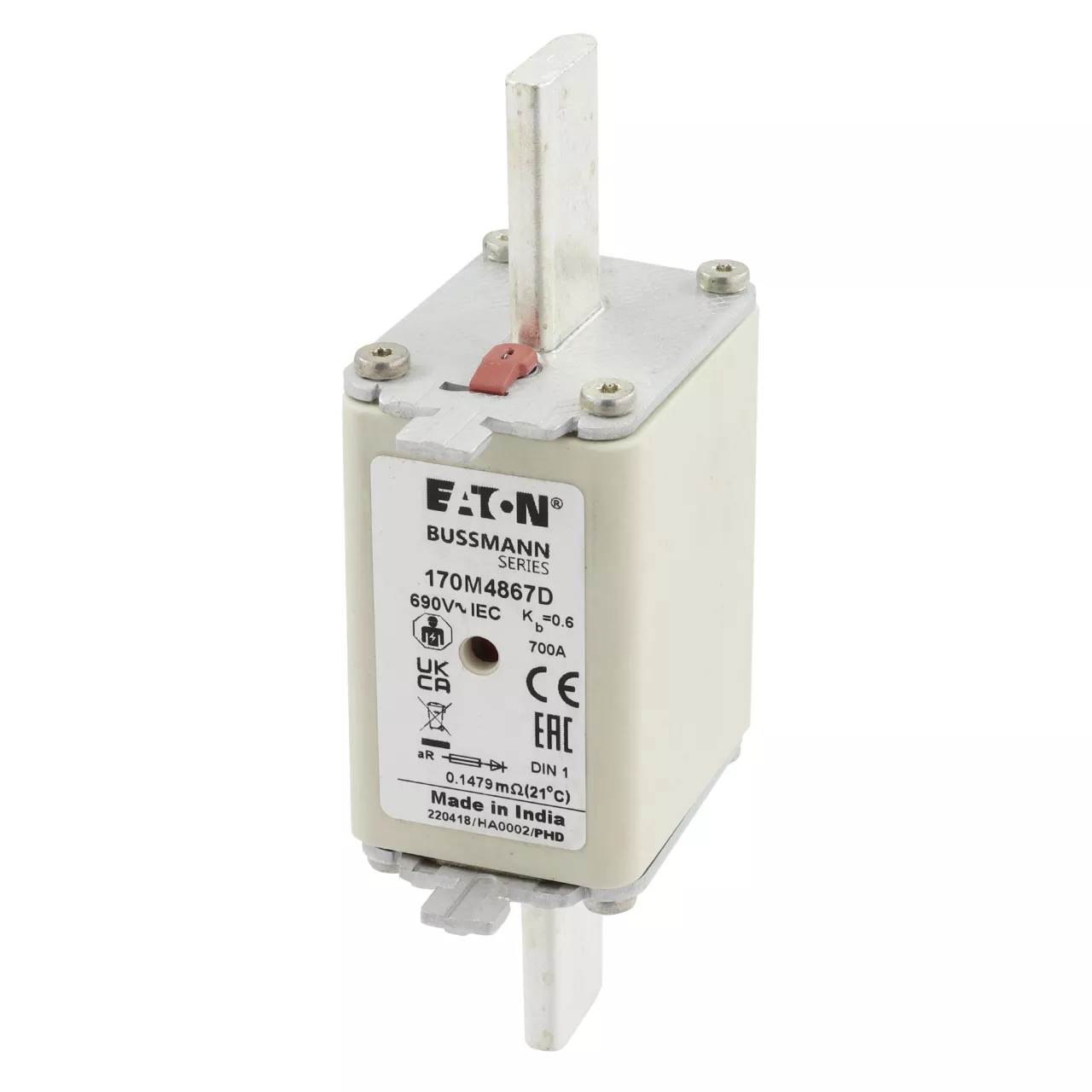 170M4867D Wkładka szybka, 700 A, AC 690 V, DIN 1, aR, DIN, IEC, podwójny wskaźnik, nieizolowane uchwyty