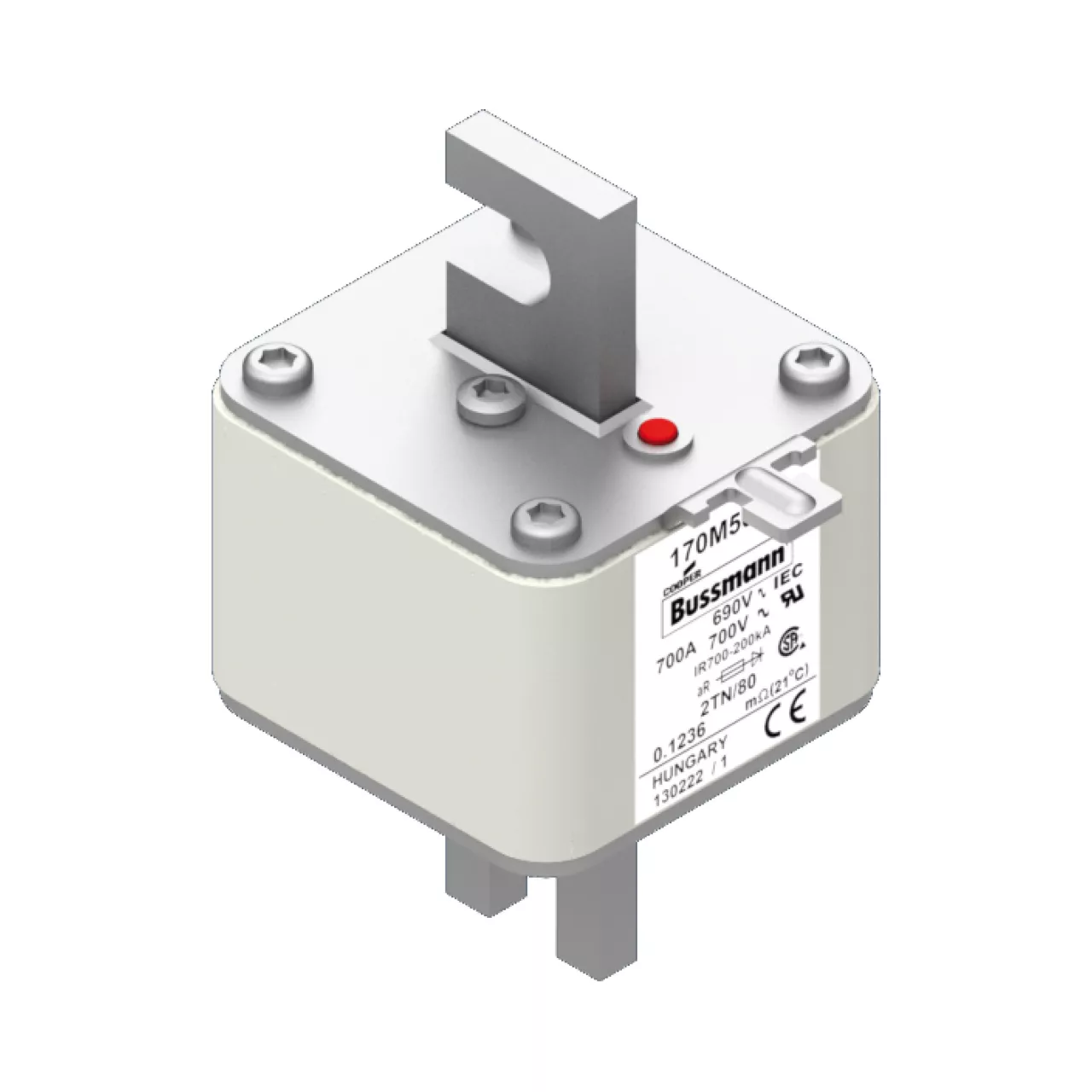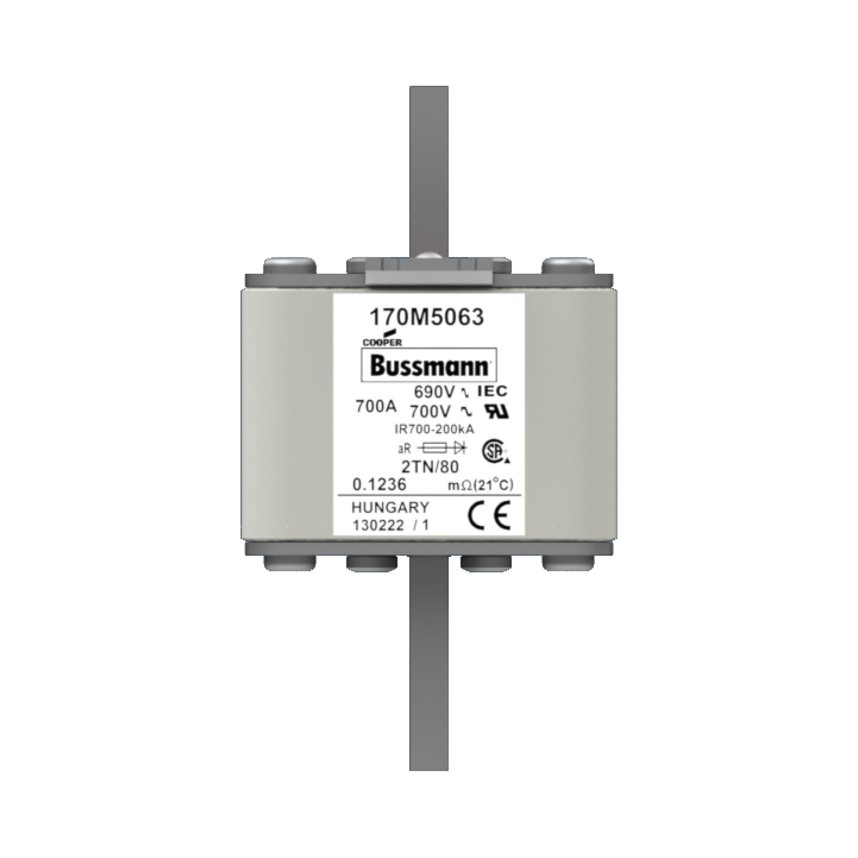 170M5063 Wkładka szybka, 700 A, AC 690 V, DIN 2, 61 x 75 x 108 mm, aR, DIN, IEC, pojedynczy wskaźnik