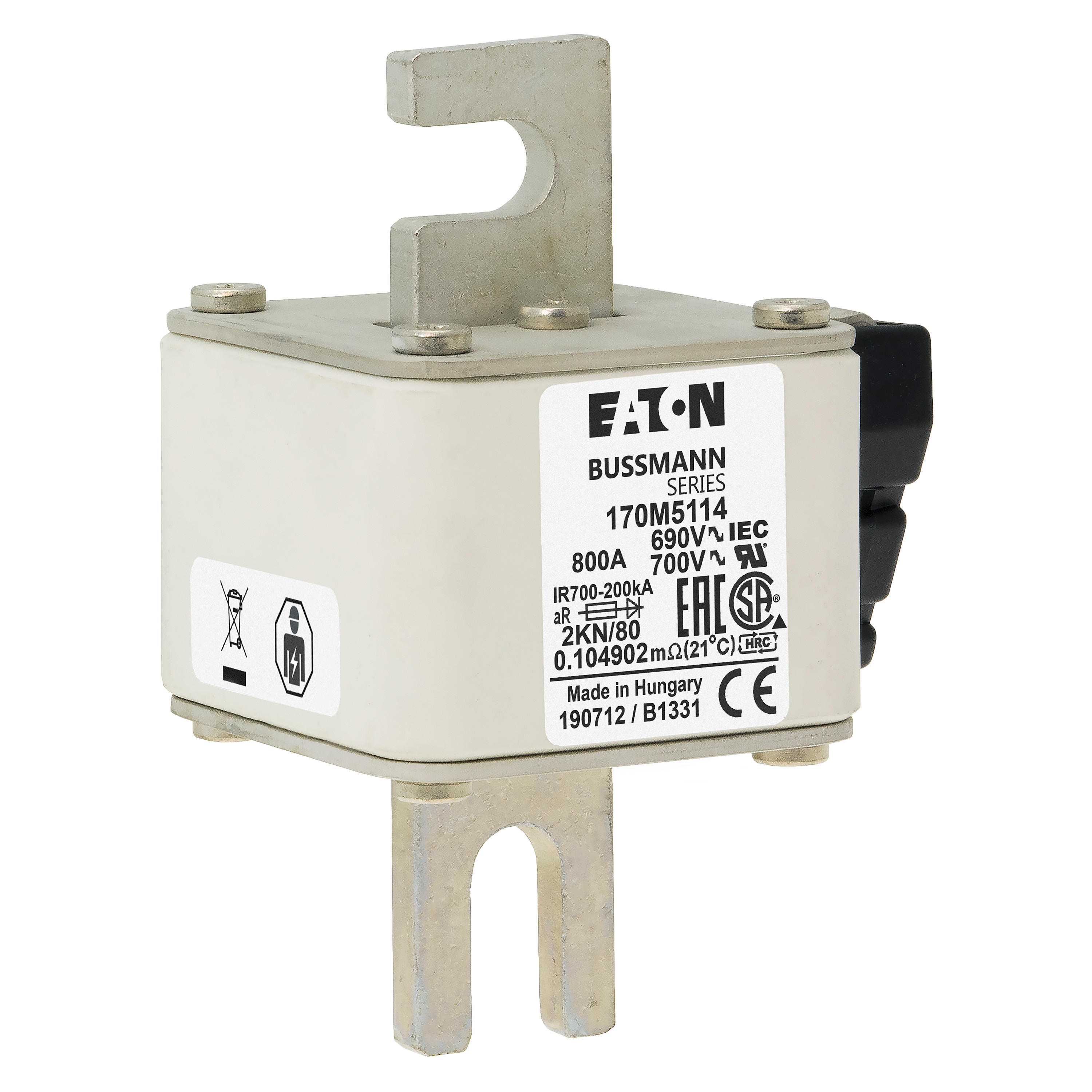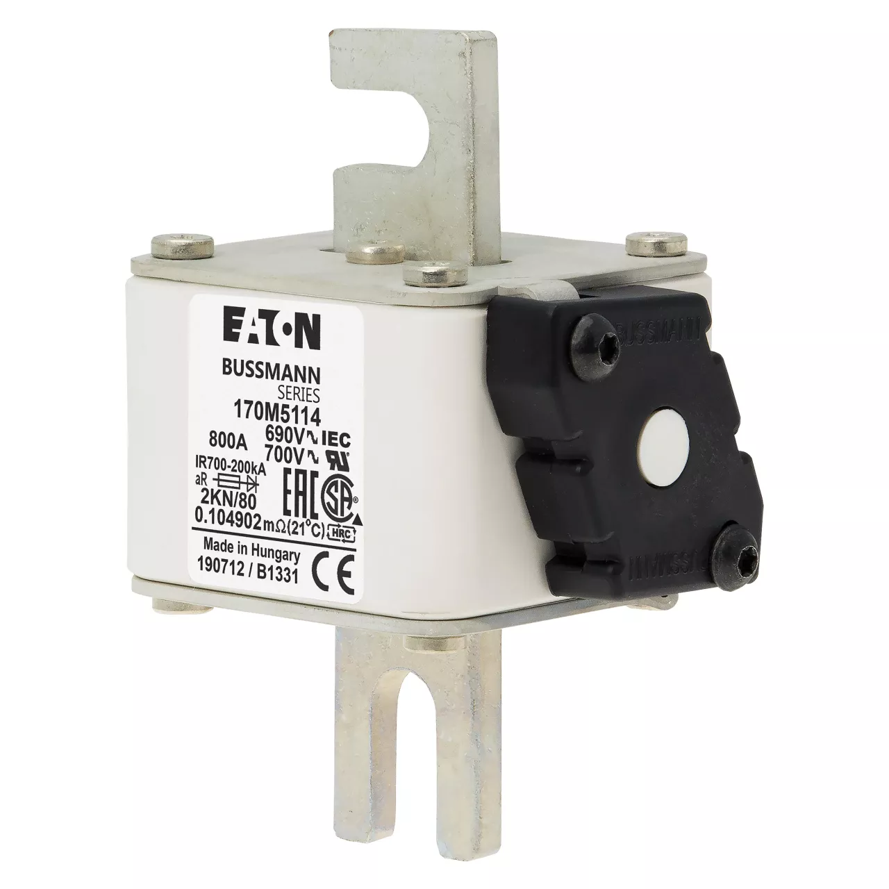 170M5114 Wkładka szybka, 800 A, AC 690 V, DIN 2, 61 x 77 x 108 mm, aR, DIN, IEC, pojedynczy wskaźnik