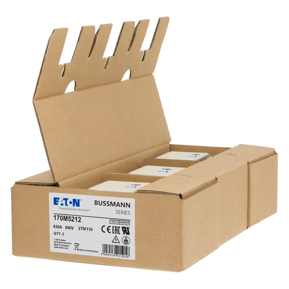 170M5212 Wkładka szybka, 630 A, AC 690 V, DIN 2, 61 x 75 x 138 mm, aR, DIN, IEC, pojedynczy wskaźnik