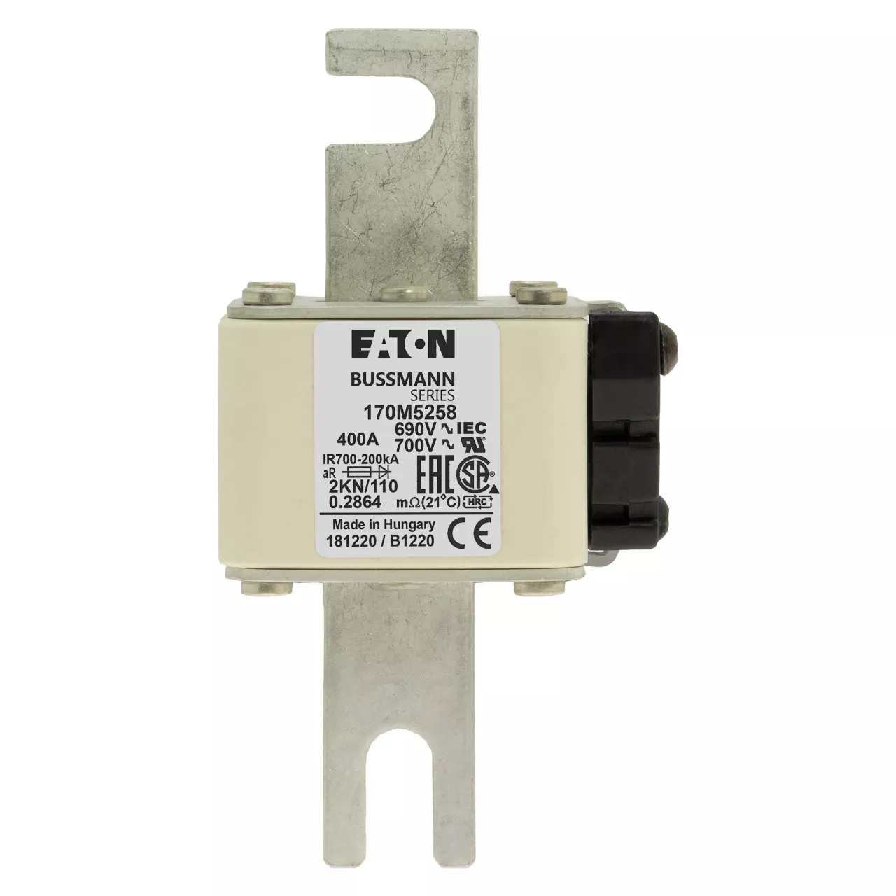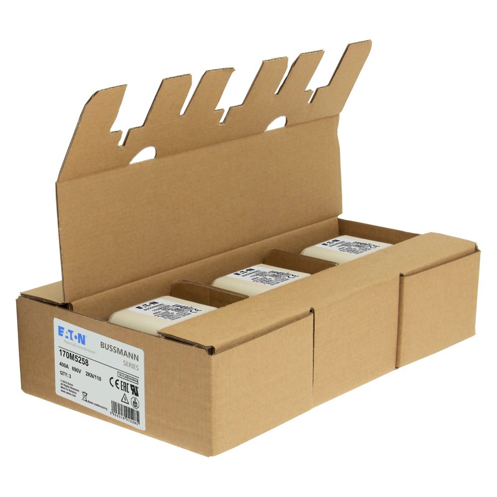 170M5258 Wkładka szybka, 400 A, AC 690 V, DIN 2, 61 x 77 x 138 mm, aR, DIN, IEC, pojedynczy wskaźnik