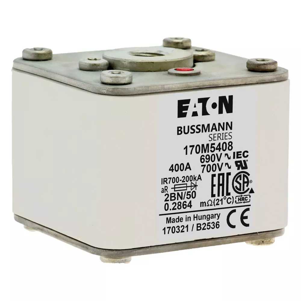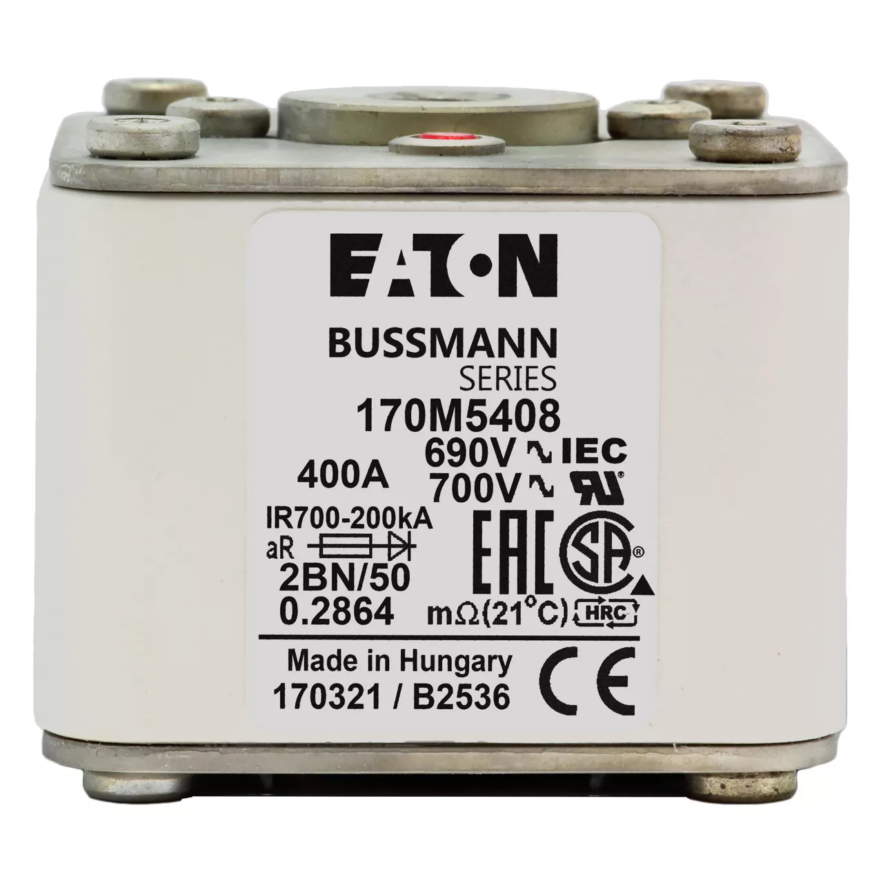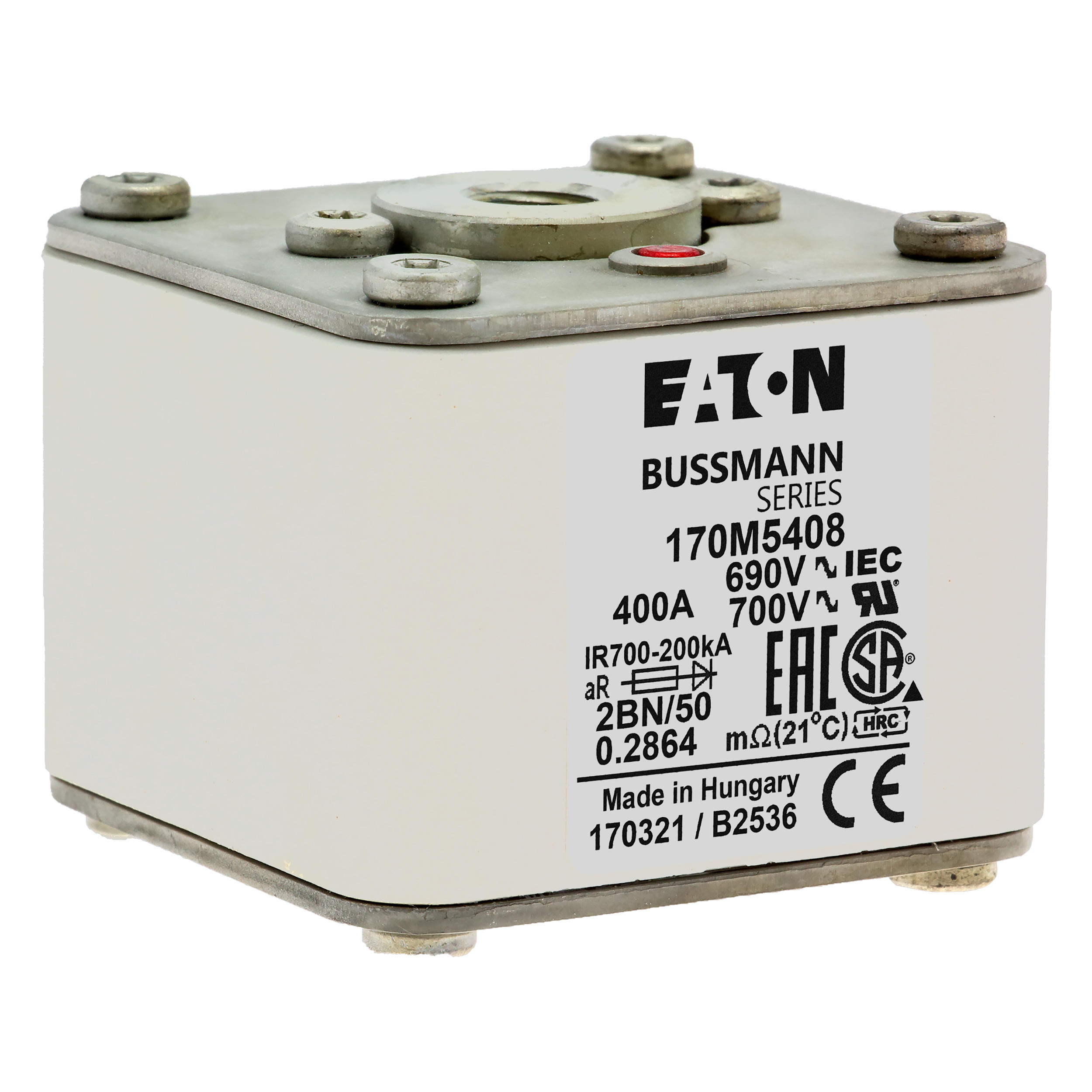 170M5408 Wkładka szybka, 400 A, AC 690 V, size 2, 61 x 77 x 51 mm, aR, IEC, UL, wskaźnik, flush end, M10