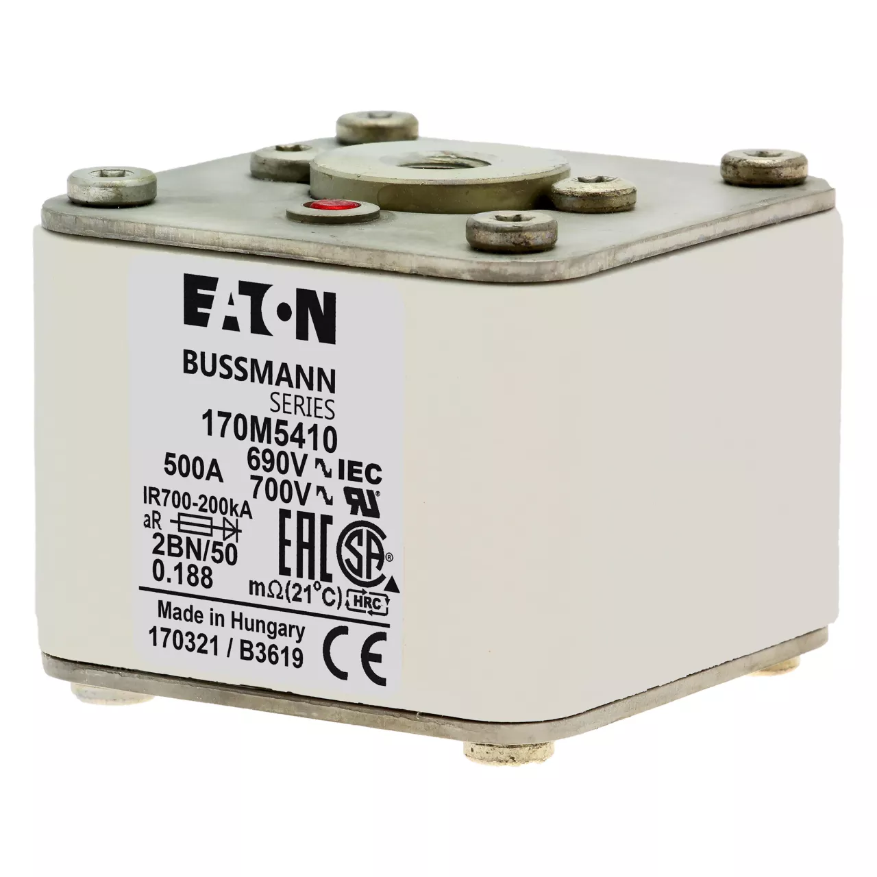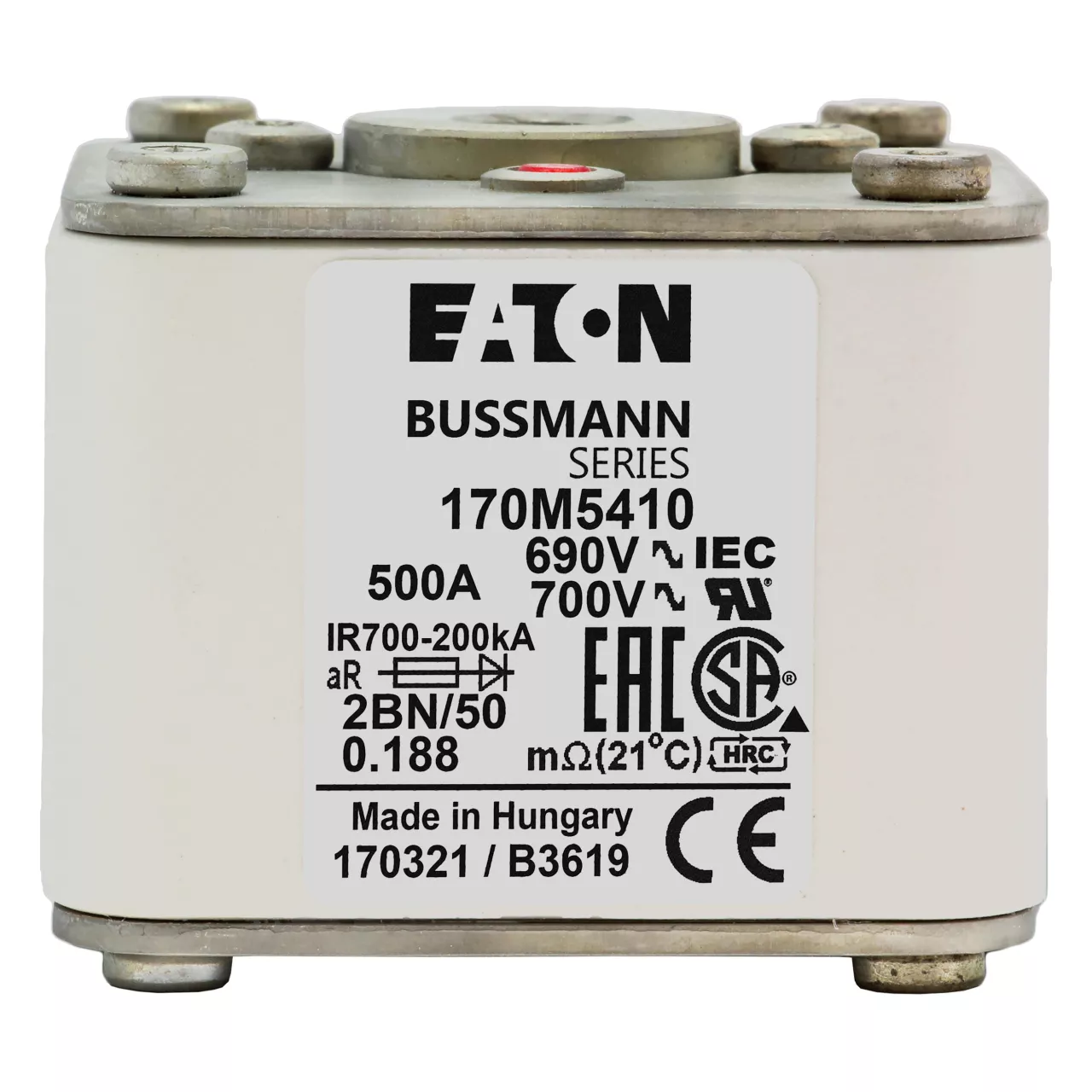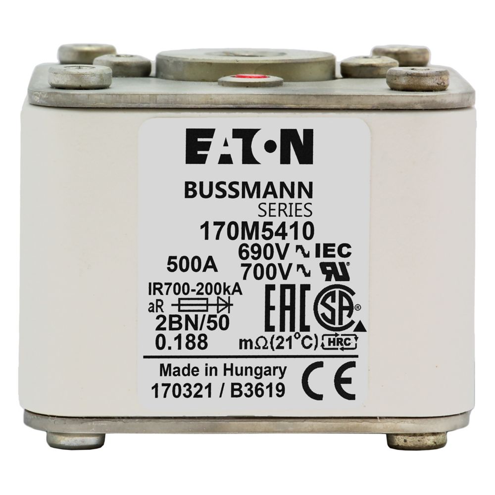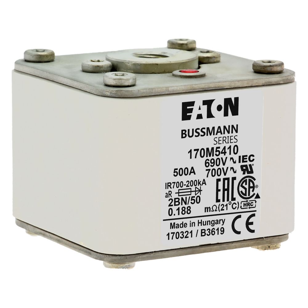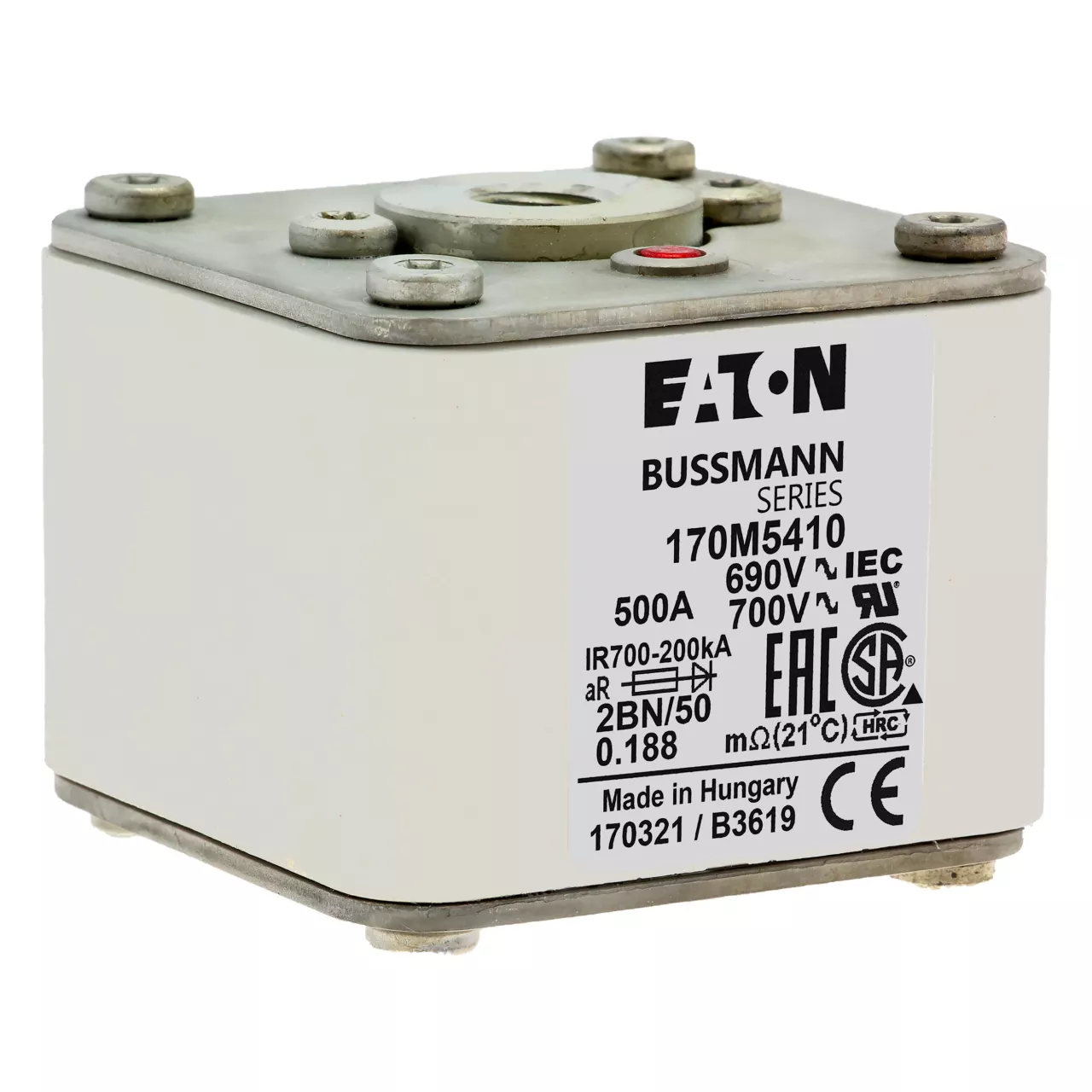 170M5410 Wkładka szybka, 500 A, AC 690 V, size 2, 61 x 77 x 51 mm, aR, IEC, UL, wskaźnik, flush end, M10