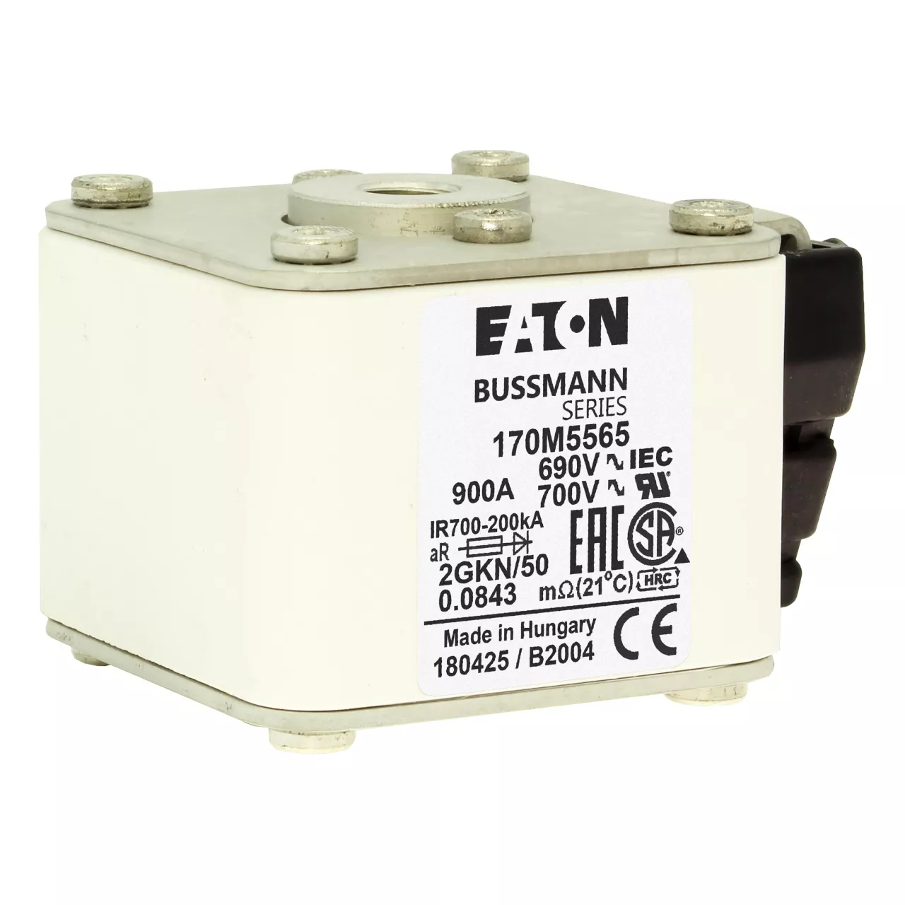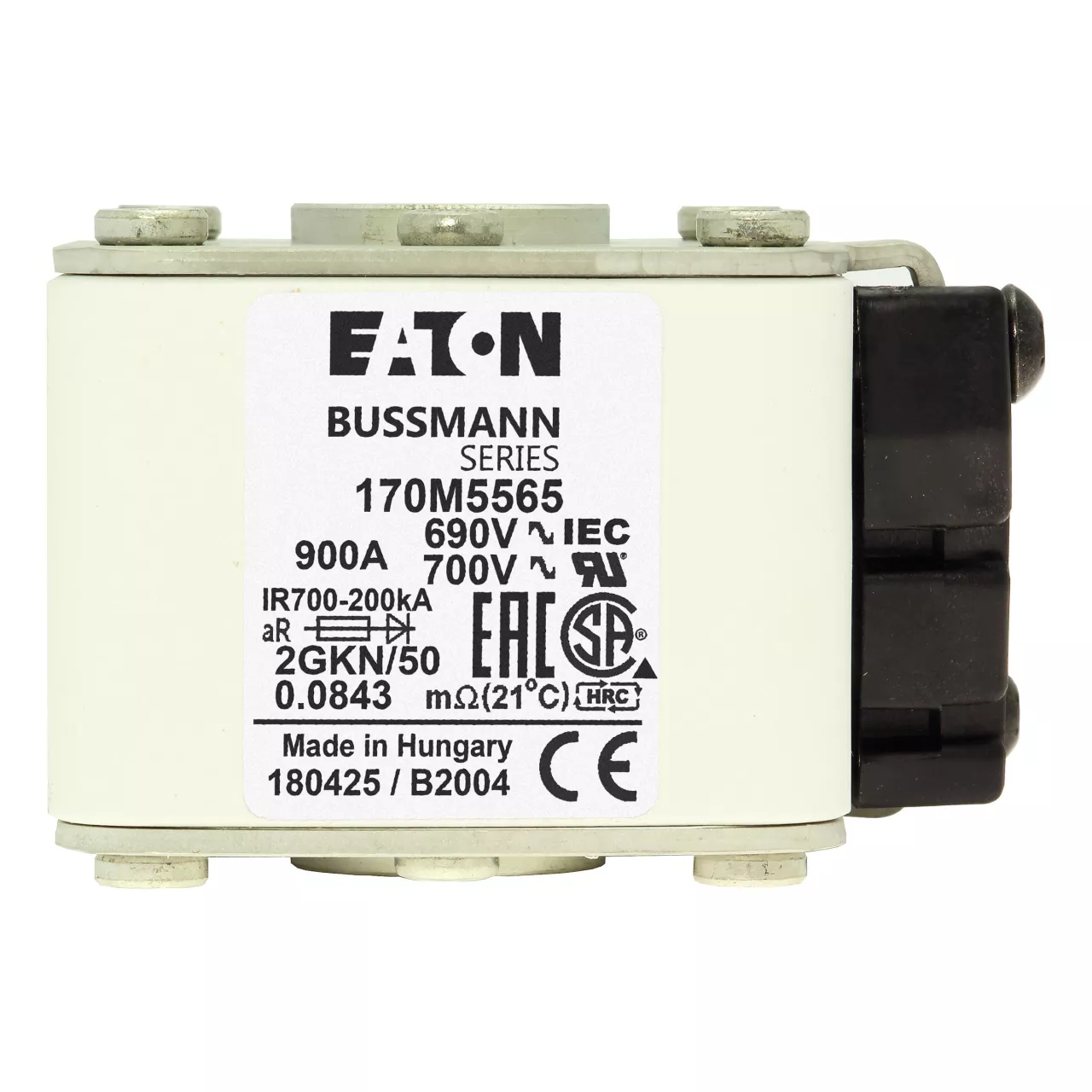 170M5565 Wkładka szybka, 900 A, AC 690 V, size 2, 61 x 77 x 51 mm, aR, IEC, UL, wskaźnik K, flush end, 16 UNC