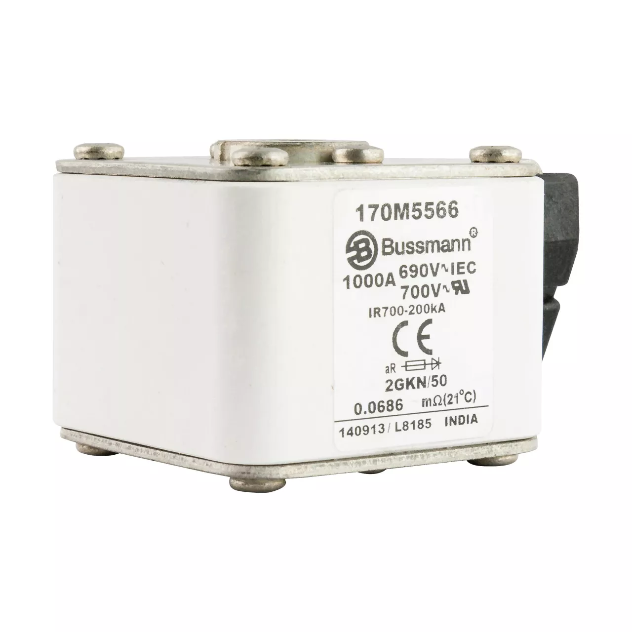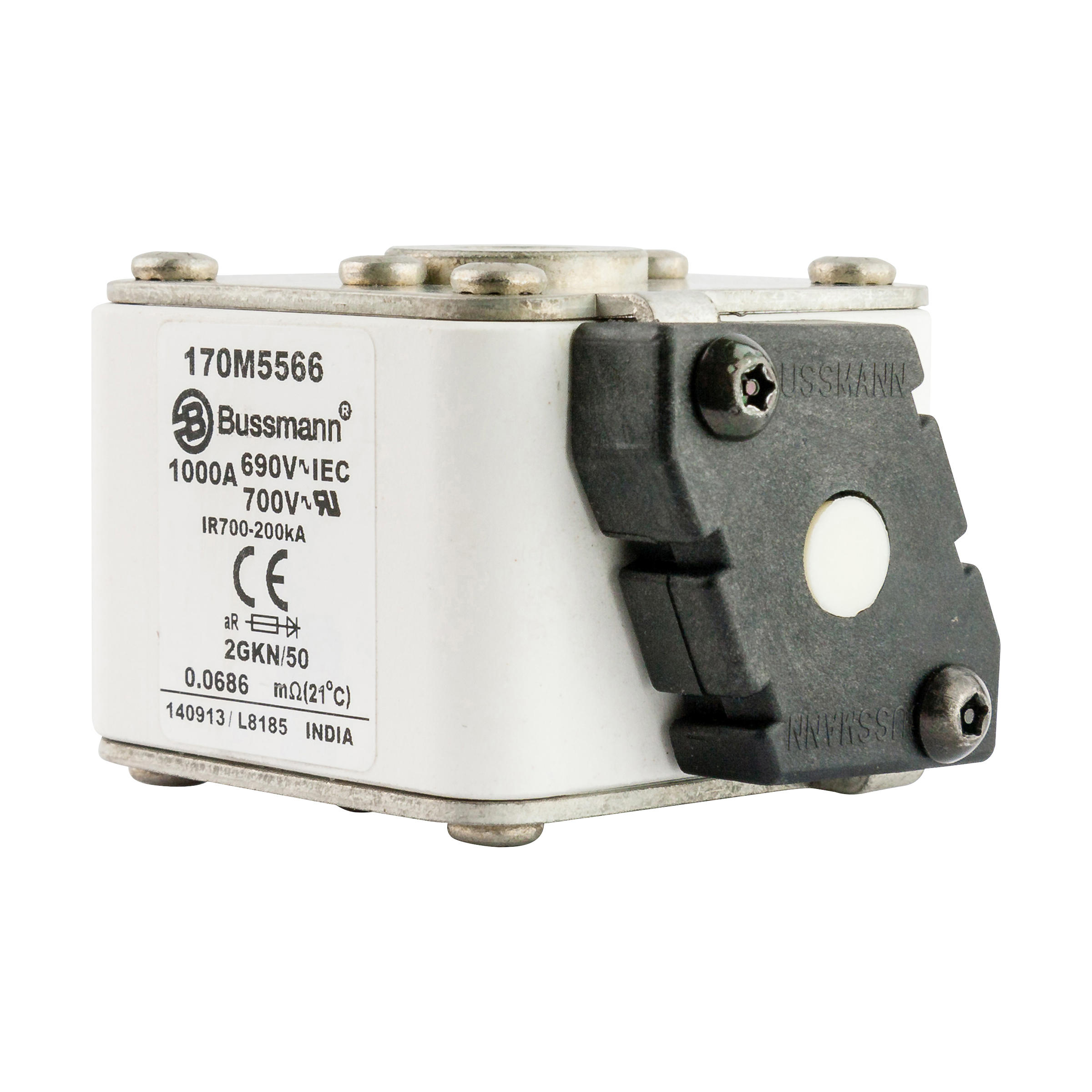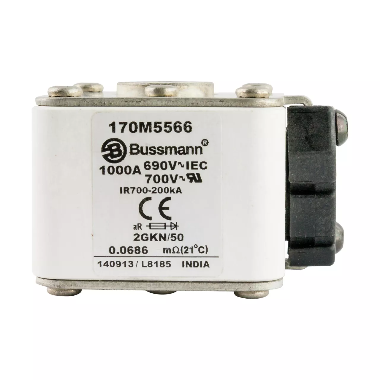 170M5566 Wkładka szybka, 1000 A, AC 690 V, size 2, 61 x 77 x 51 mm, aR, IEC, UL, wskaźnik K, flush end, 16 UNC