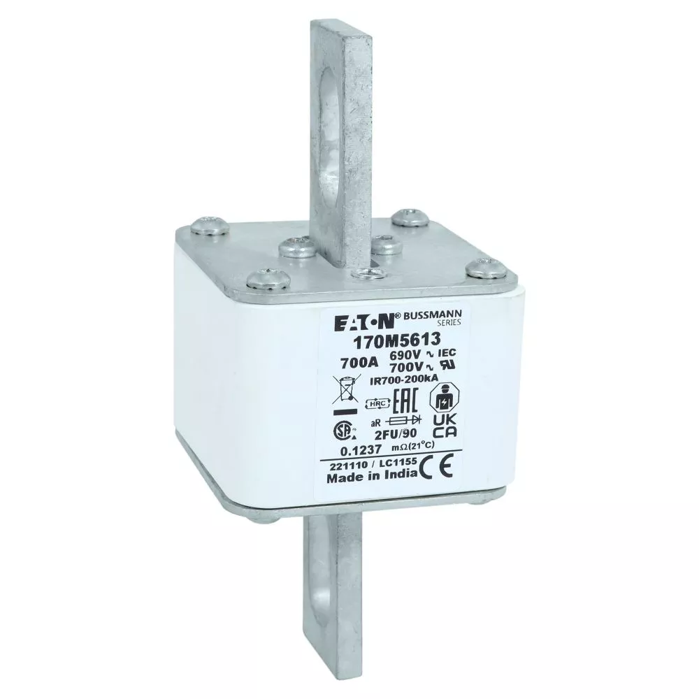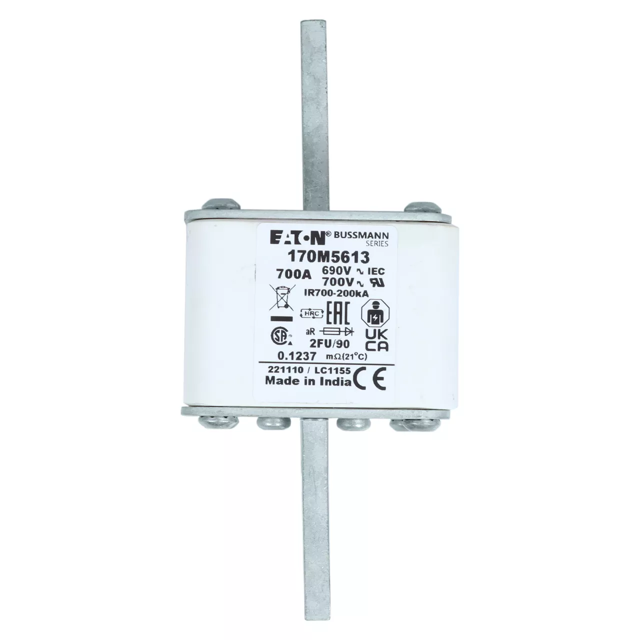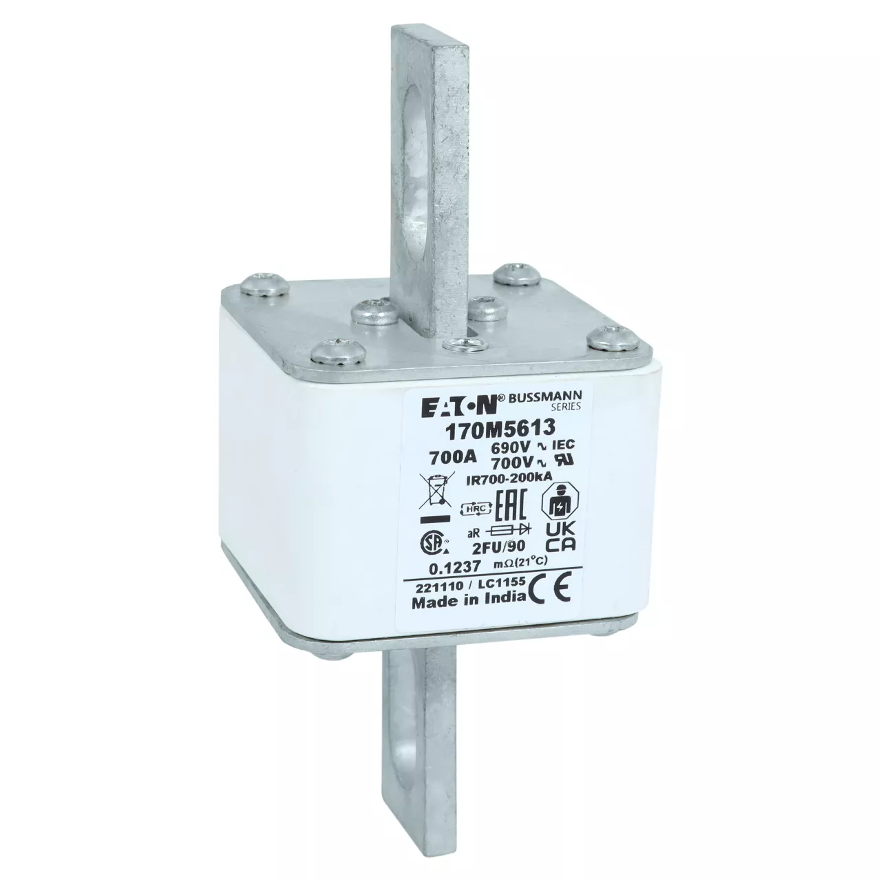 170M5613 Wkładka szybka, 700 A, AC 690 V, rozmiar 2, 61 x 77 x 135 mm, aR, IEC, UL, bez wskaźnika, rozstaw 90 mm