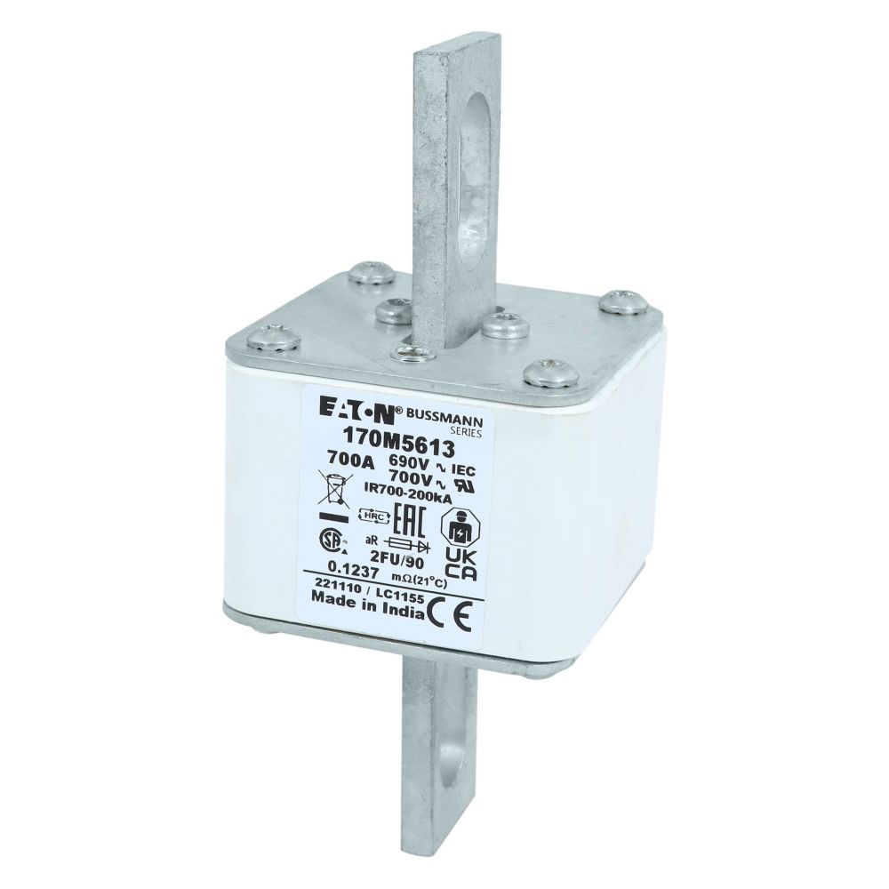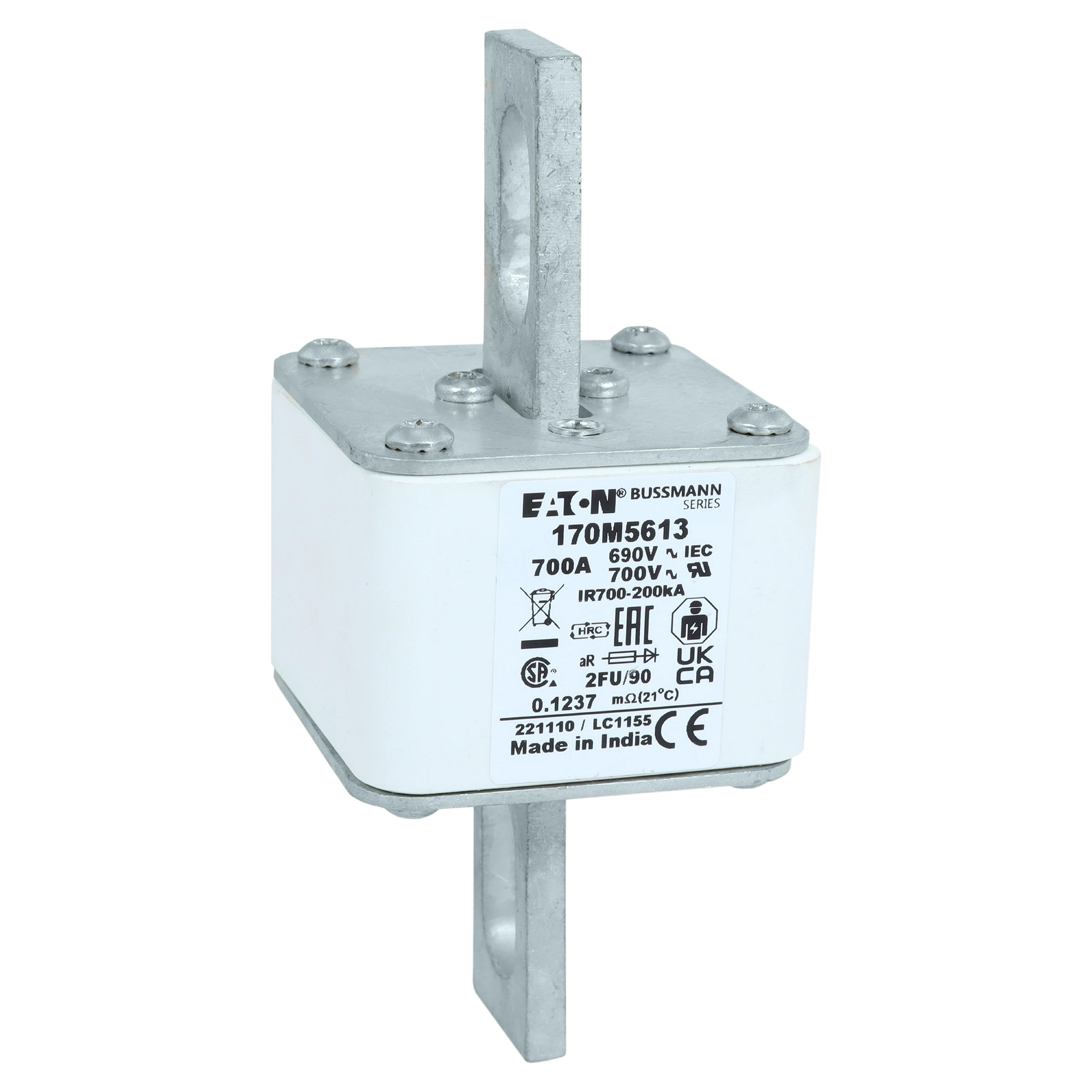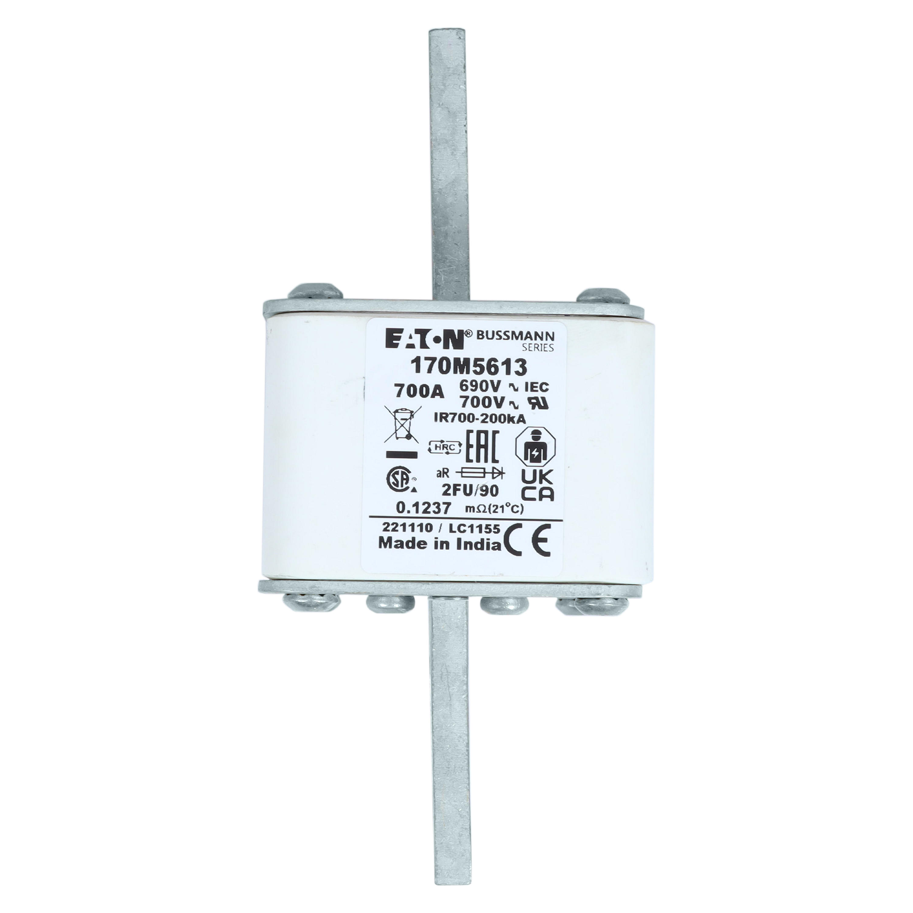 170M5613 Wkładka szybka, 700 A, AC 690 V, rozmiar 2, 61 x 77 x 135 mm, aR, IEC, UL, bez wskaźnika, rozstaw 90 mm