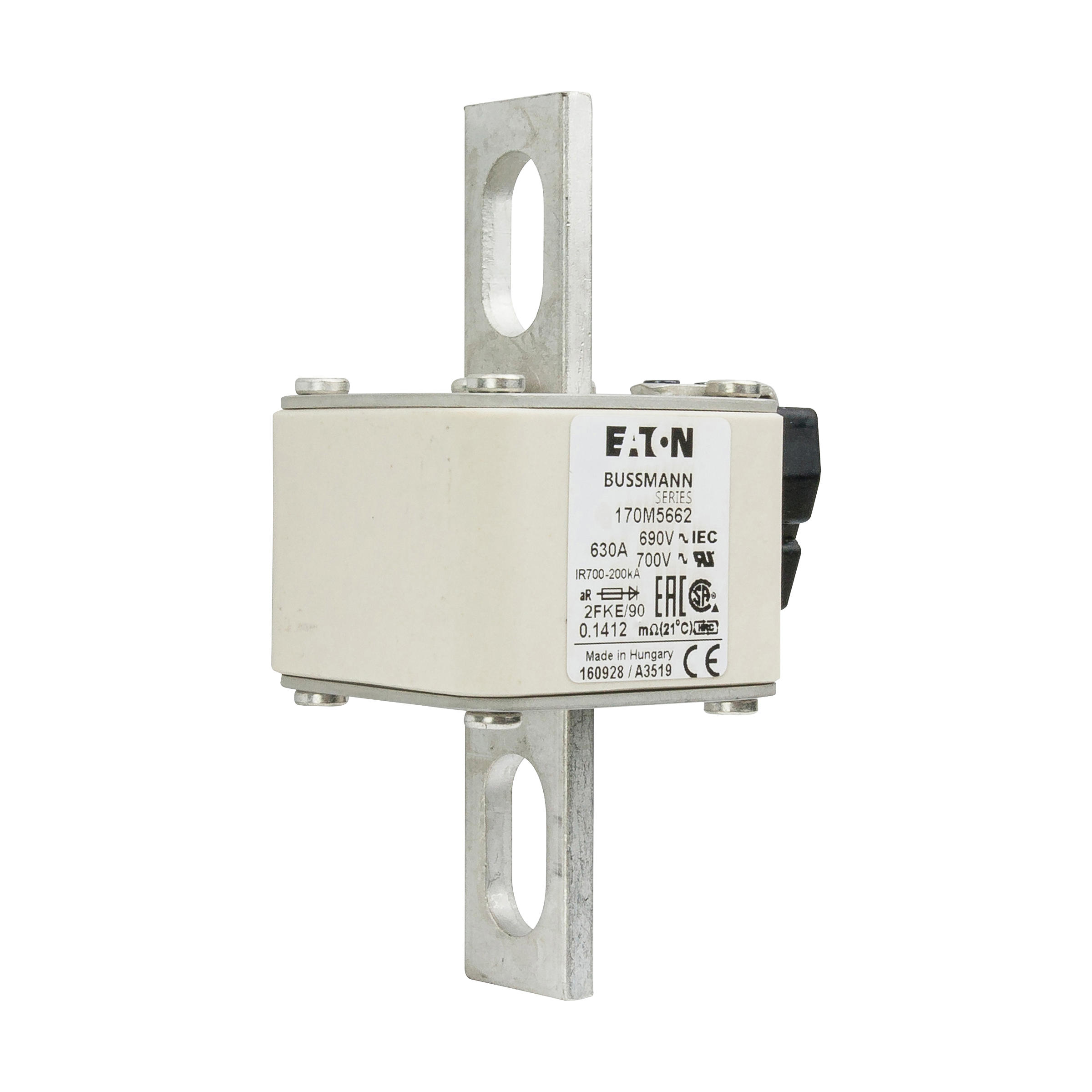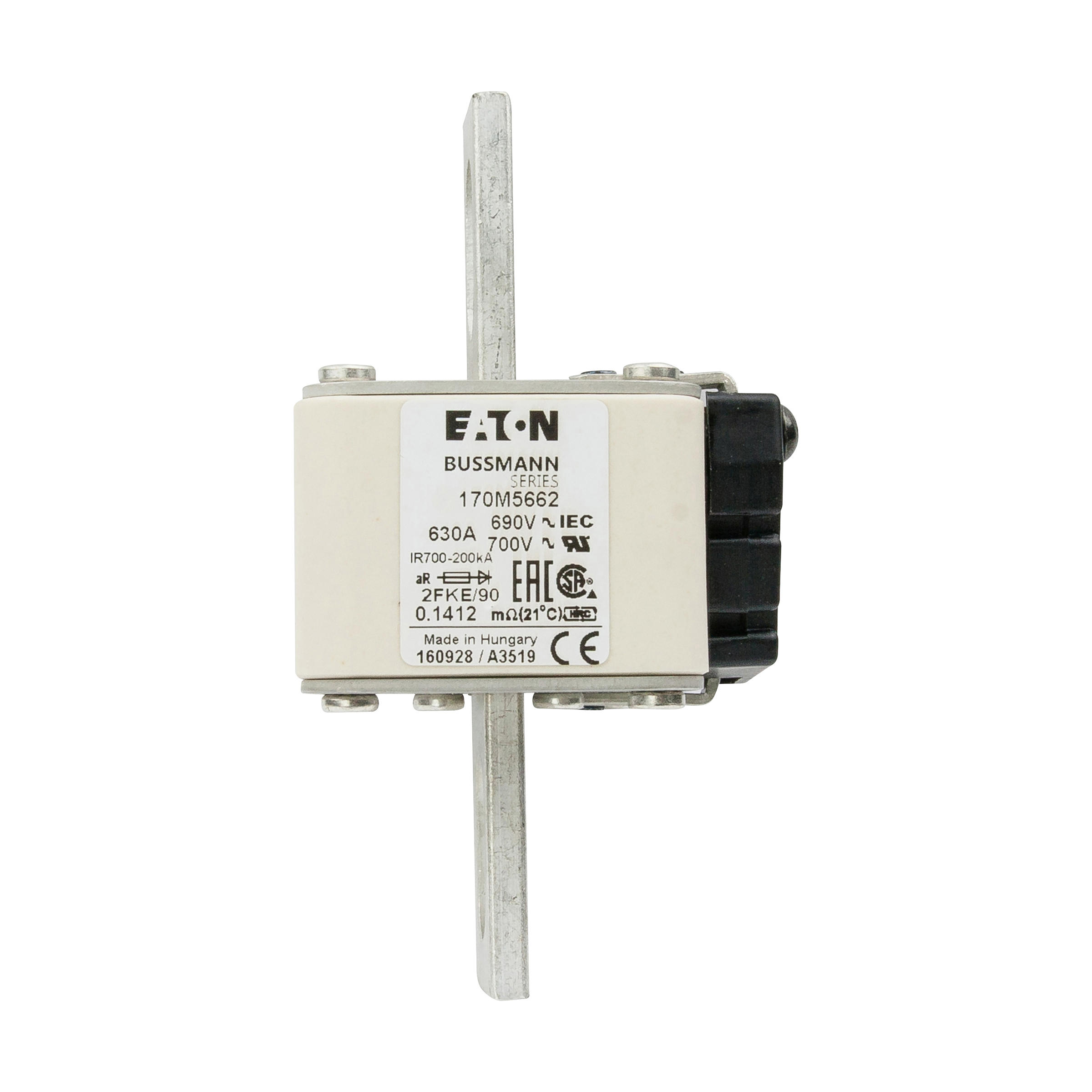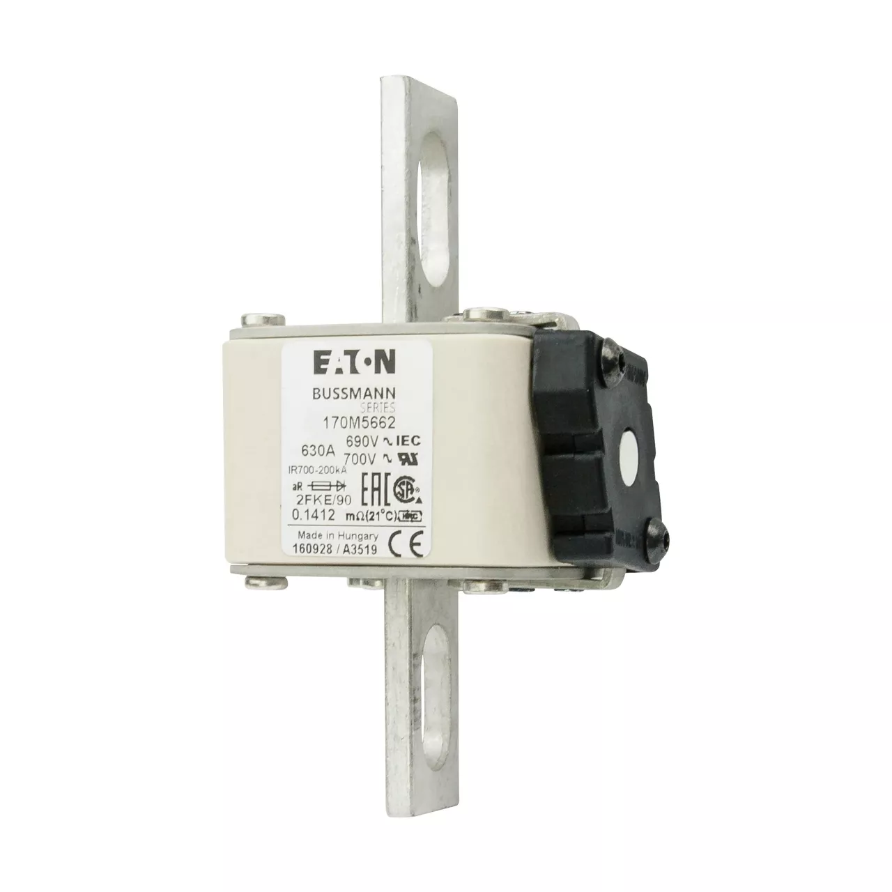 170M5662 Wkładka szybka, 630 A, AC 690 V, rozmiar 2, 61 x 77 x 135 mm, aR, IEC, UL, wskaźnik typu K, rozstaw 90 mm
