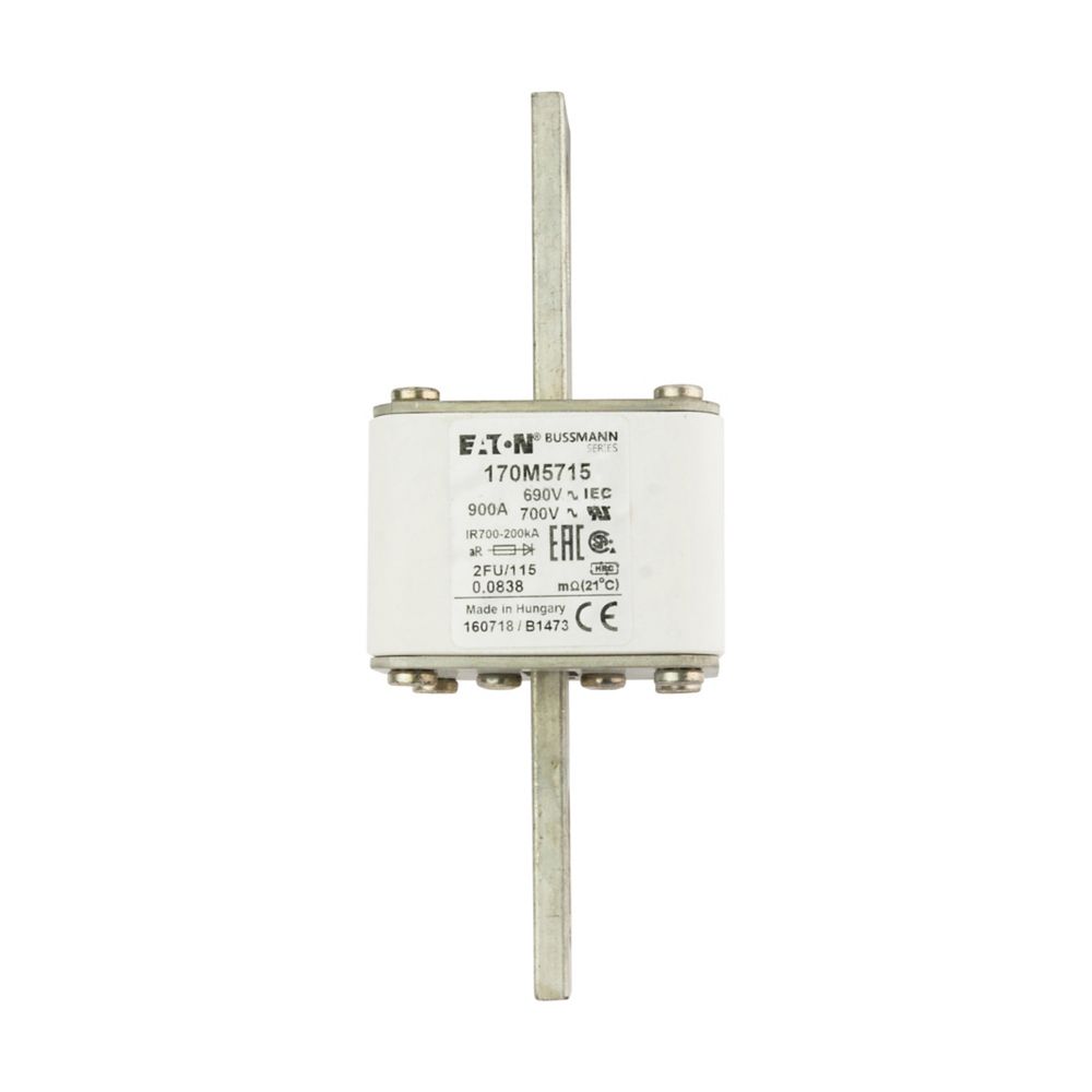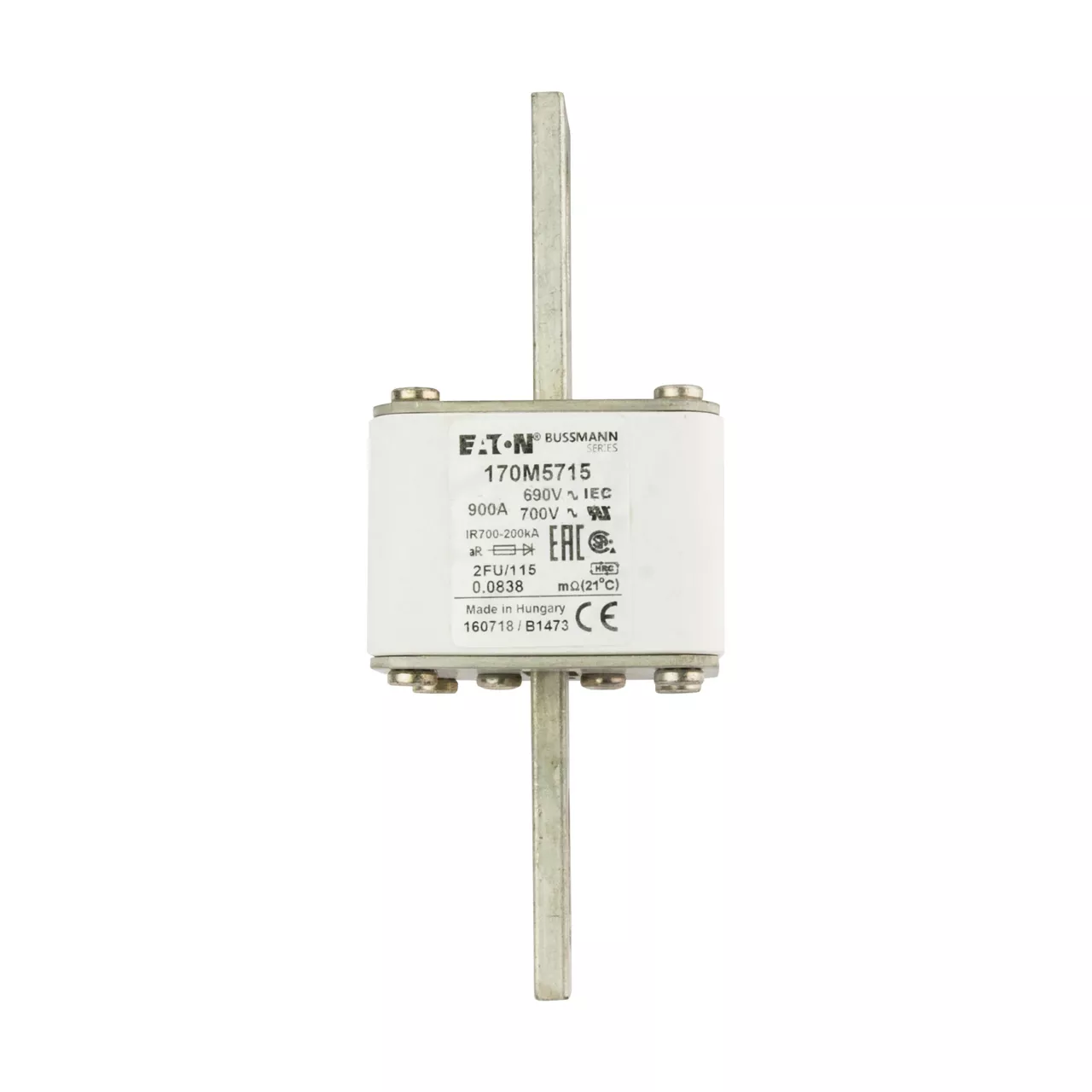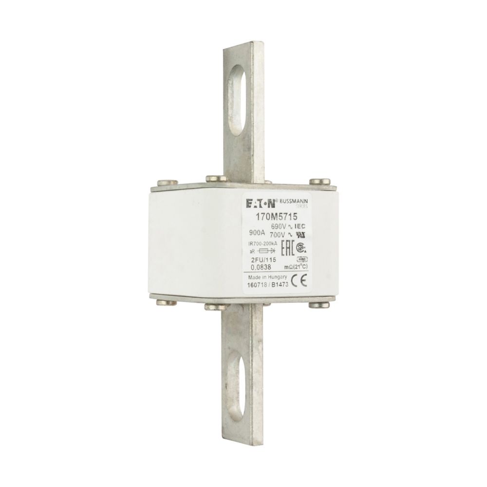 170M5715 Wkładka szybka, 900 A, AC 690 V, rozmiar 2, 61 x 77 x 135 mm, aR, IEC, UL, bez wskaźnika, rozstaw 115 mm
