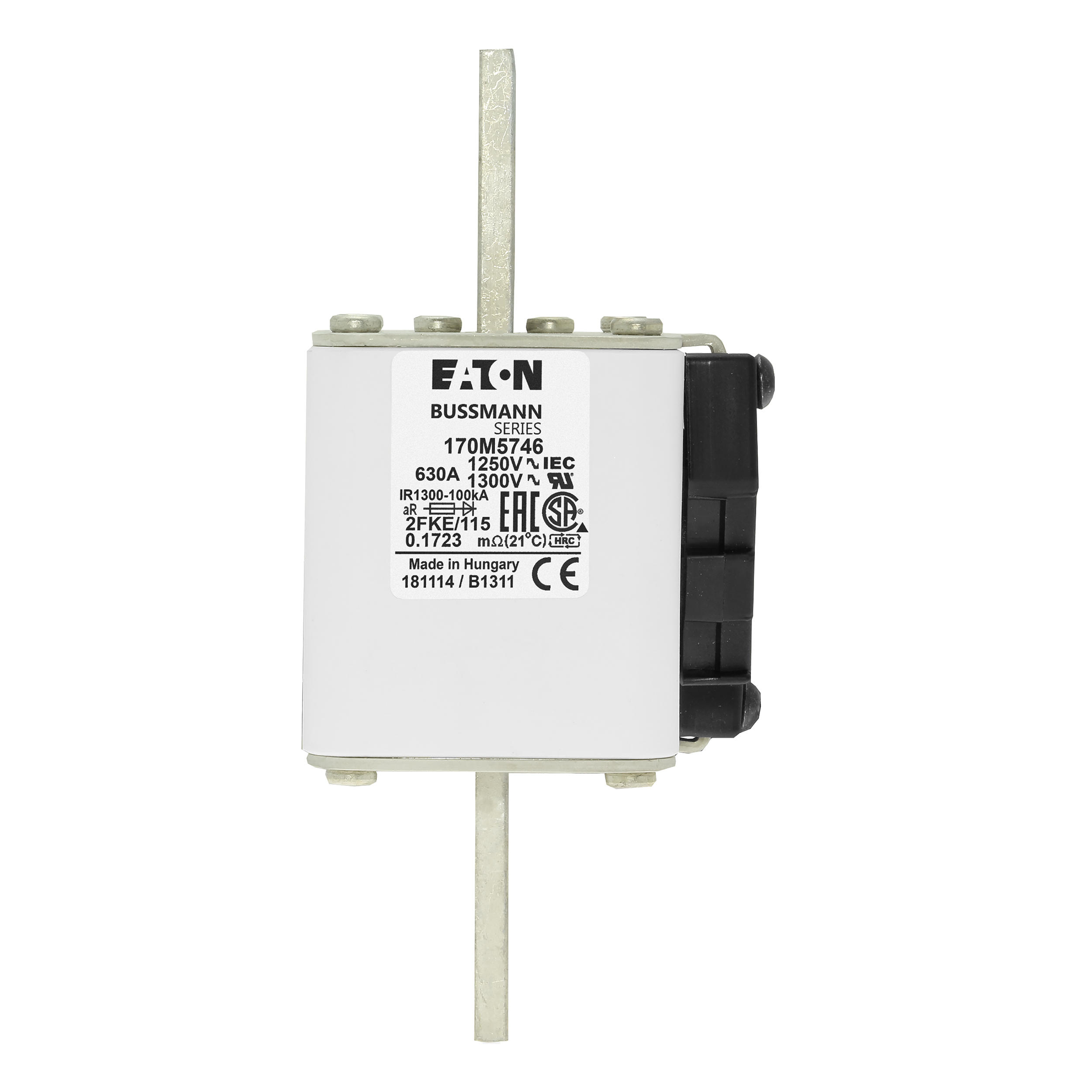 170M5746 Wkładka szybka, 630 A, AC 1250 V, size 2, 61 x 77 x 160 mm, aR, IEC, UL