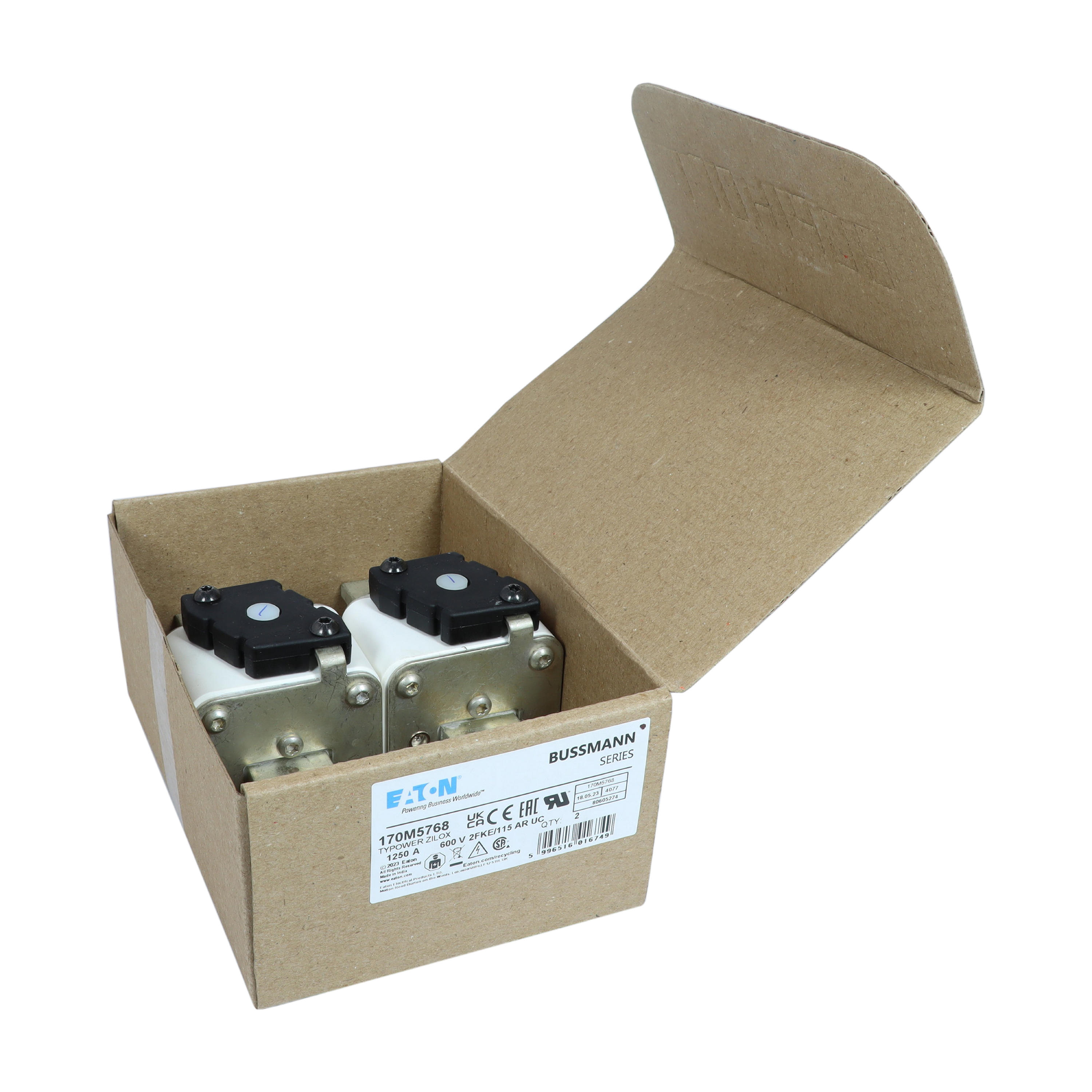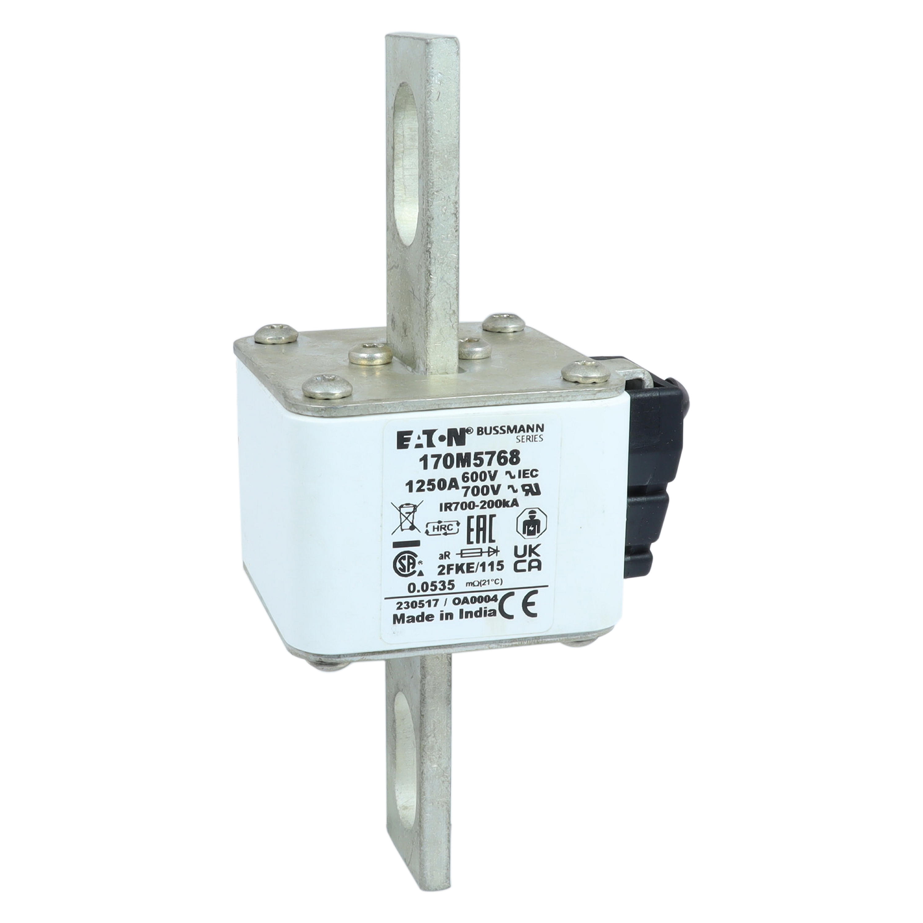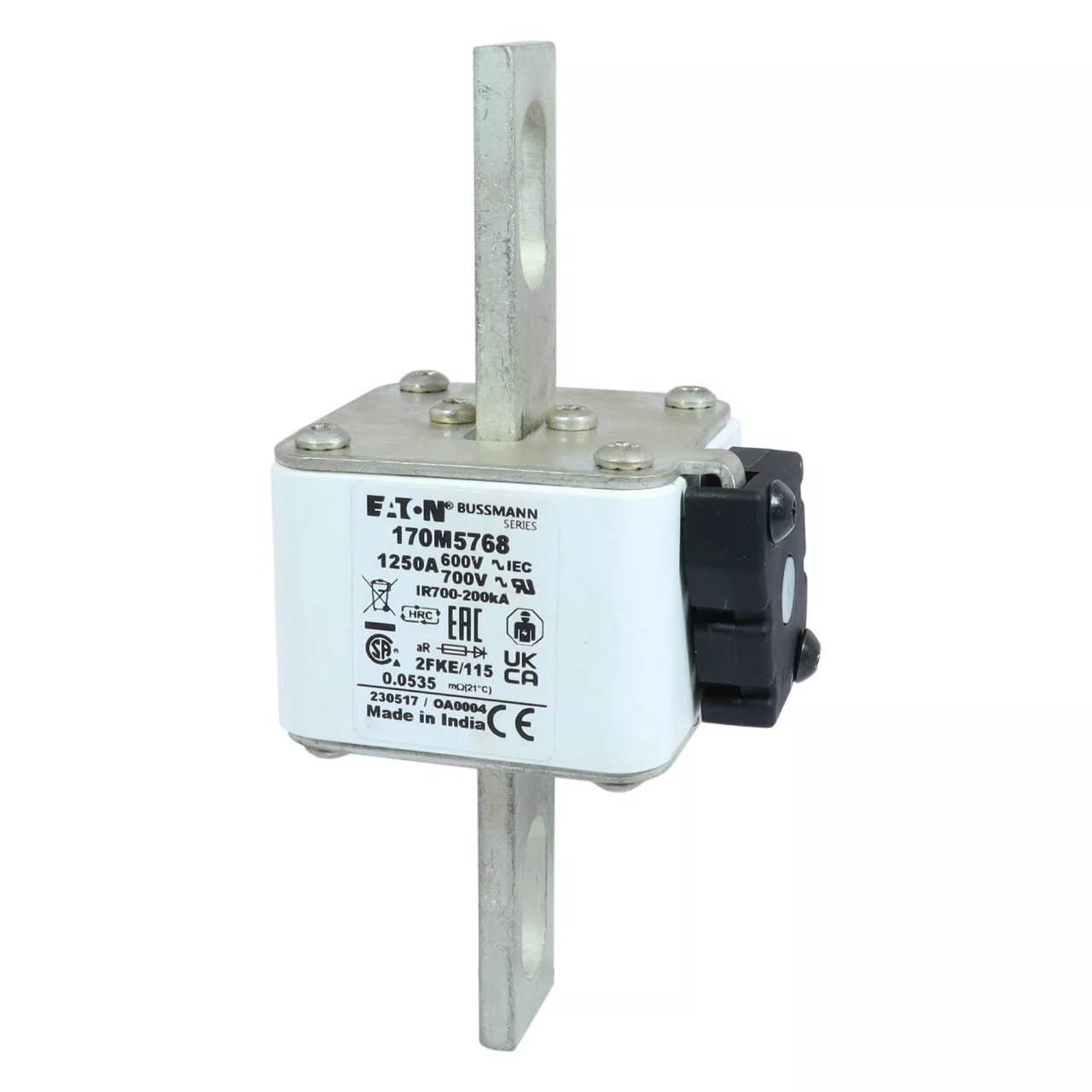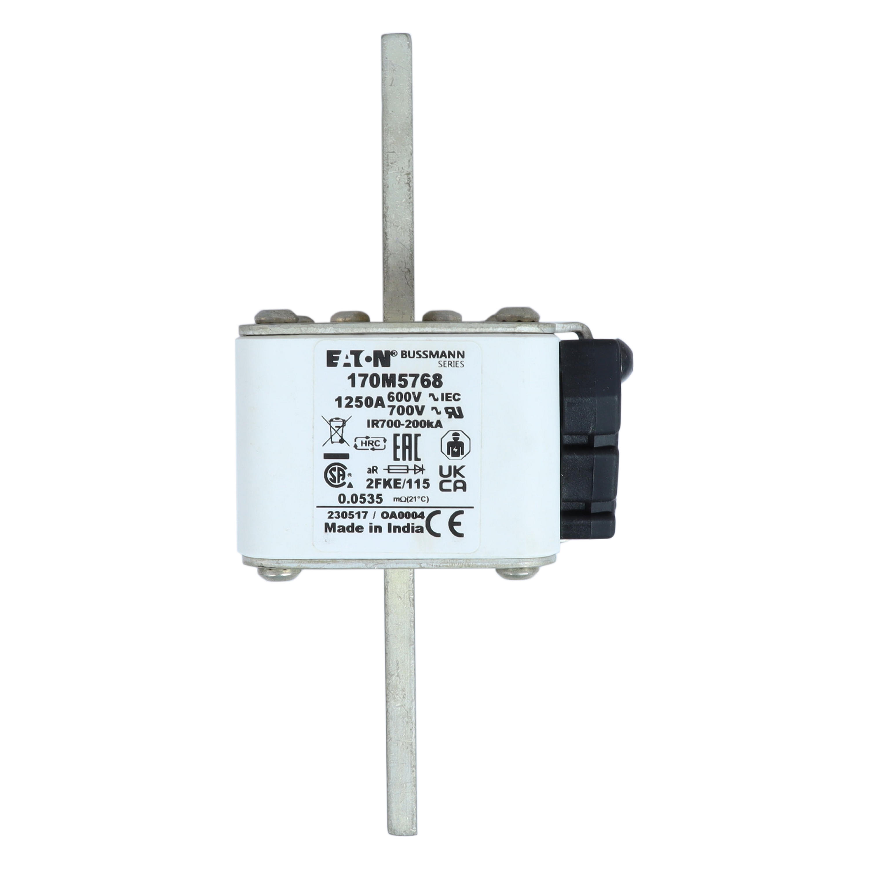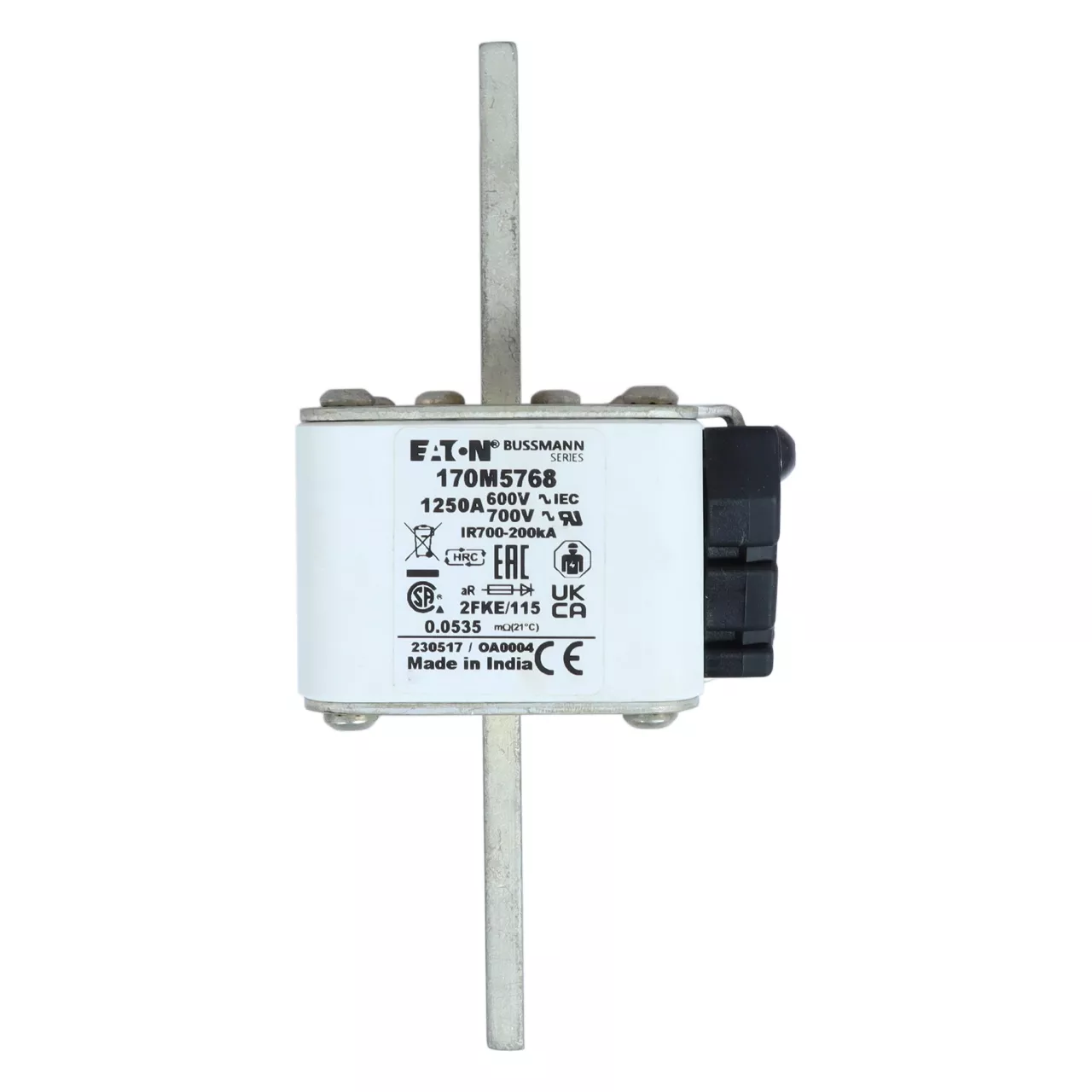 170M5768 Wkładka szybka, 1250 A, AC 600 V, rozmiar 2, 61 x 77 x 135 mm, aR, IEC, UL, wskaźnik typu K, rozstaw 115 mm