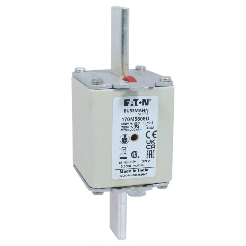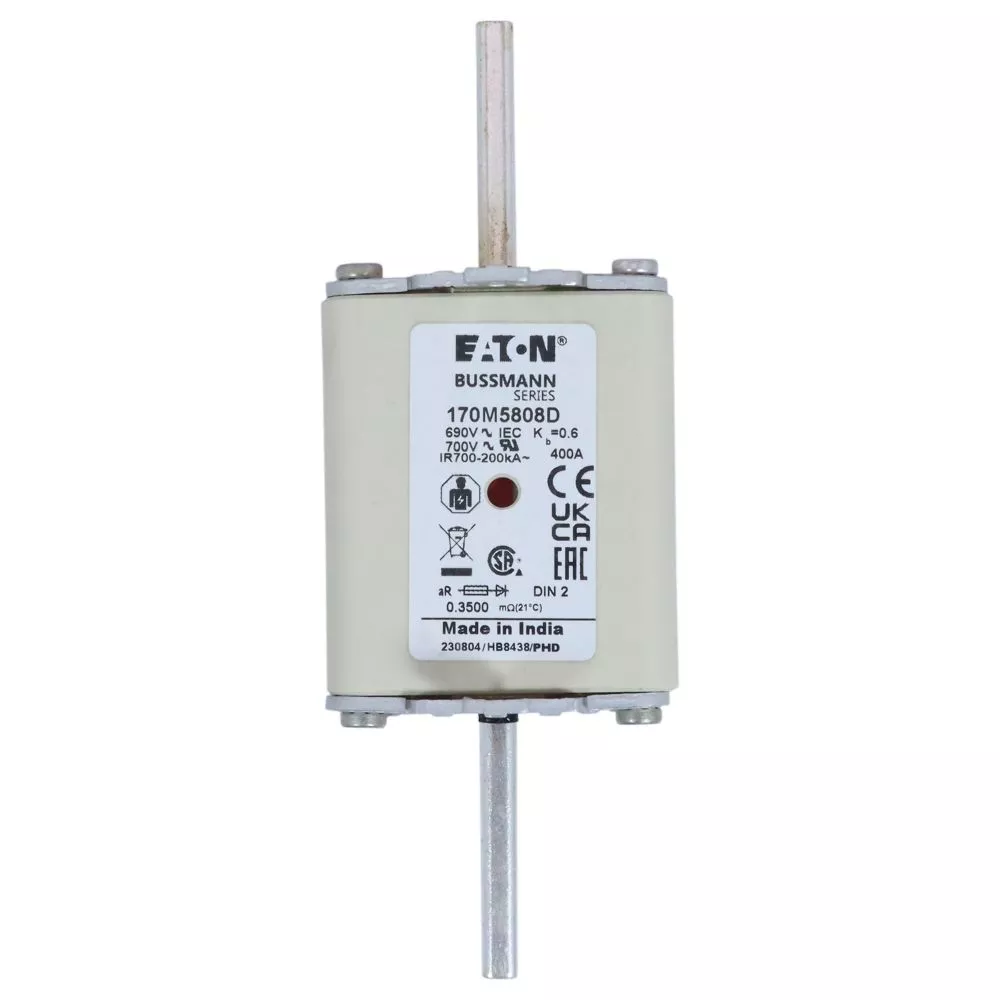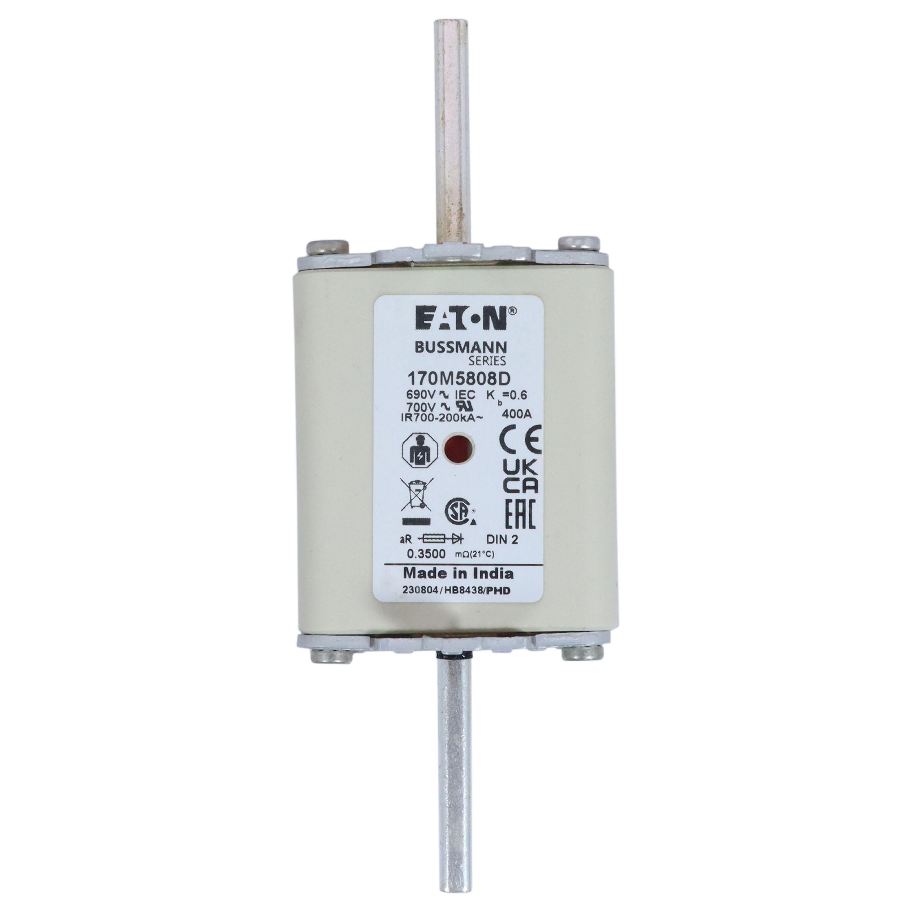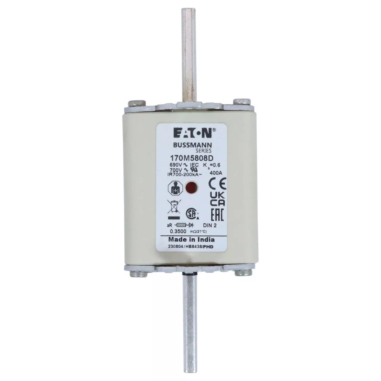 170M5808D Wkładka szybka, 400 A, AC 690 V, DIN 2, aR, DIN, IEC, podwójny wskaźnik, nieizolowane uchwyty
