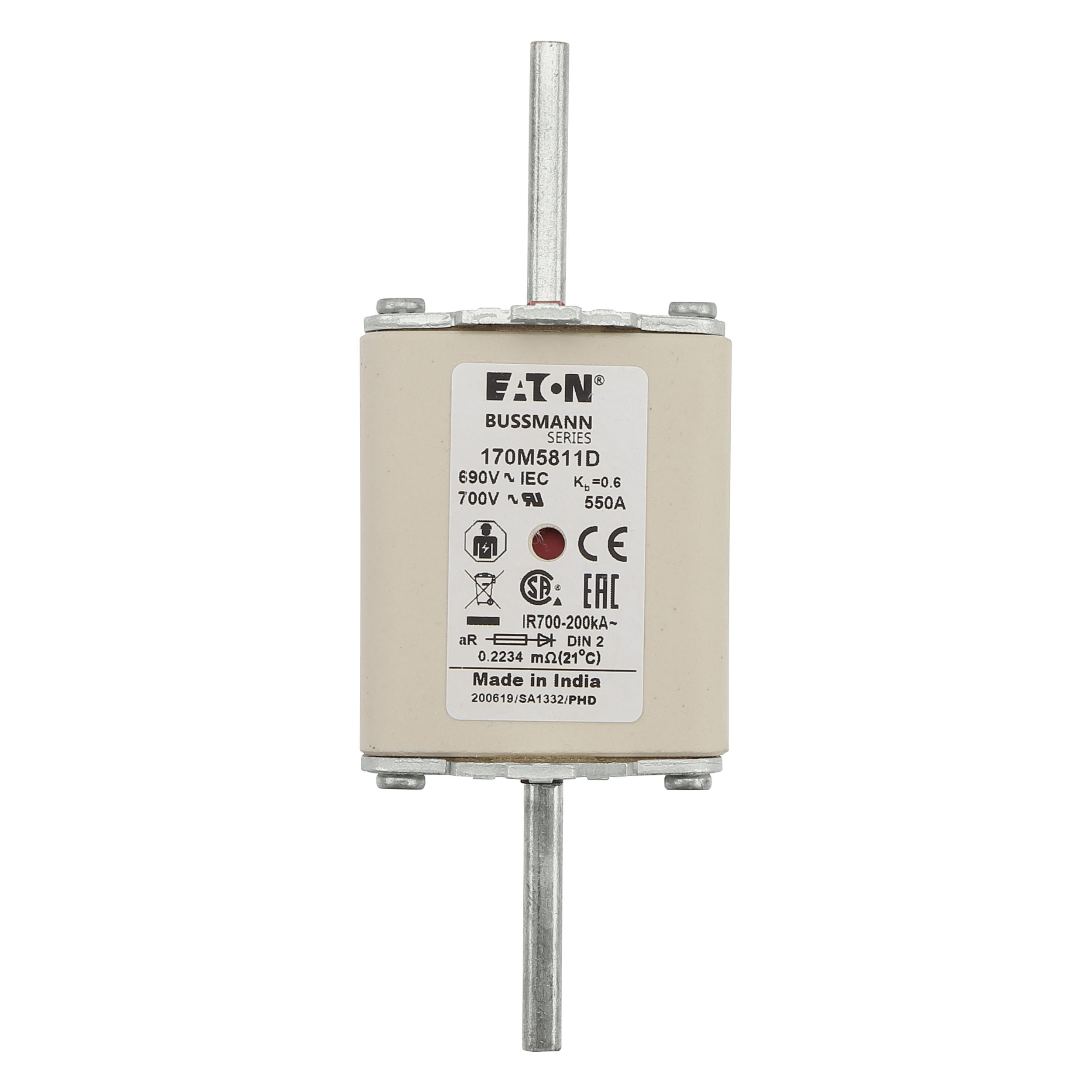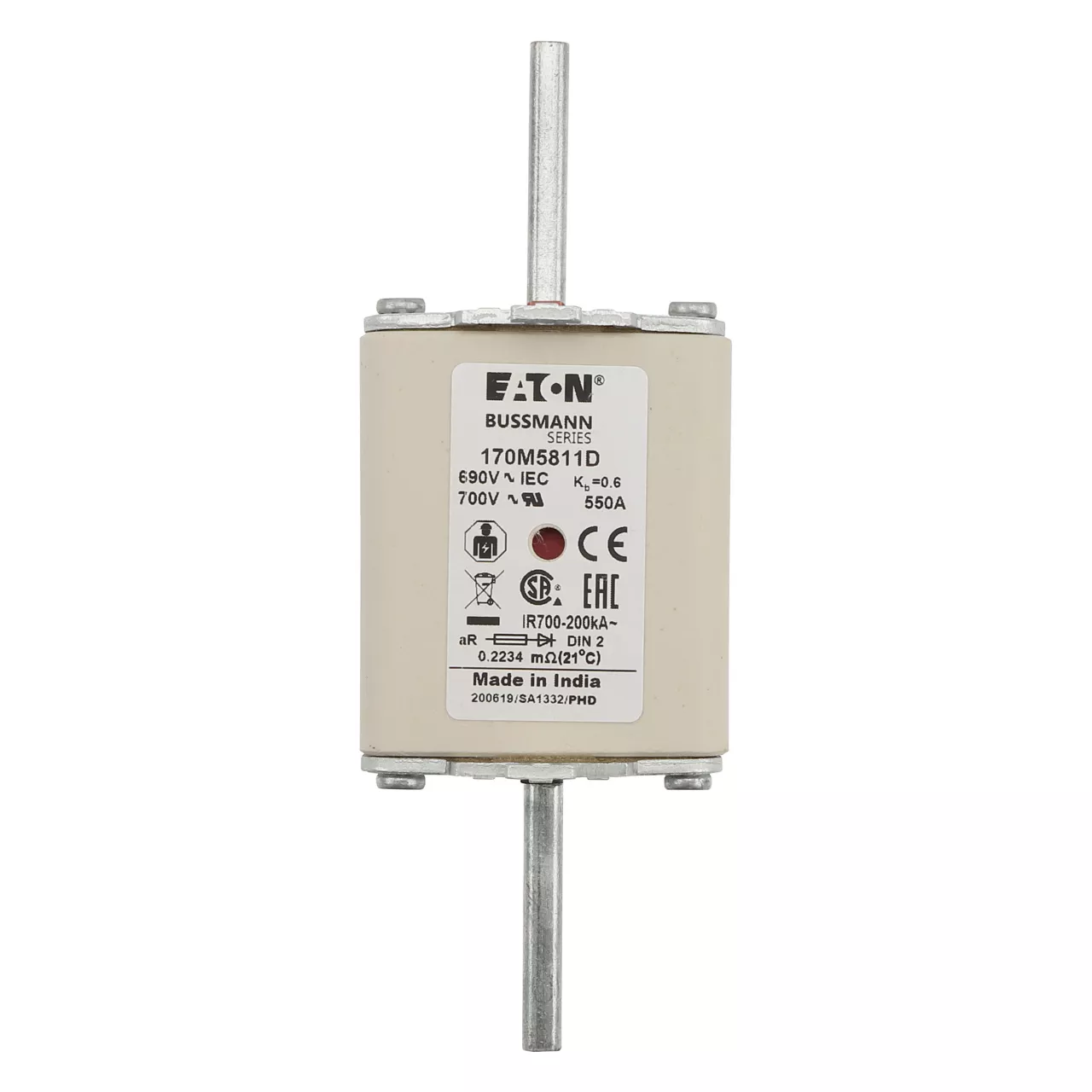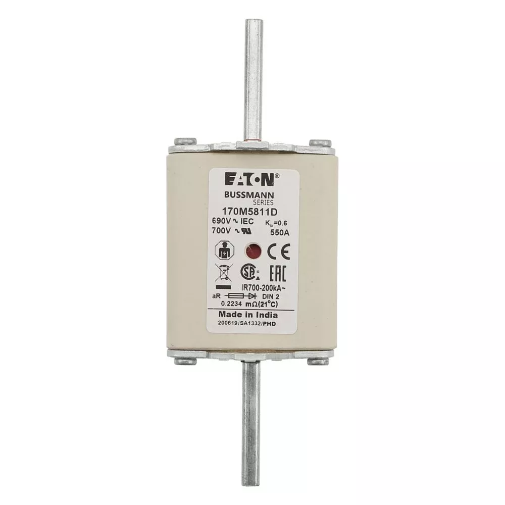 170M5811D Wkładka szybka, 550 A, AC 690 V, DIN 2, aR, DIN, IEC, podwójny wskaźnik, nieizolowane uchwyty